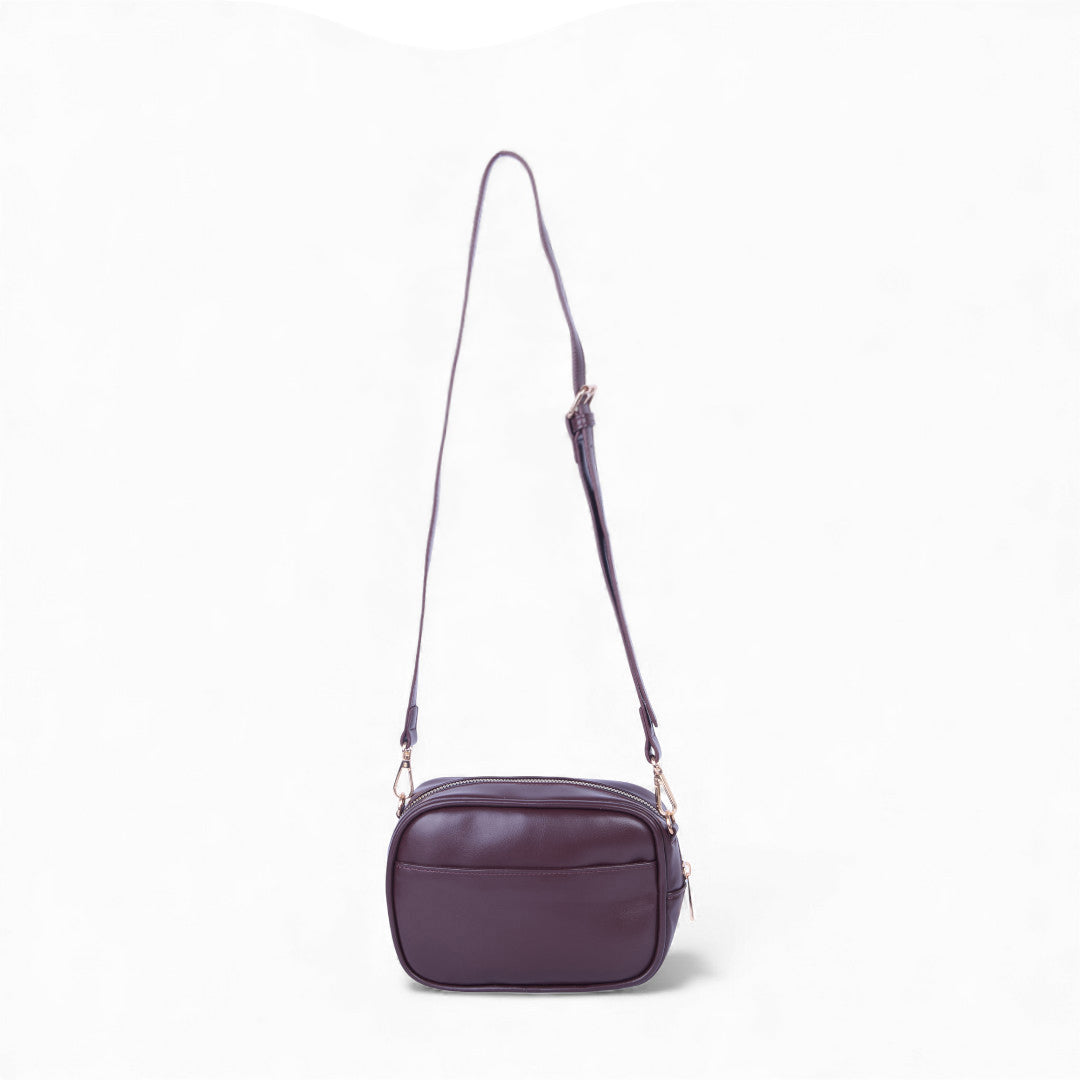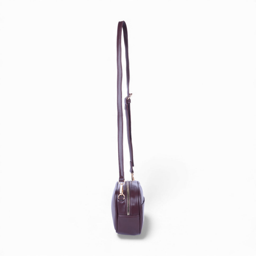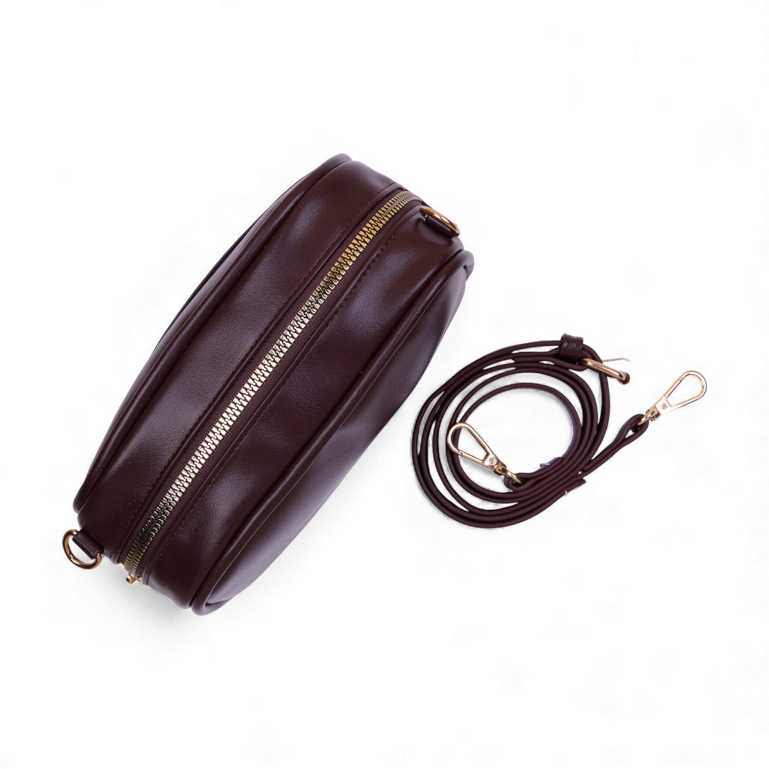 Bolso crossbody café con asa desmontable, diseño clásico y funcional ideal para uso diario; versátil, práctico y combinable.