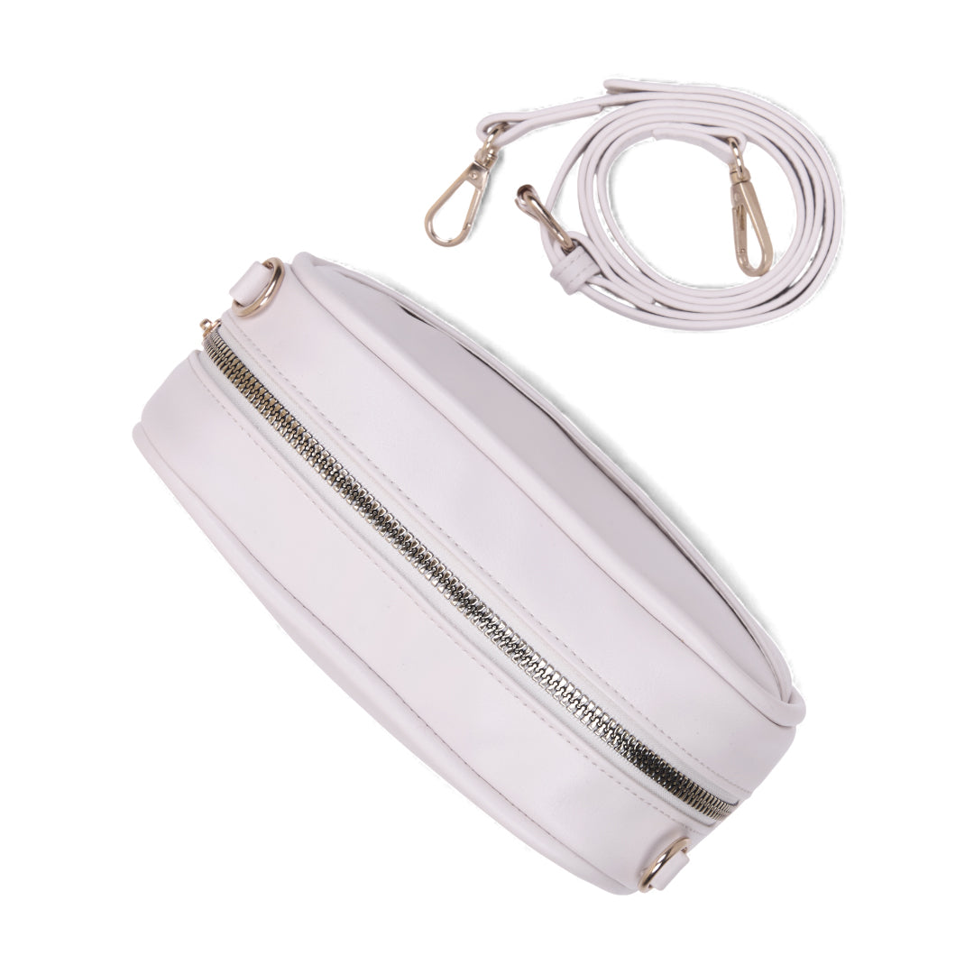 Bolso crossbody ivory con asa desmontable, diseño ligero y combinable ideal para uso diario; moderno, funcional y versátil.