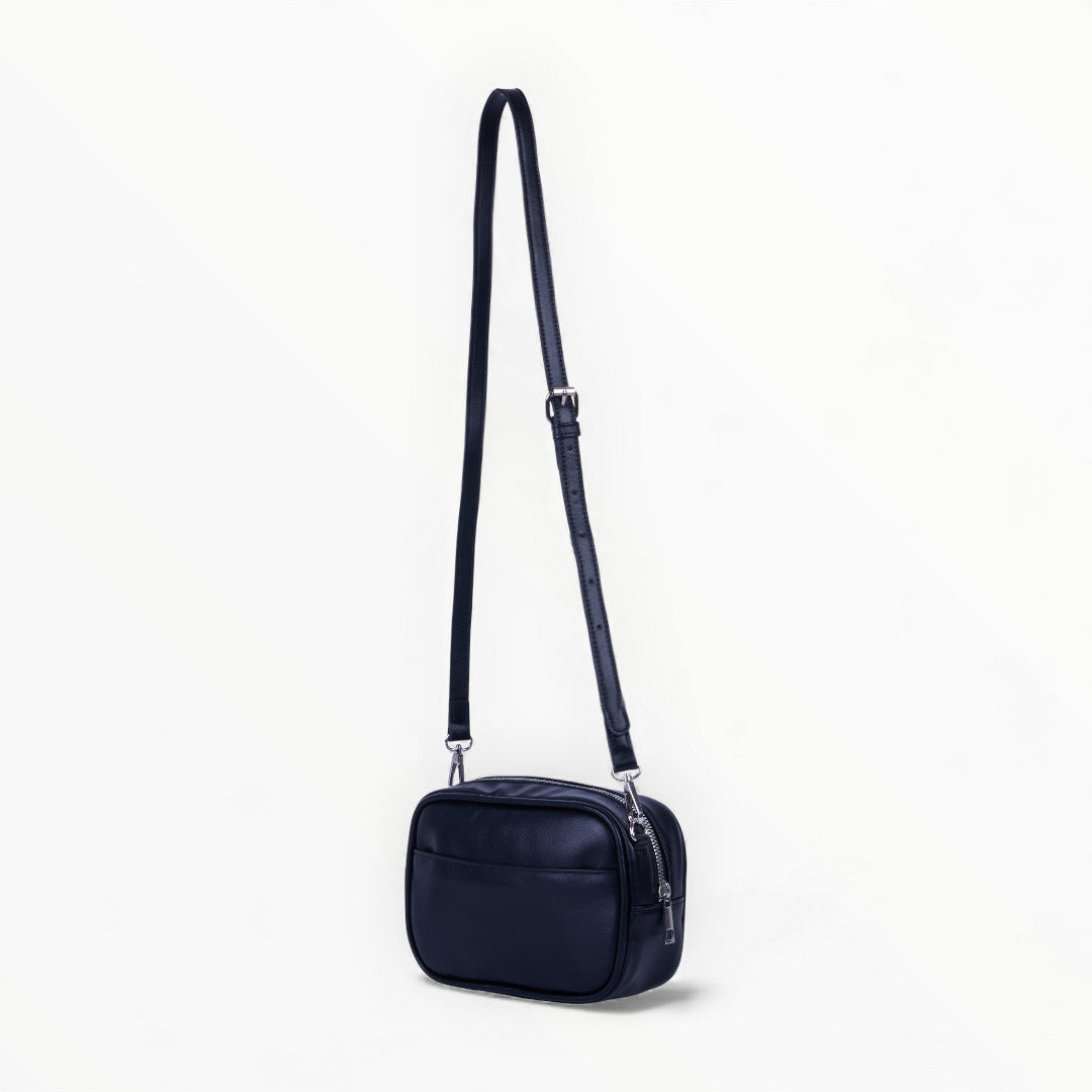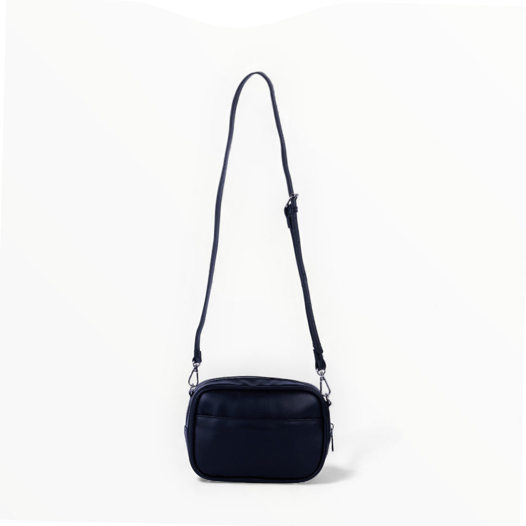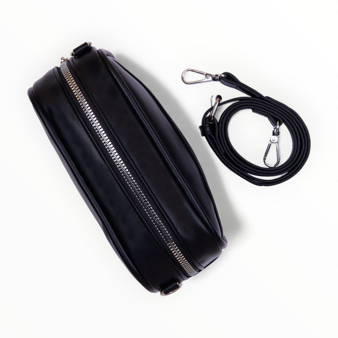 Bolso crossbody negro con asa desmontable, diseño compacto y funcional ideal para uso diario; moderno, práctico y combinable.