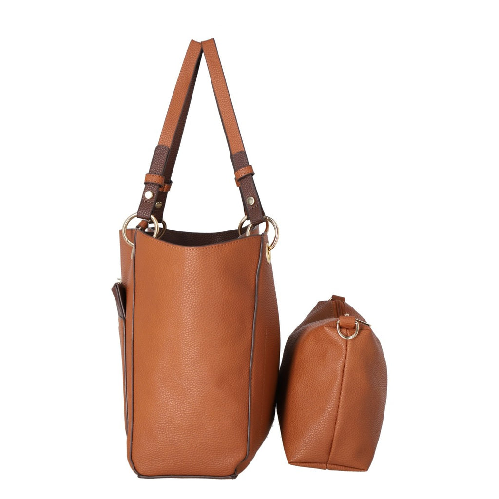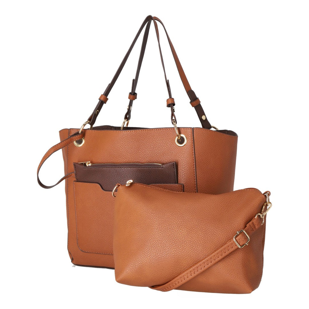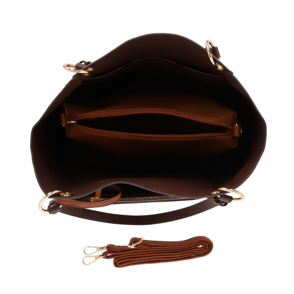 Bolso doble vista, incluye crossbody y bolso sobre color café; diseño práctico, funcional y elegante para cualquier ocasión.
