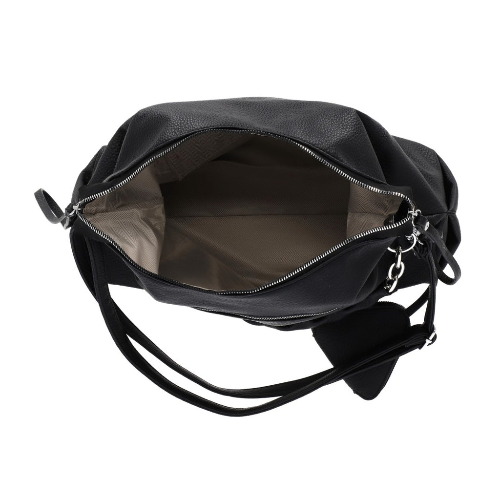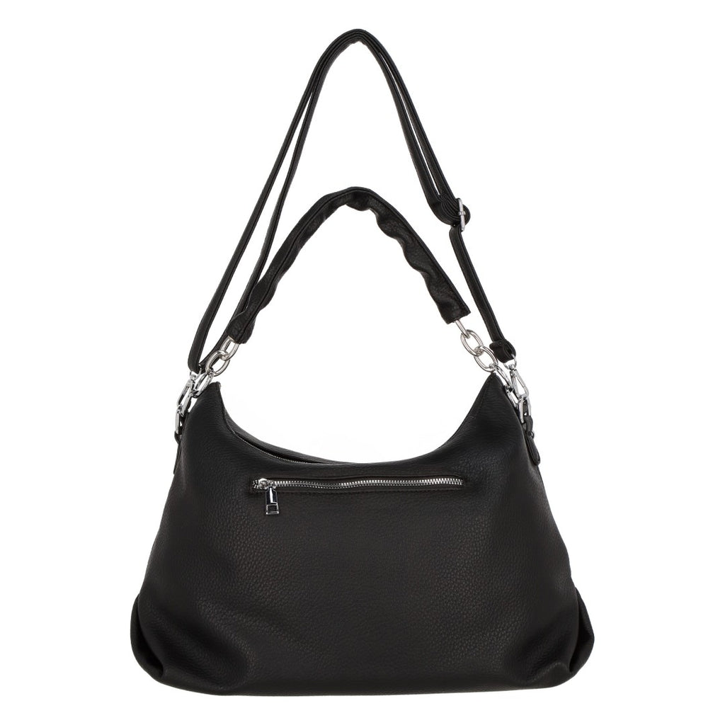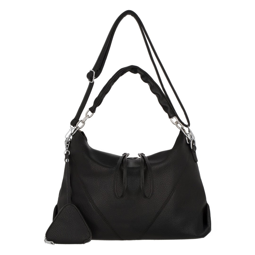Bolso tipo tote color negro con asa larga desmontable, incluye monedero extraíble; diseño práctico y elegante para el día a día.