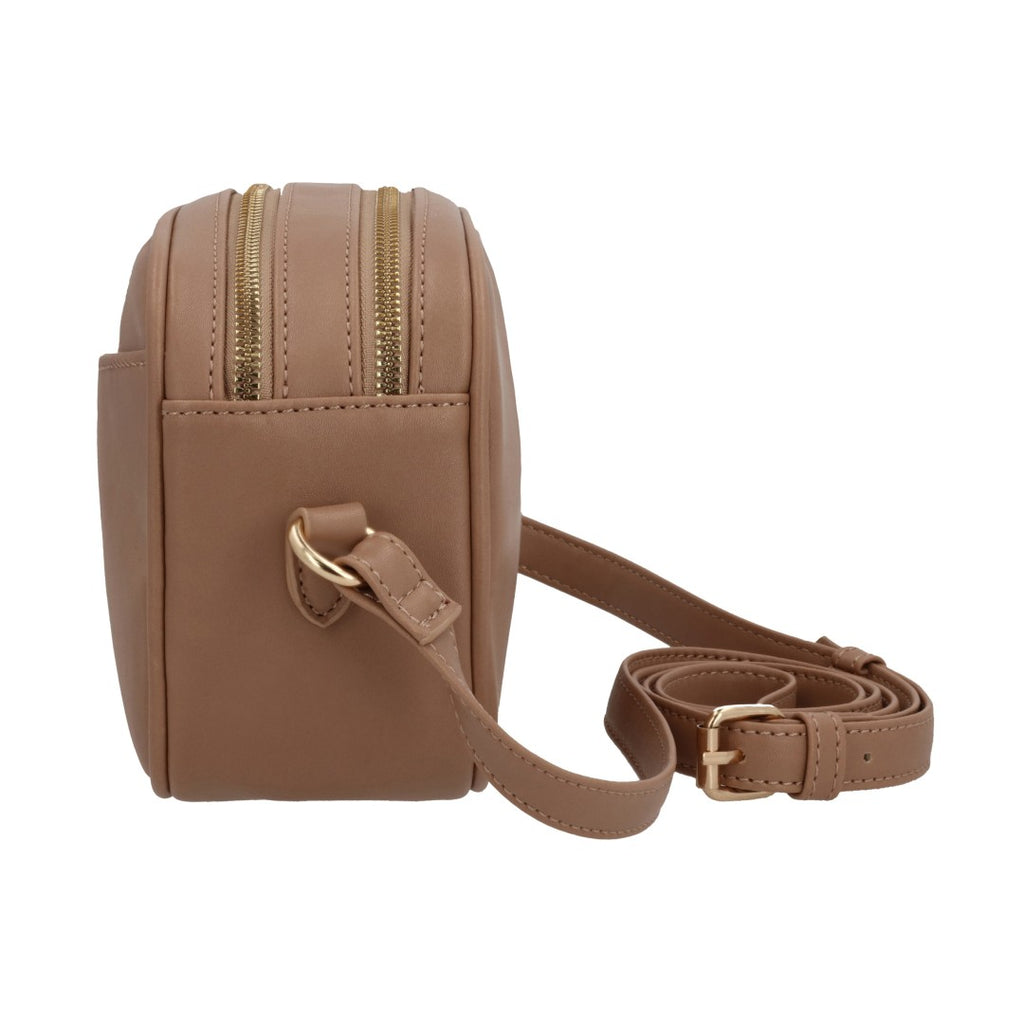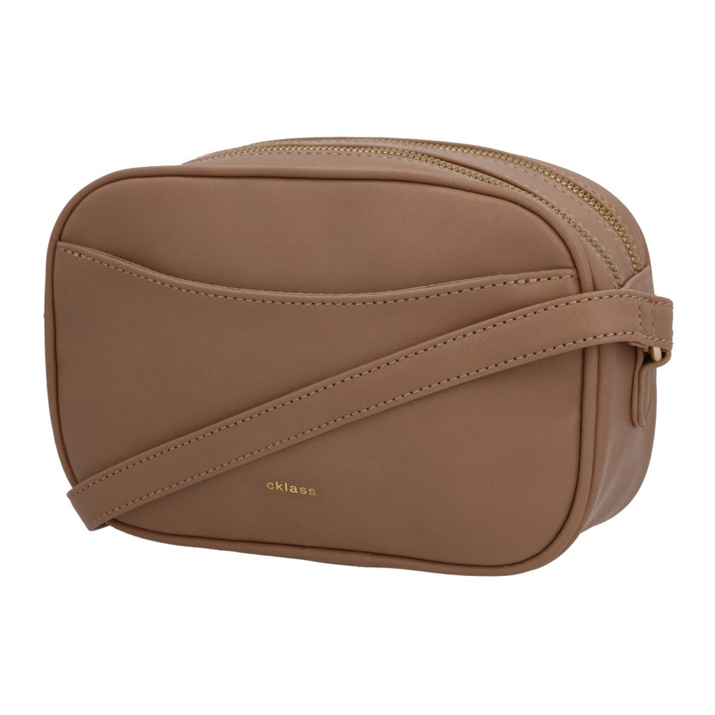 Crossbody color oro con logotipo Cklass, incluye 3 compartimentos; elegante y funcional para complementar cualquier look.
