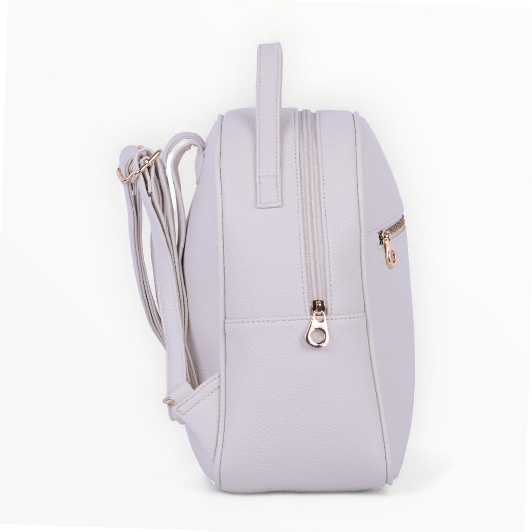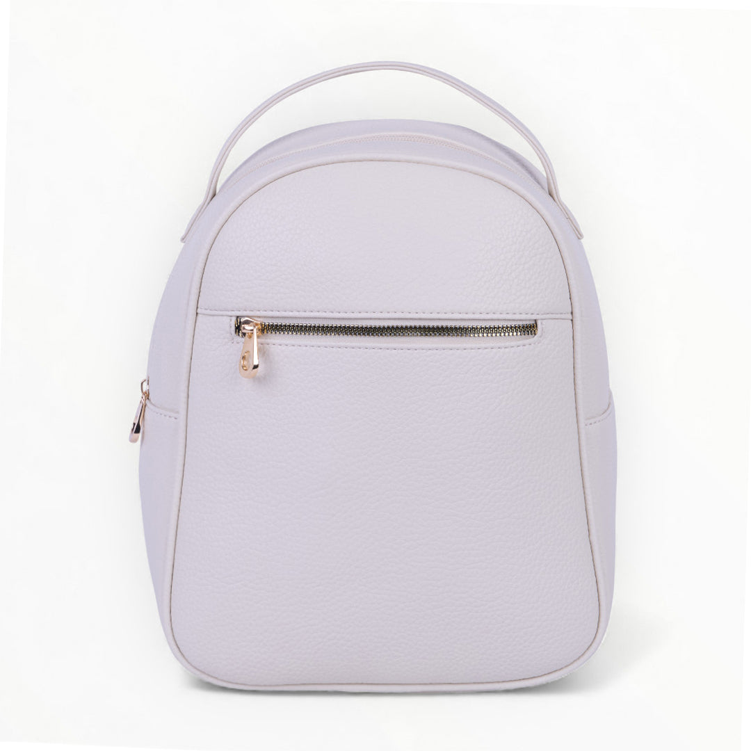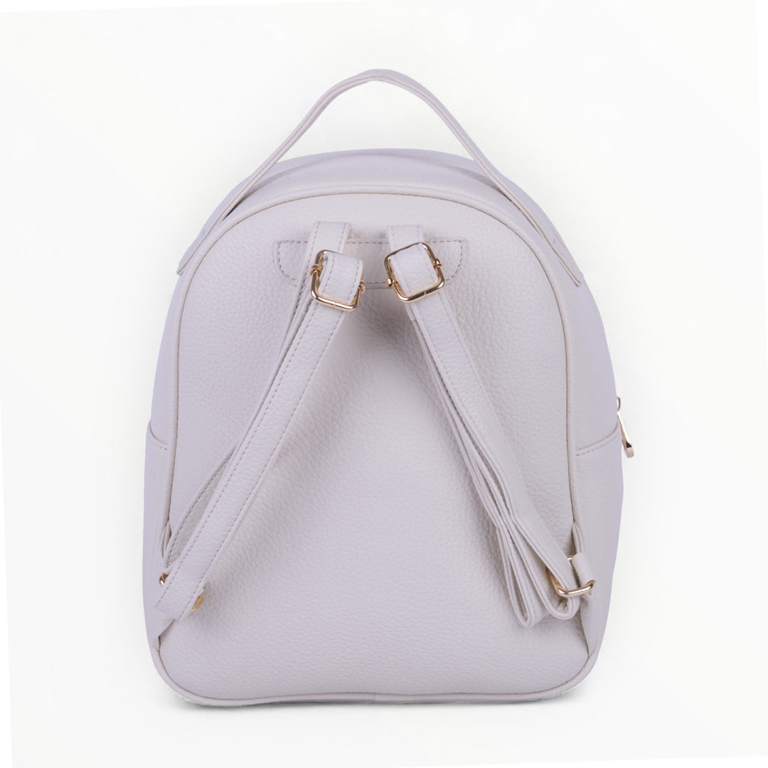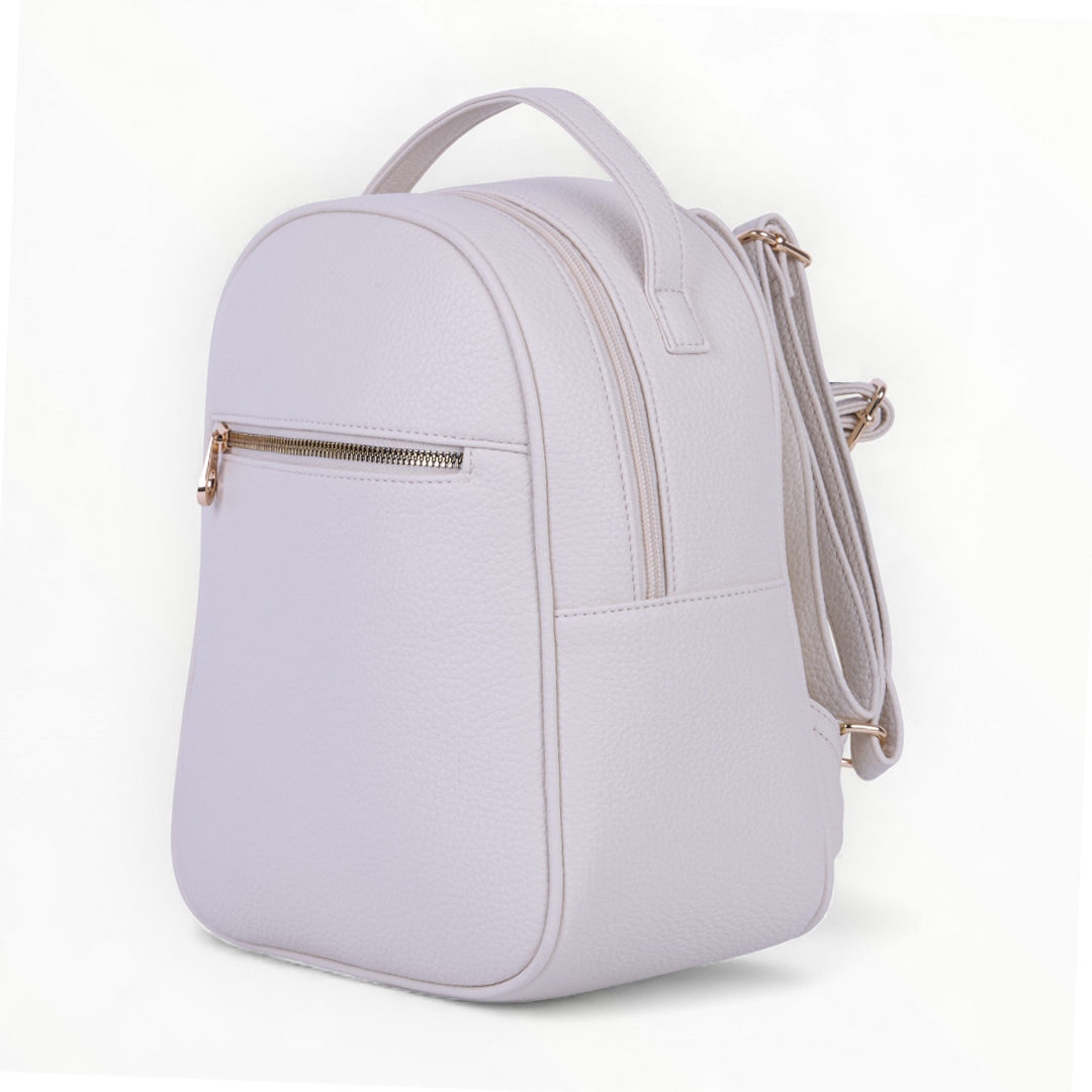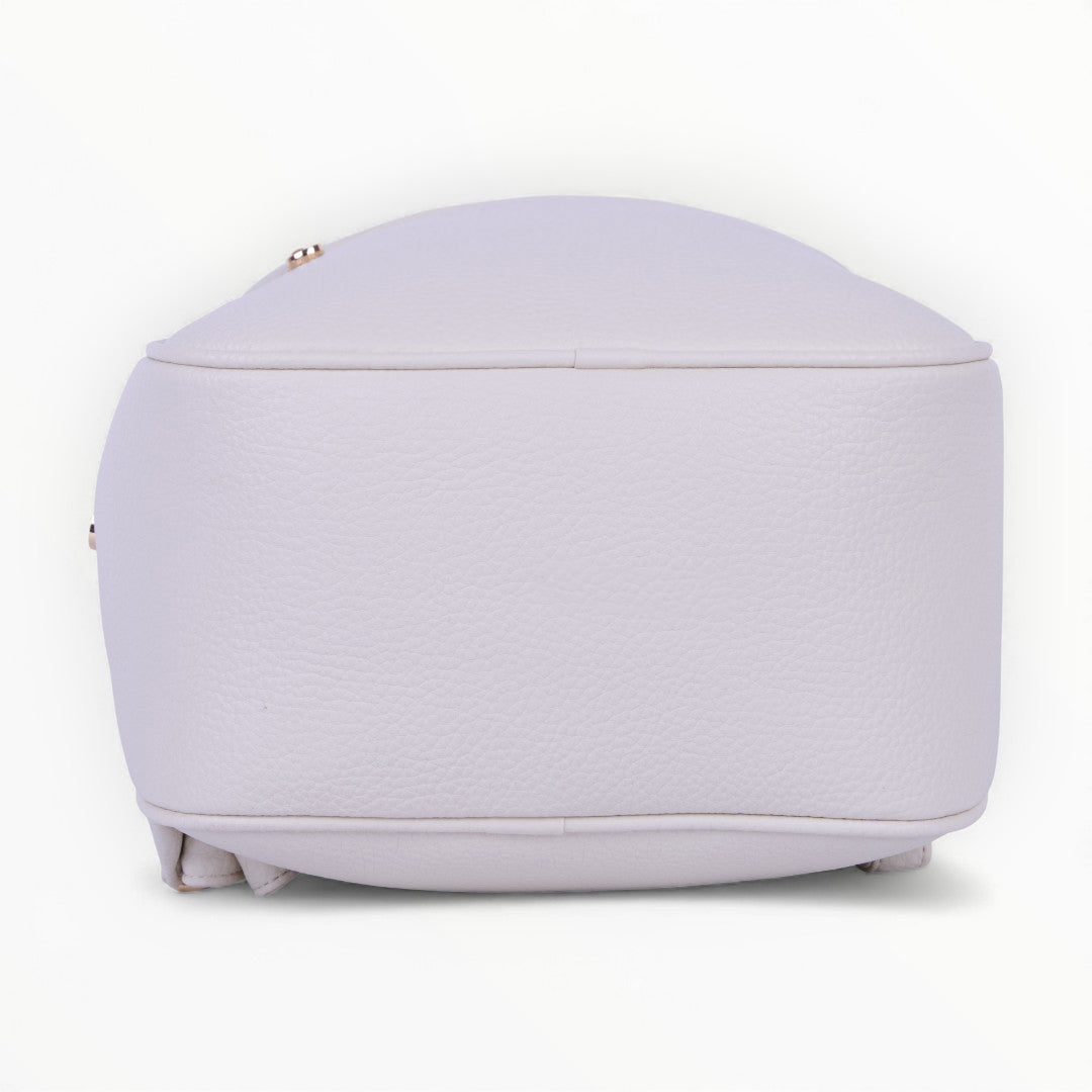 Mochila color ivory con cierre frontal, diseño compacto y funcional ideal para uso diario; ligera, moderna y combinable con cualquier outfit casual.