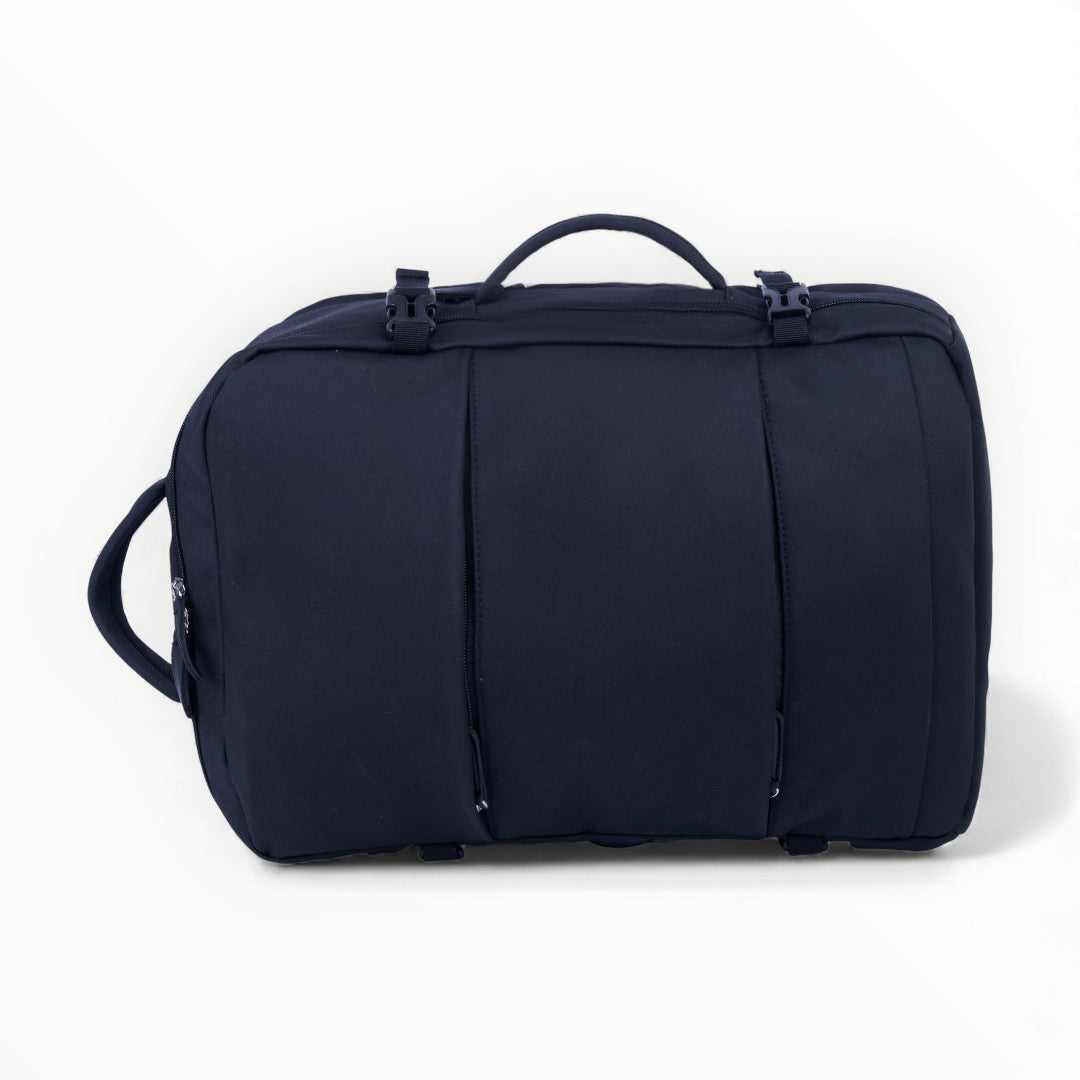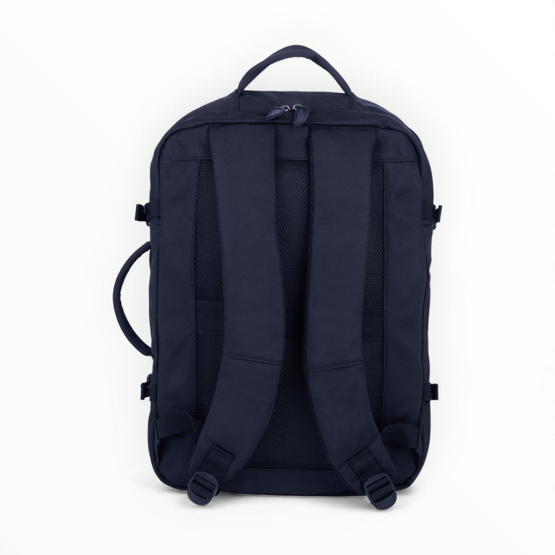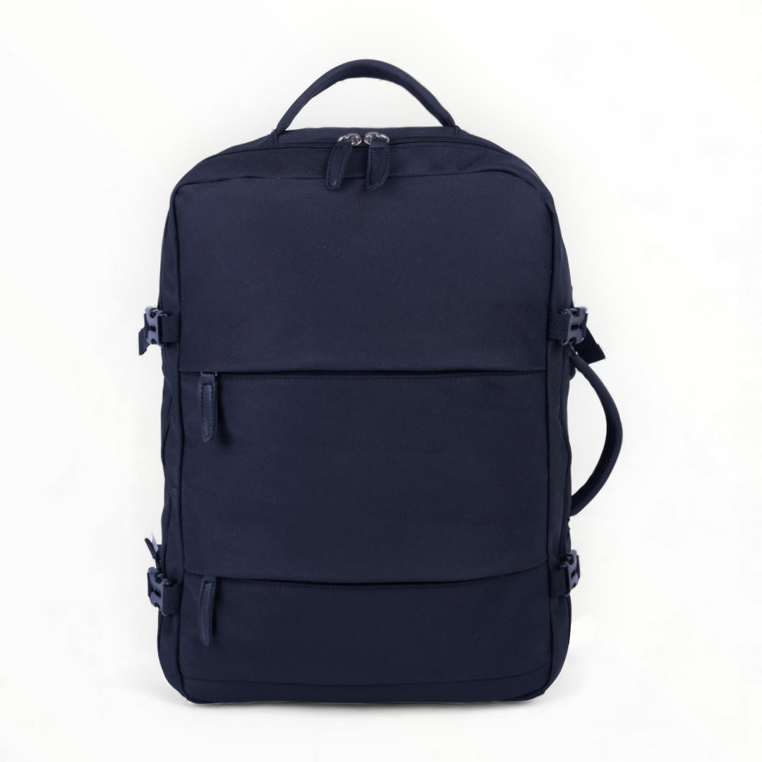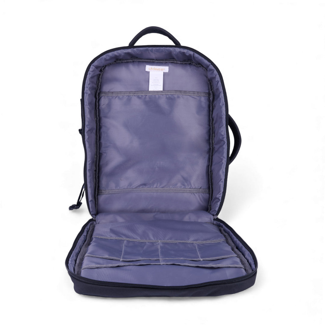 Mochila negra con compartimento para laptop y múltiples espacios de organización; ideal para trabajo, escuela y viajes cortos.