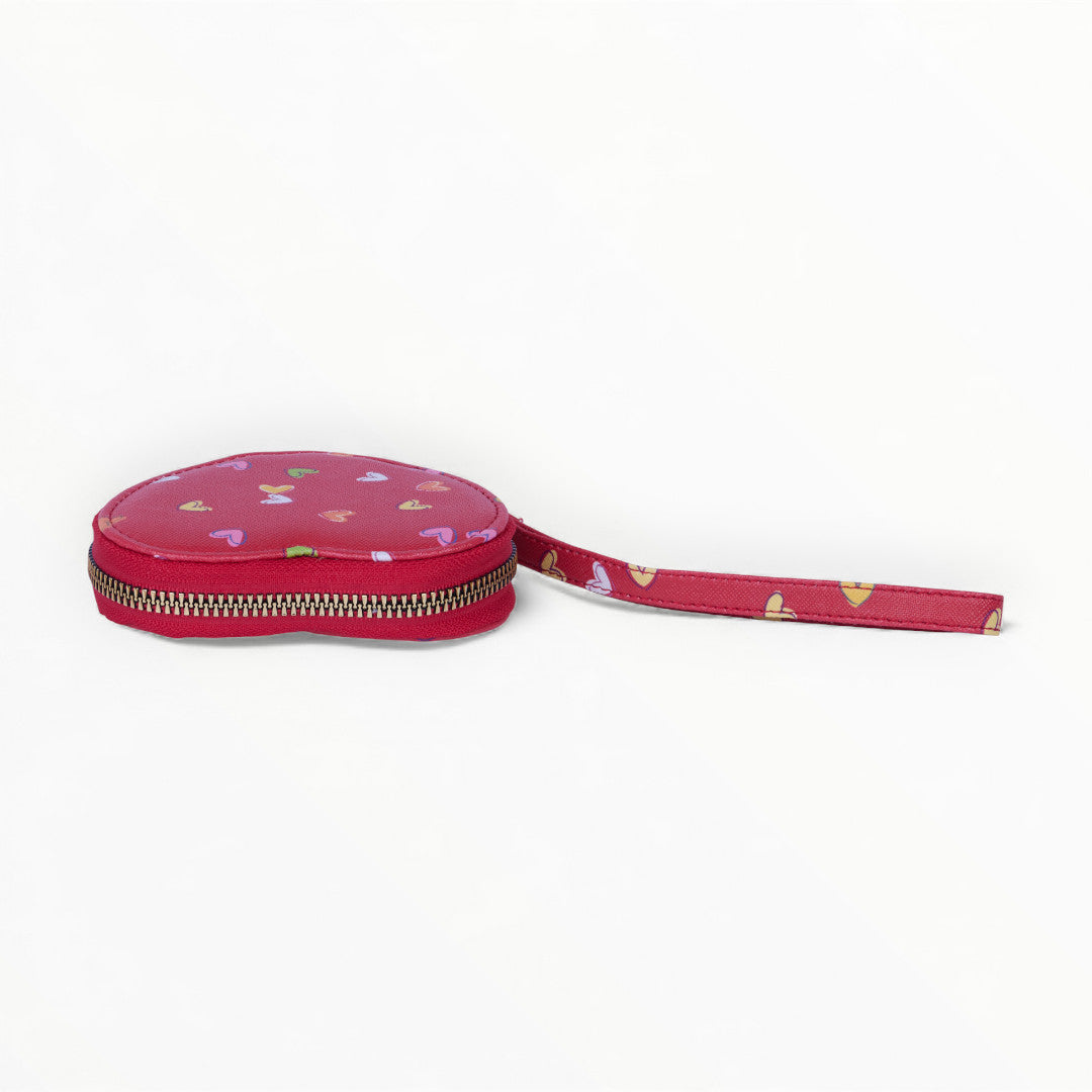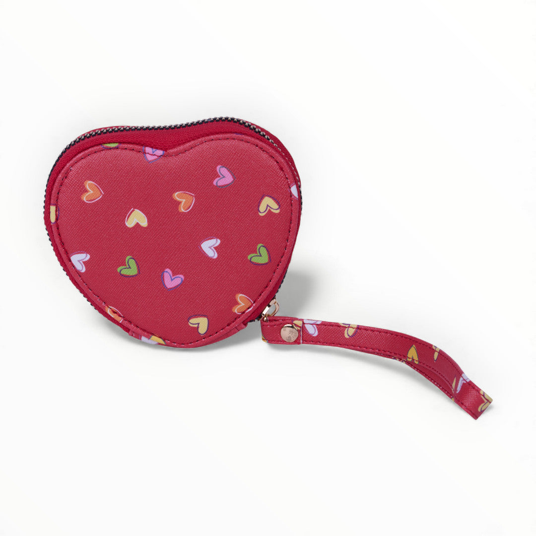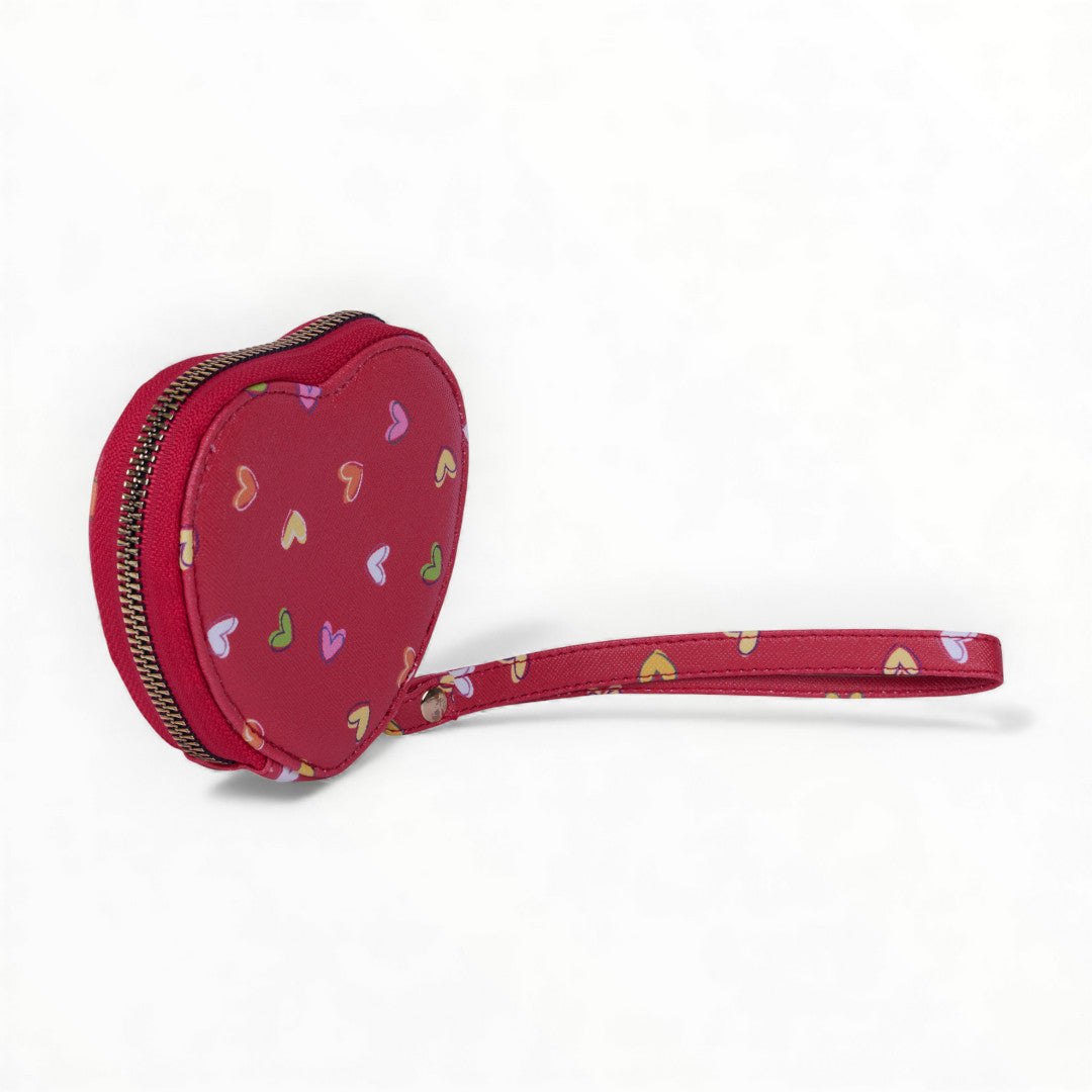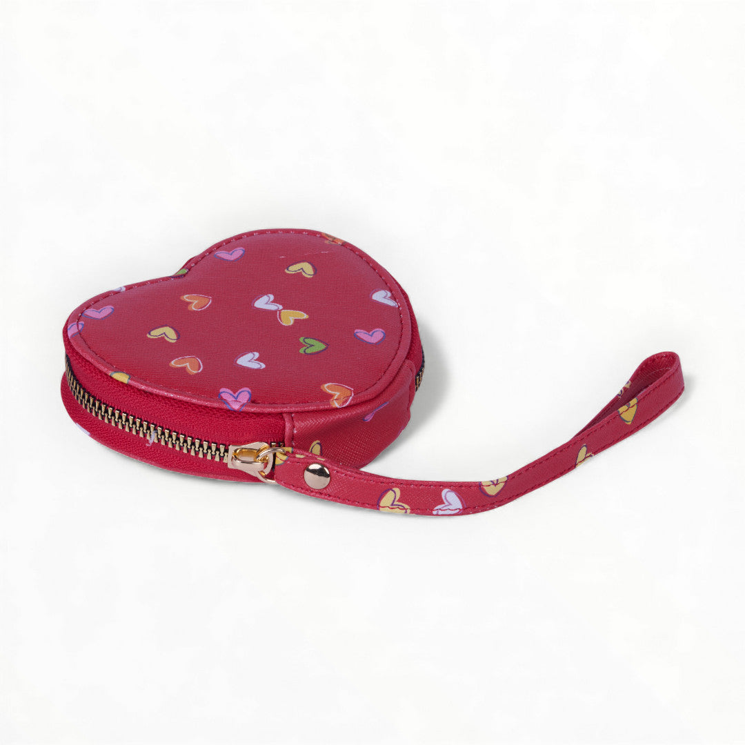 Monedero en forma de corazón con estampado de corazones; tierno, ligero y perfecto para guardar monedas o pequeños accesorios.