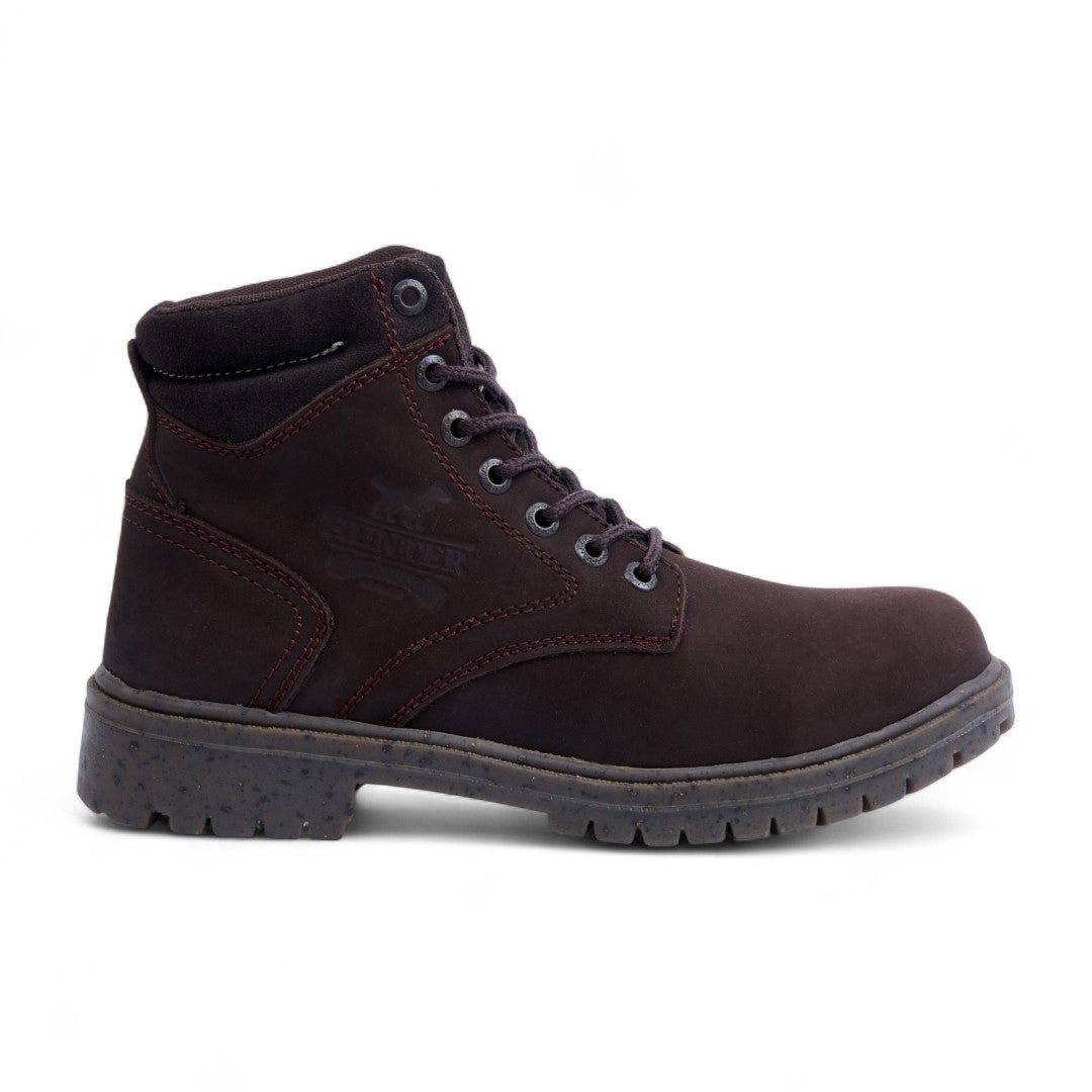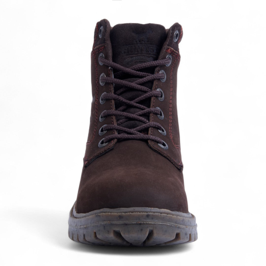 Bota de piso de vacuno para dama, con cordonera, ojillos metálicos, lengüeta y cuello acolchados para mayor confort. Plantilla textil que brinda suavidad y transpirabilidad. Color café versátil, ideal para looks casuales, urbanos o de diario con estilo moderno y elegante. Durable, cómoda y ligera, perfecta para acompañarte todo el día.