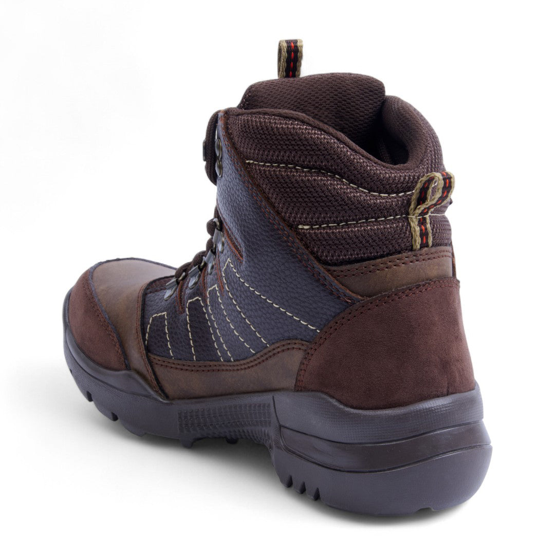 Bota de piso color café con combinaciones de tonos y pespuntes en contraste que realzan su diseño moderno. Incluye cintas frontales ajustables y plantilla textil para mayor comodidad. Elaborada en material sintético resistente con suela firme y ligera que ofrece estabilidad y durabilidad. Ideal para looks casuales, urbanos o de fin de semana con estilo contemporáneo.
