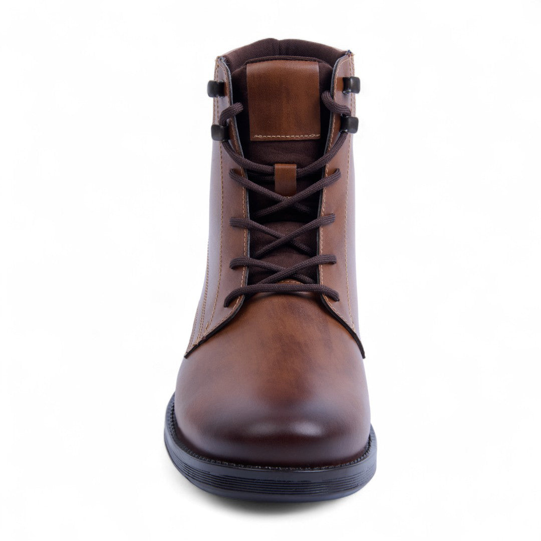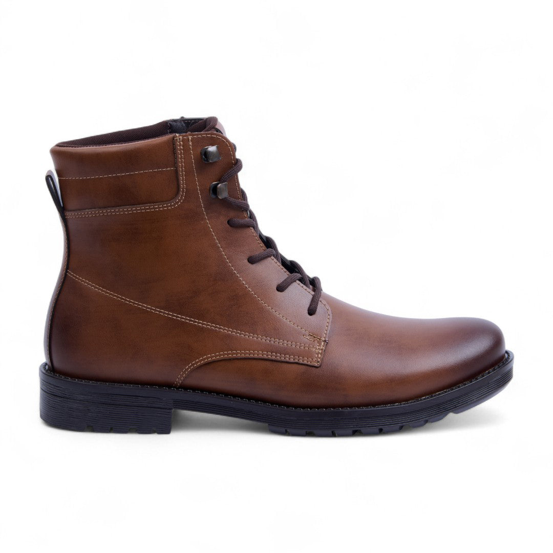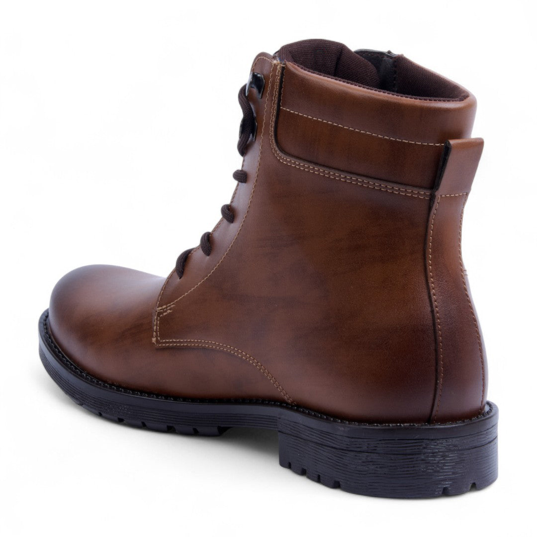 Bota de piso con detalle abullonado, pespuntes en contraste y cintas decorativas. Plantilla sintética acolchada para mayor comodidad. Color miel moderno y versátil. Ideal para looks casuales, urbanos o paseos, combinando estilo, confort y durabilidad.