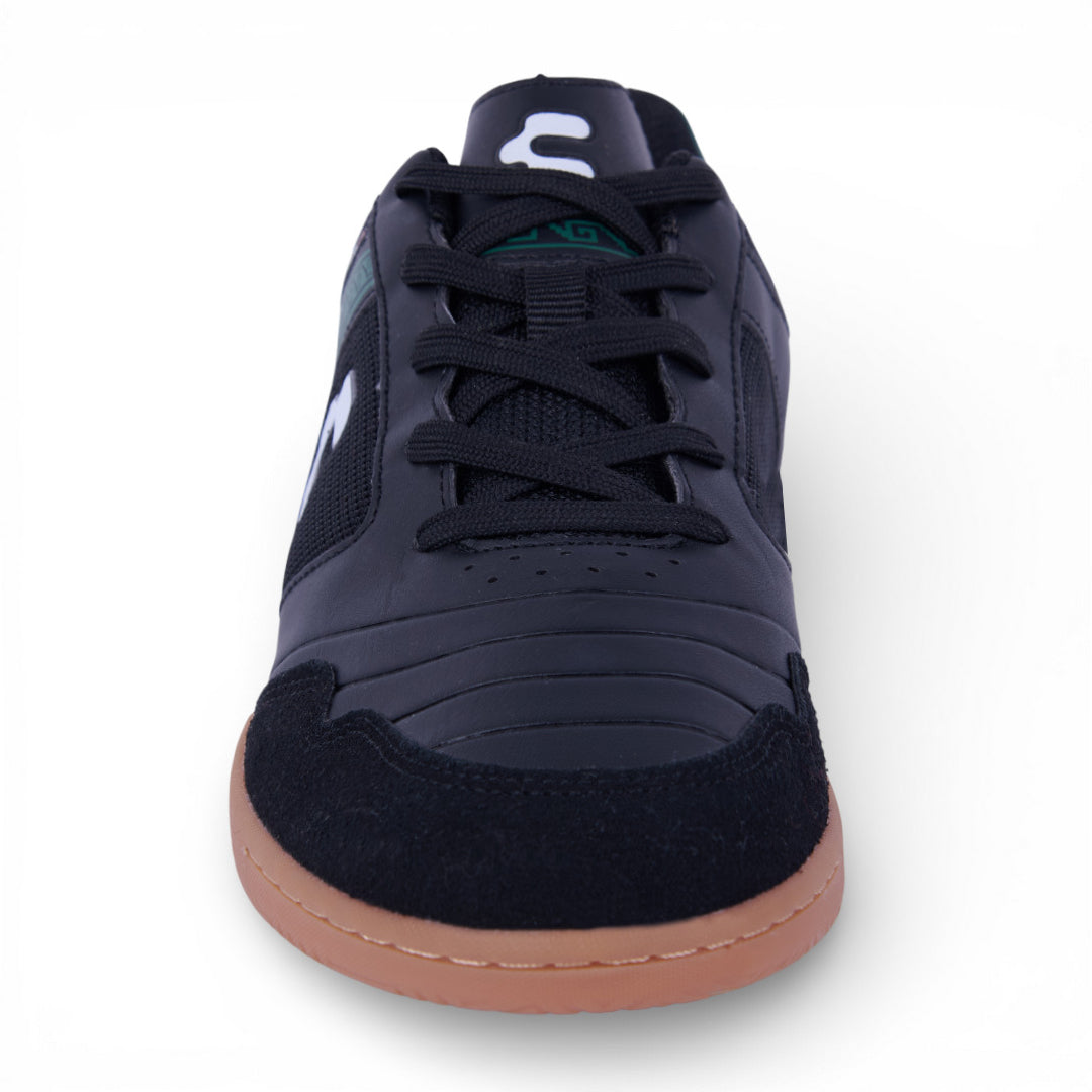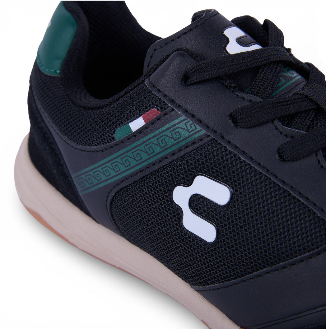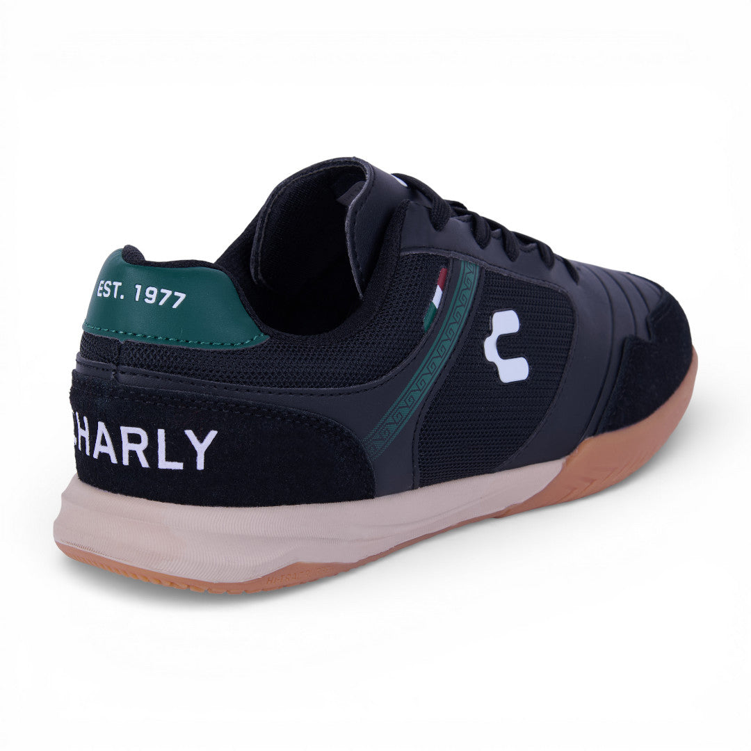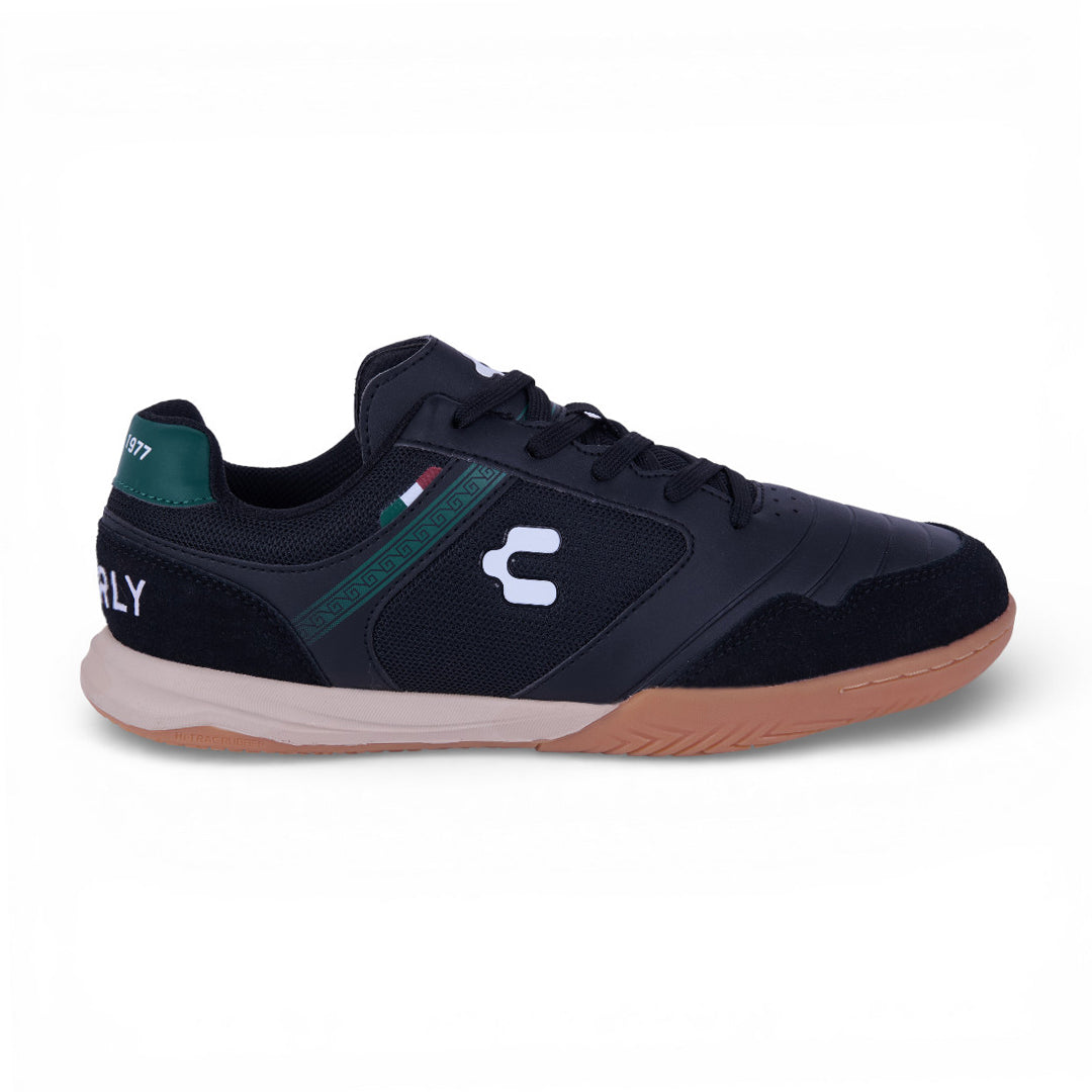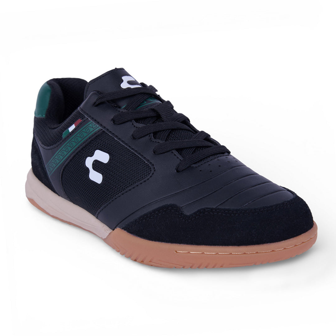 Tenis marca Charly color negro para futbol con suela turf; detalle de logo de la marca a un costado con efecto de colores en diseño y cinta ajustable. Material: Sintético.