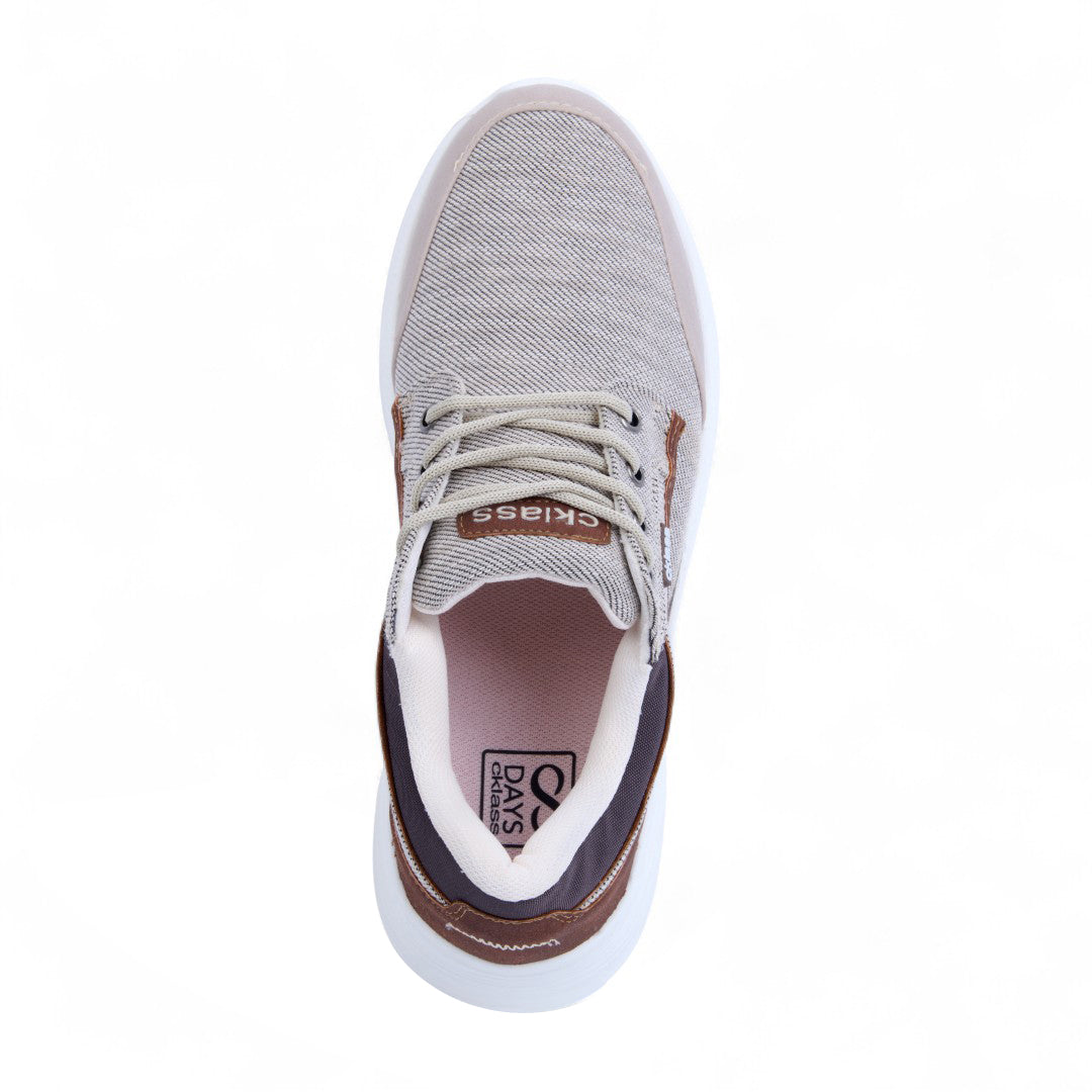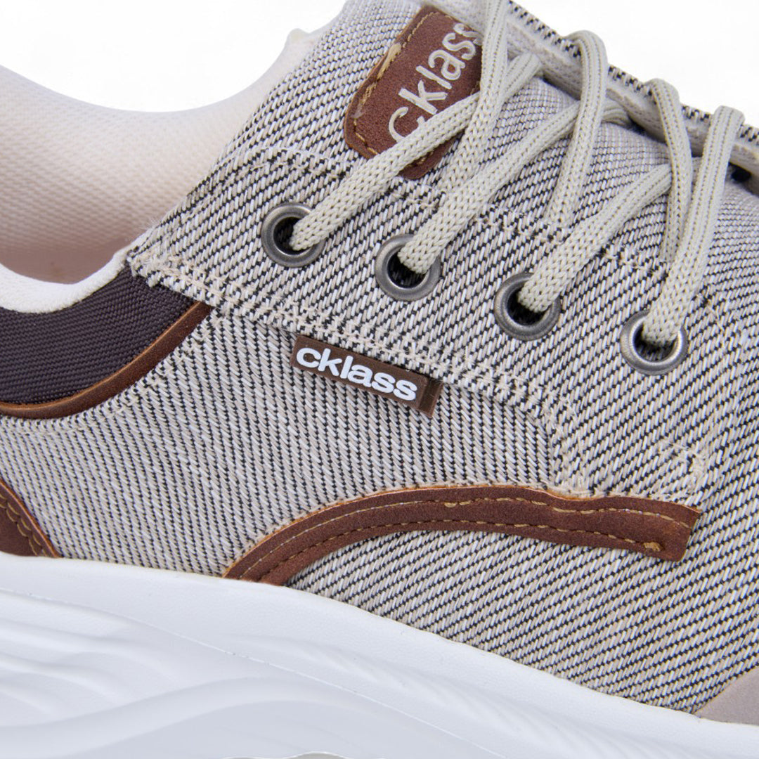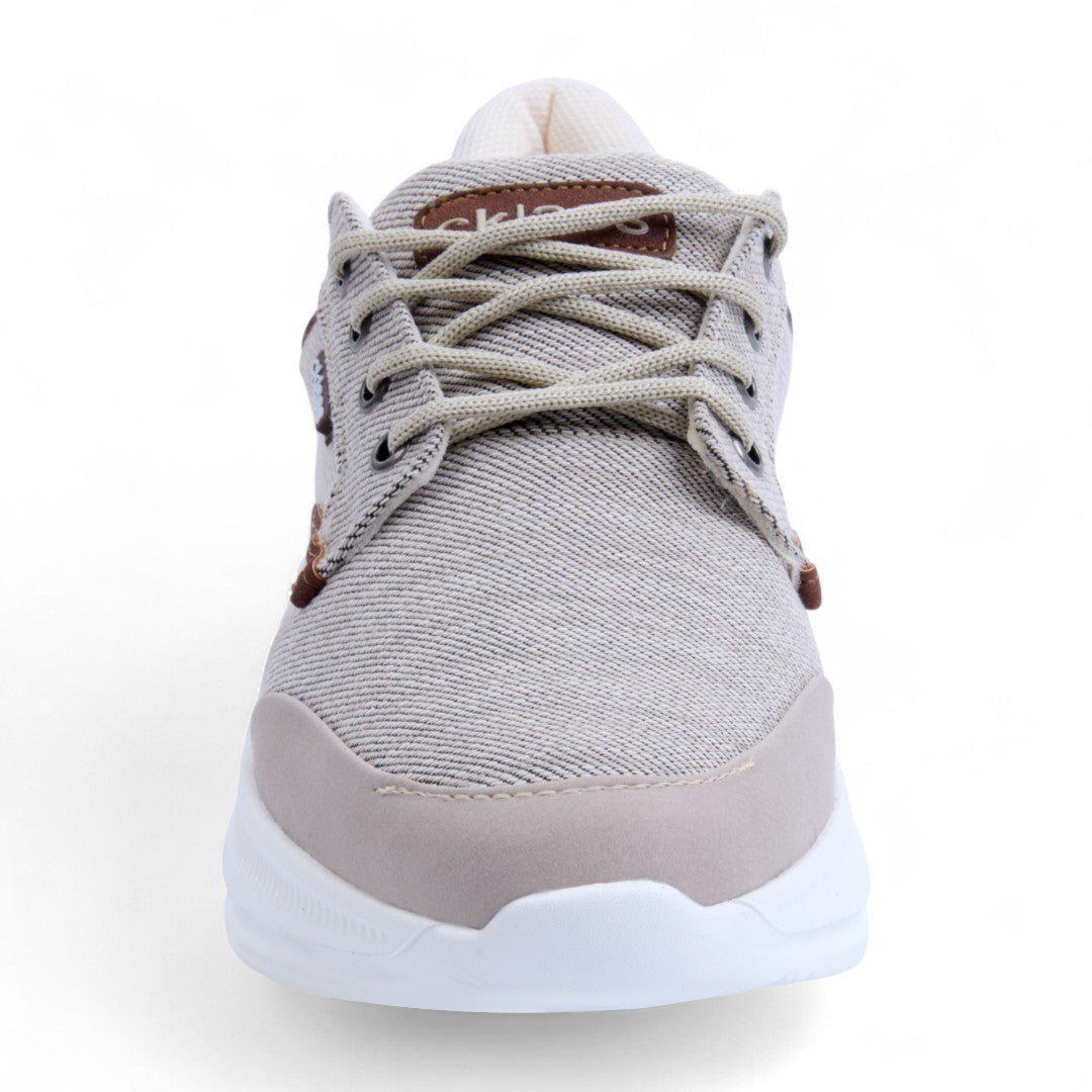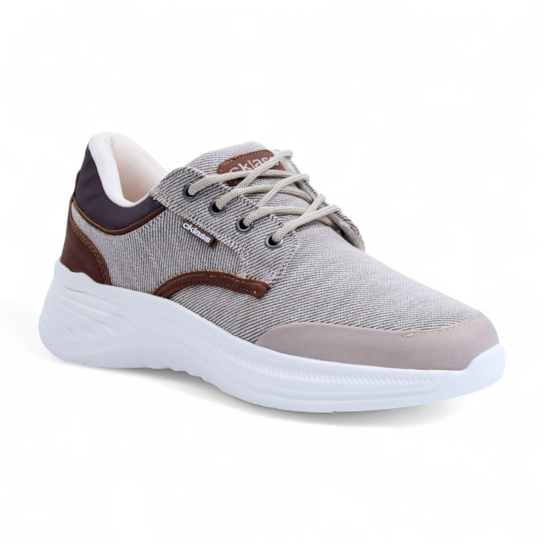 Tenis de piso con cintas y suela acolchada, que combinan estilo y comodidad. Plantilla textil suave para uso diario. Color beige versátil, ideal para looks casuales, escolares o urbanos, garantizando confort y durabilidad durante todo el día.