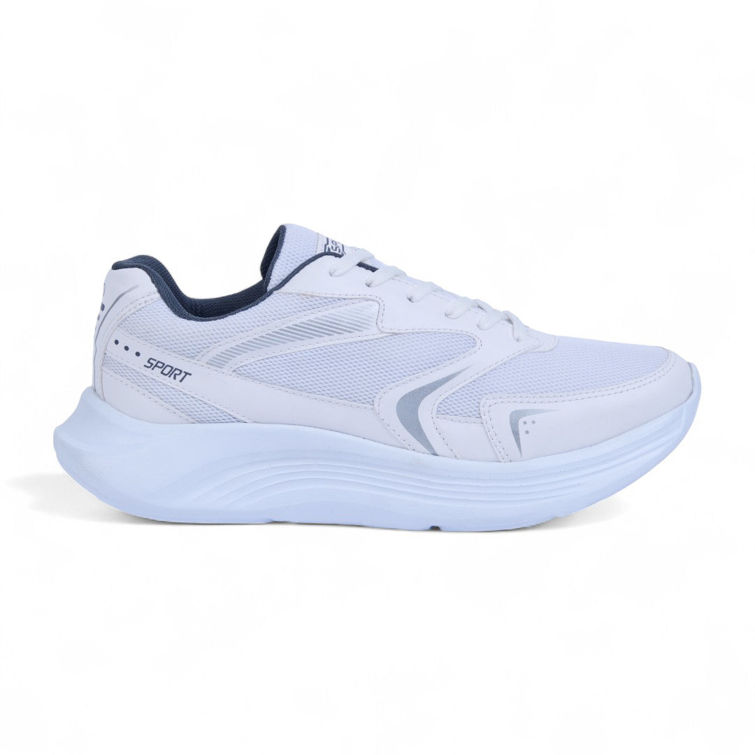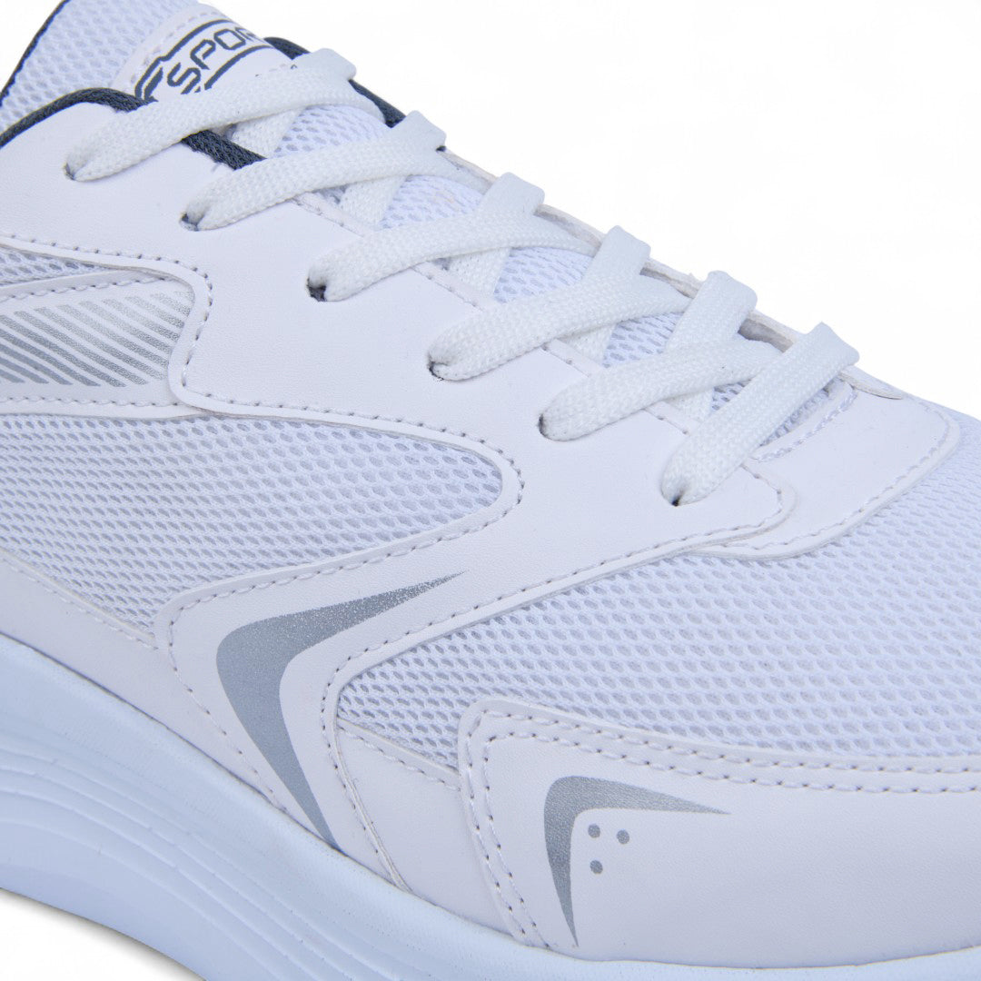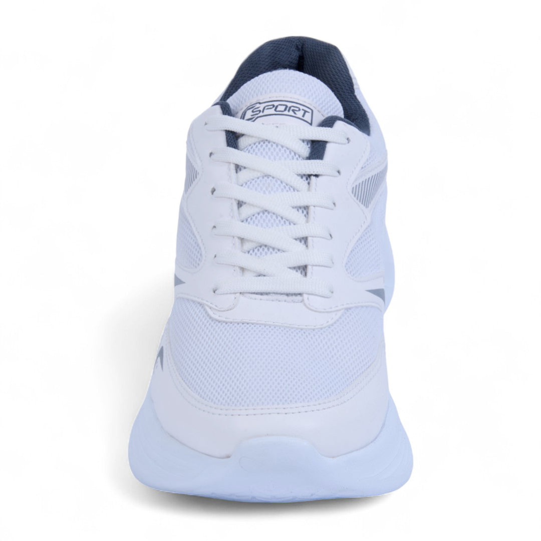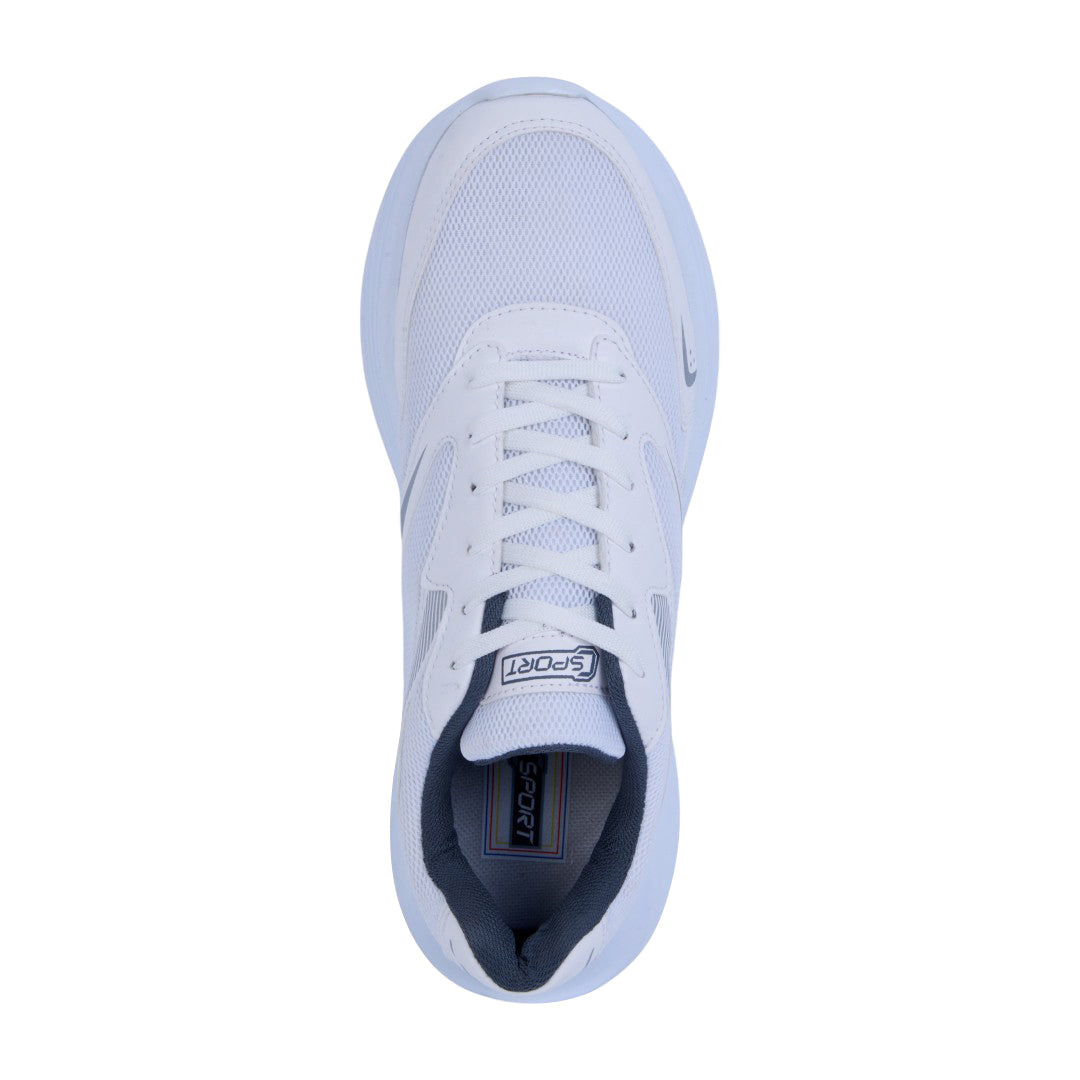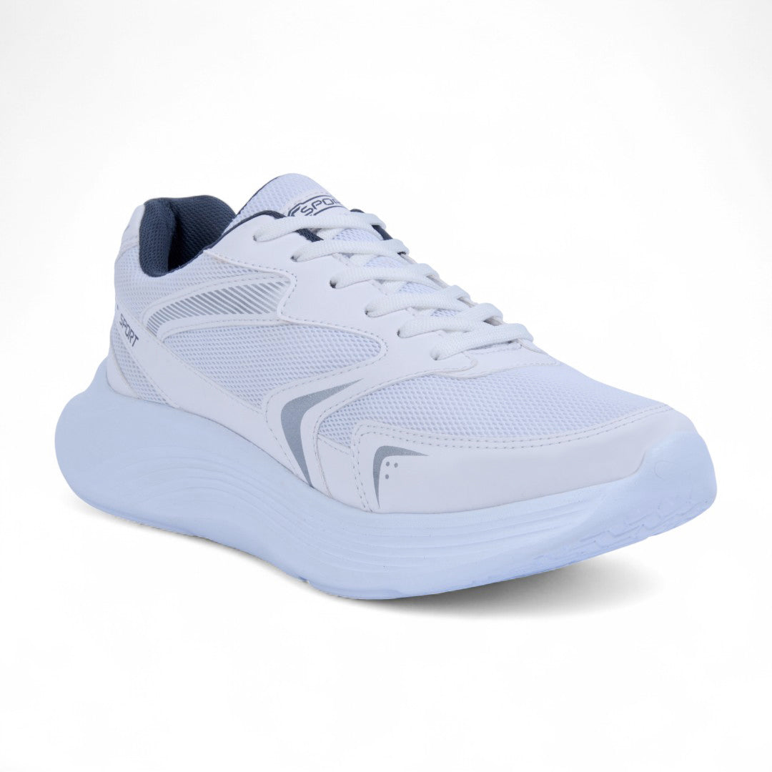 Tenis color blanco de piso, elaborado en material textil combinado con malla transpirable. Presenta cintas ajustables y forro interno en contraste que aporta un toque moderno. Incluye plantilla textil cómoda y suela flexible que garantiza ligereza y confort. Ideal para outfits urbanos, deportivos o casuales.