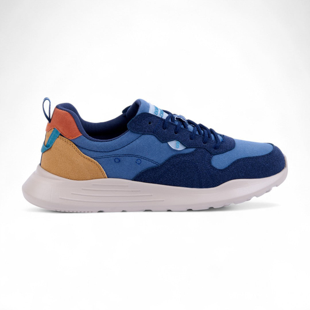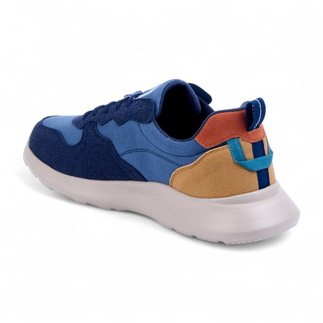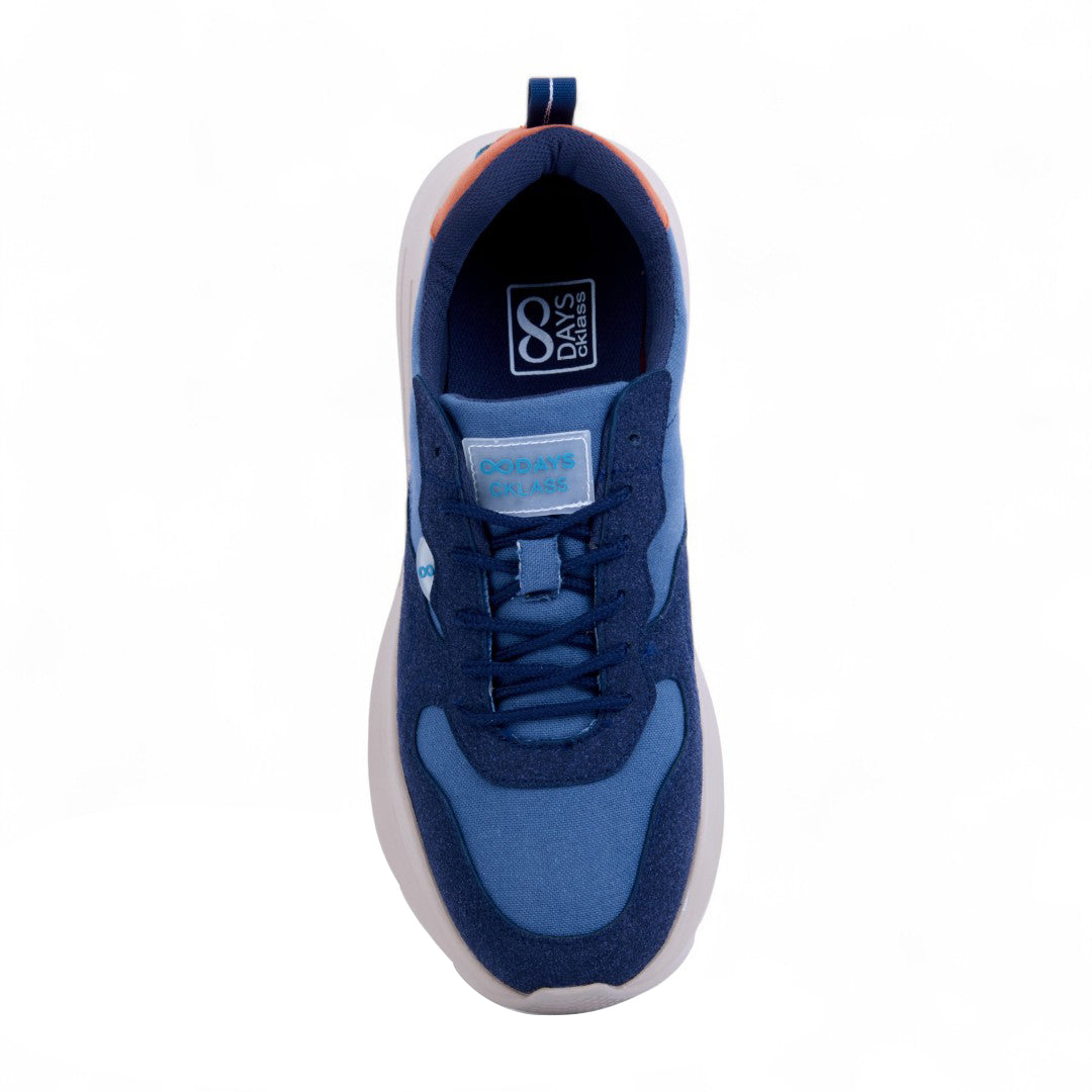 Tenis de piso con cintas y detalles en contraste que combinan estilo y comodidad. Plantilla textil acolchada para uso diario. Color marino versátil, ideal para looks casuales, escolares o actividades diarias, ofreciendo durabilidad y confort durante todo el día.