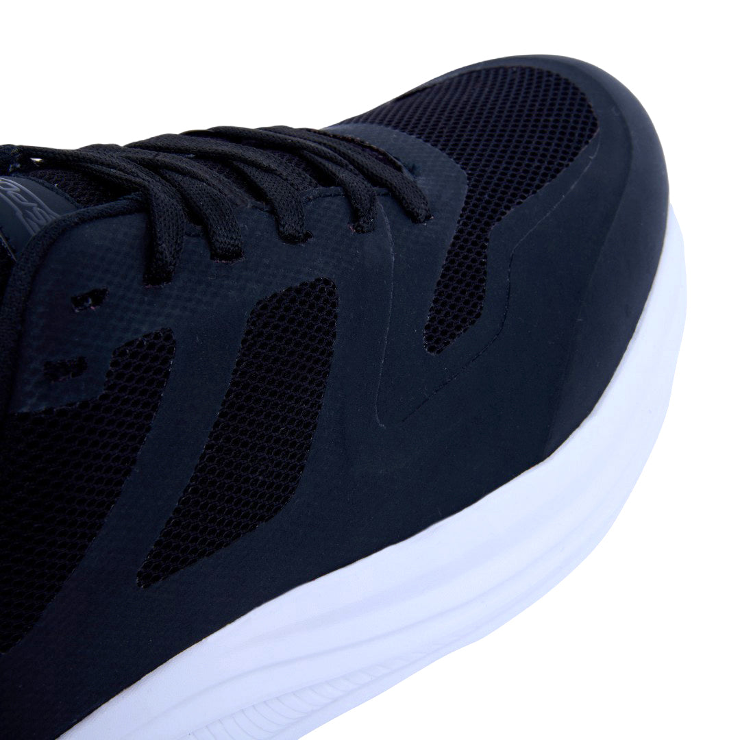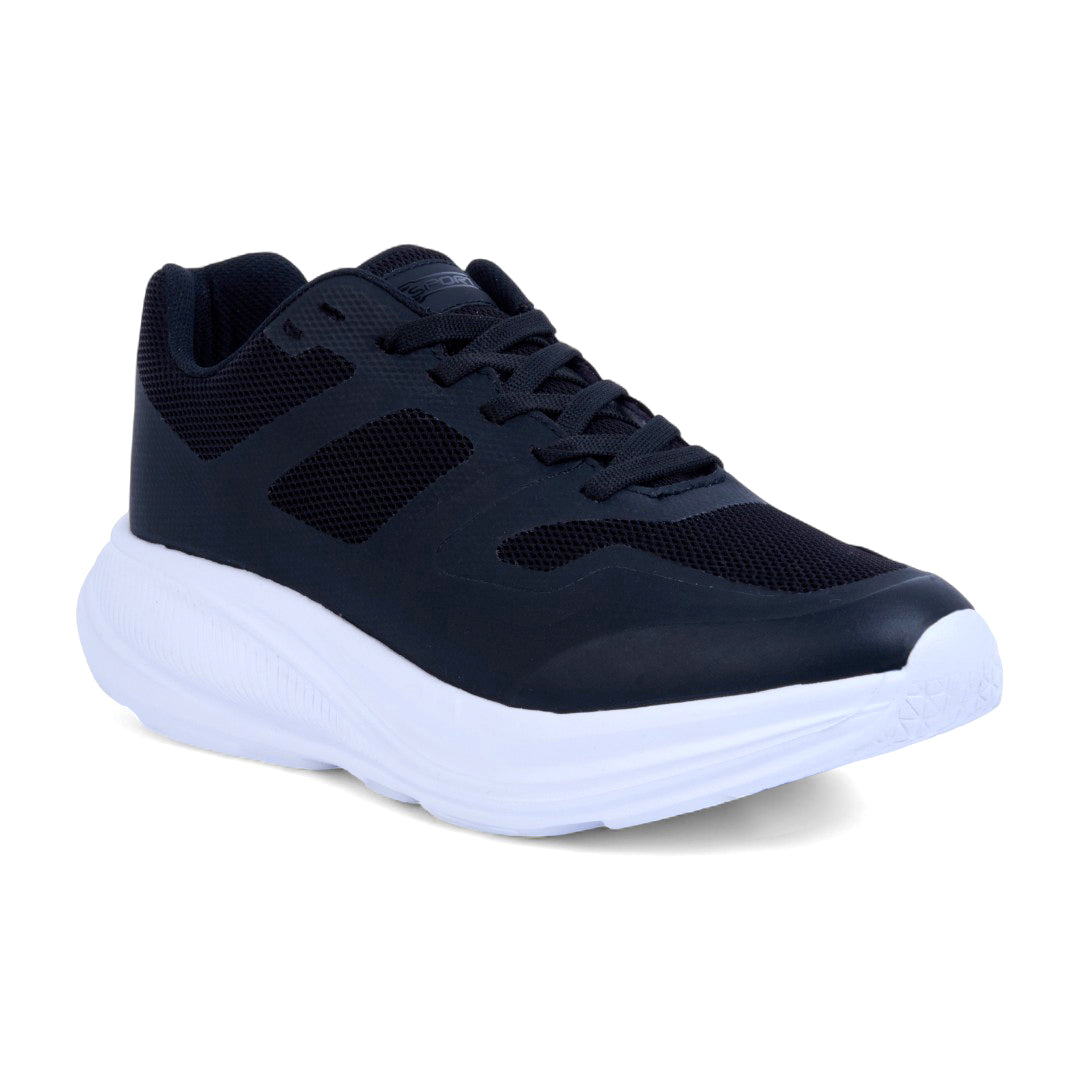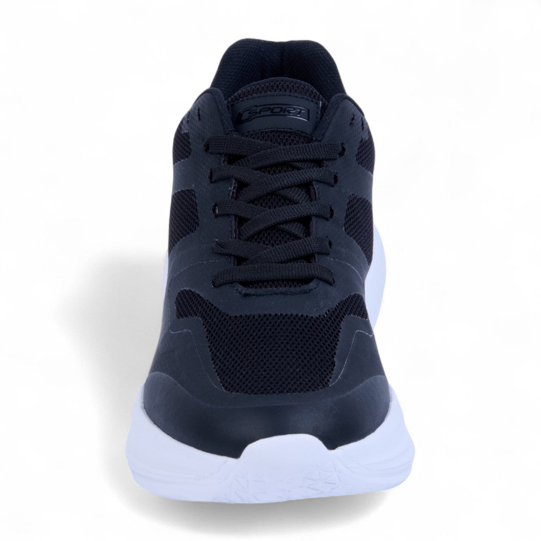 Tenis de piso combinados con malla transpirable y cintas ajustables. Plantilla textil cómoda y suela resistente. Color negro moderno y versátil. Ideal para uso diario, caminatas, actividades casuales y looks urbanos con estilo y confort garantizado.