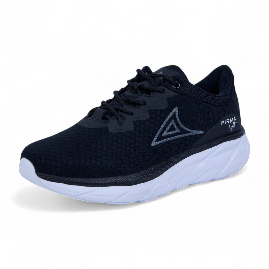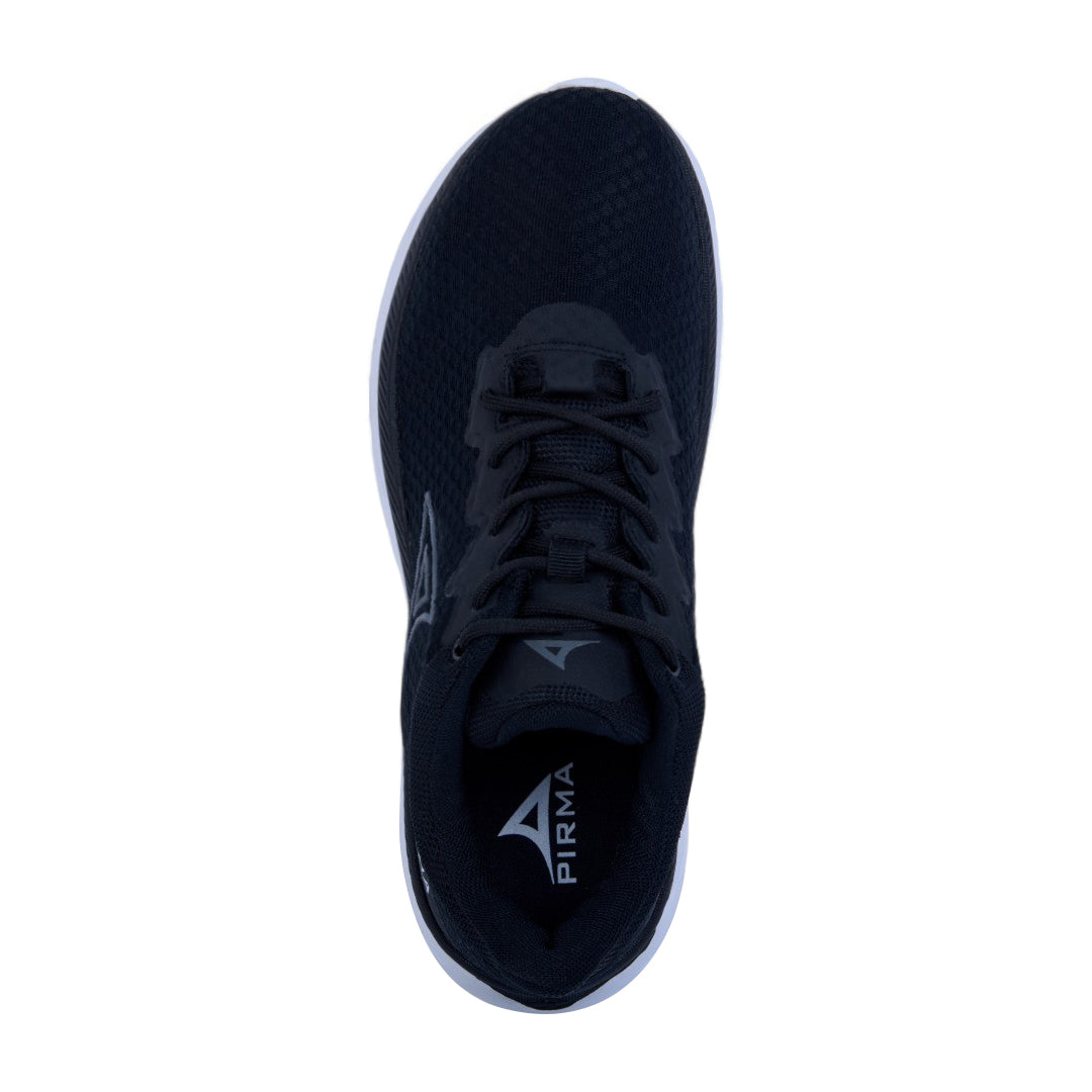 Tenis deportivo Pirma para caballero en color negro, con suela ligera y ajuste con agujetas, ideales para entrenar o uso diario.