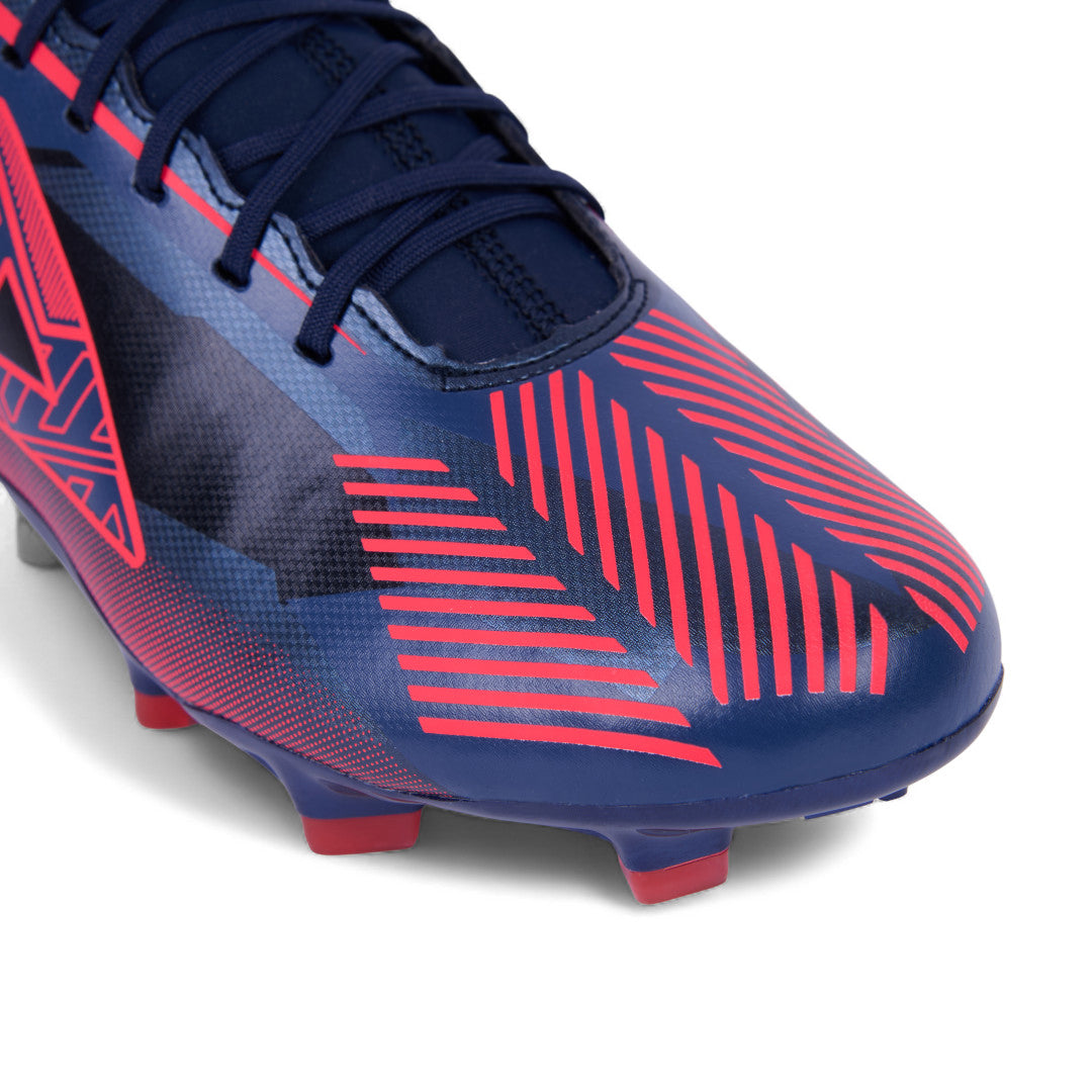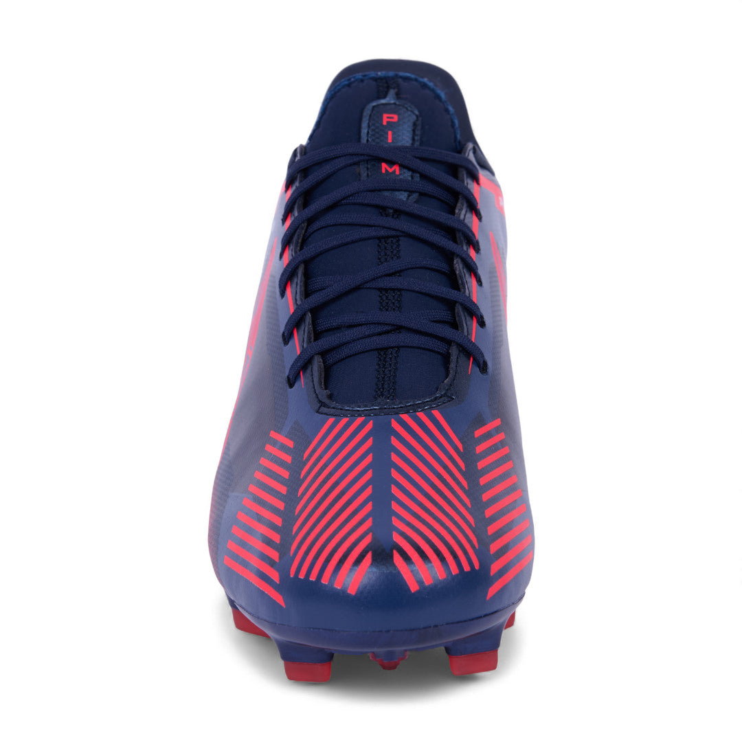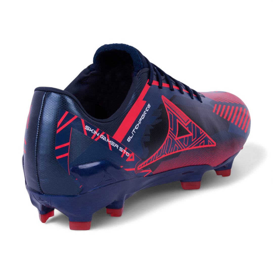 Tenis Pirma para soccer con tachones, combinación marino con rojo, cinta ajustable y suela diseñada para buen agarre en campo.