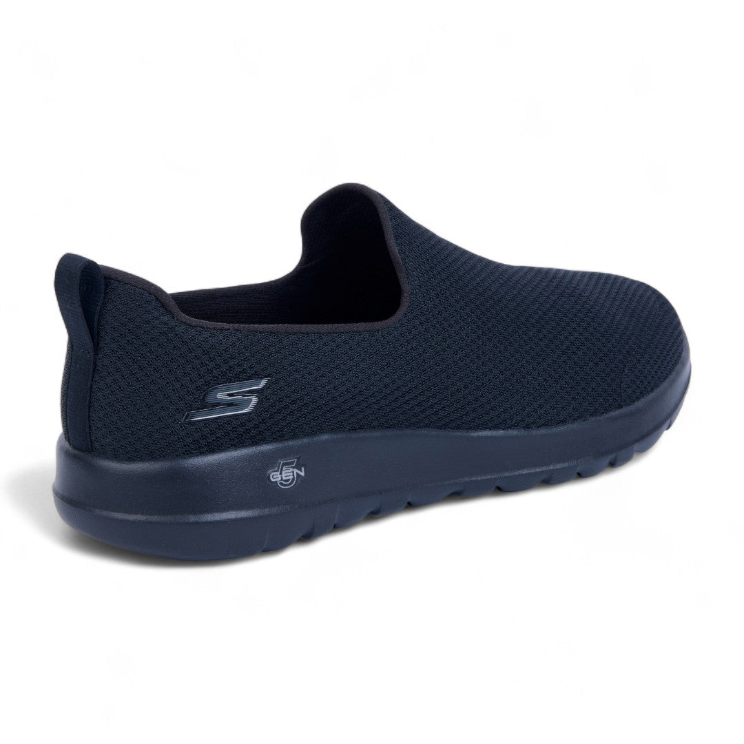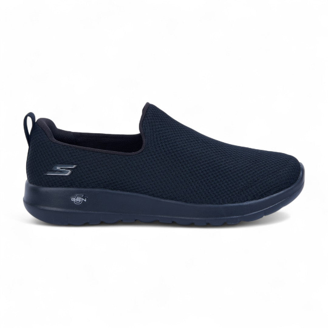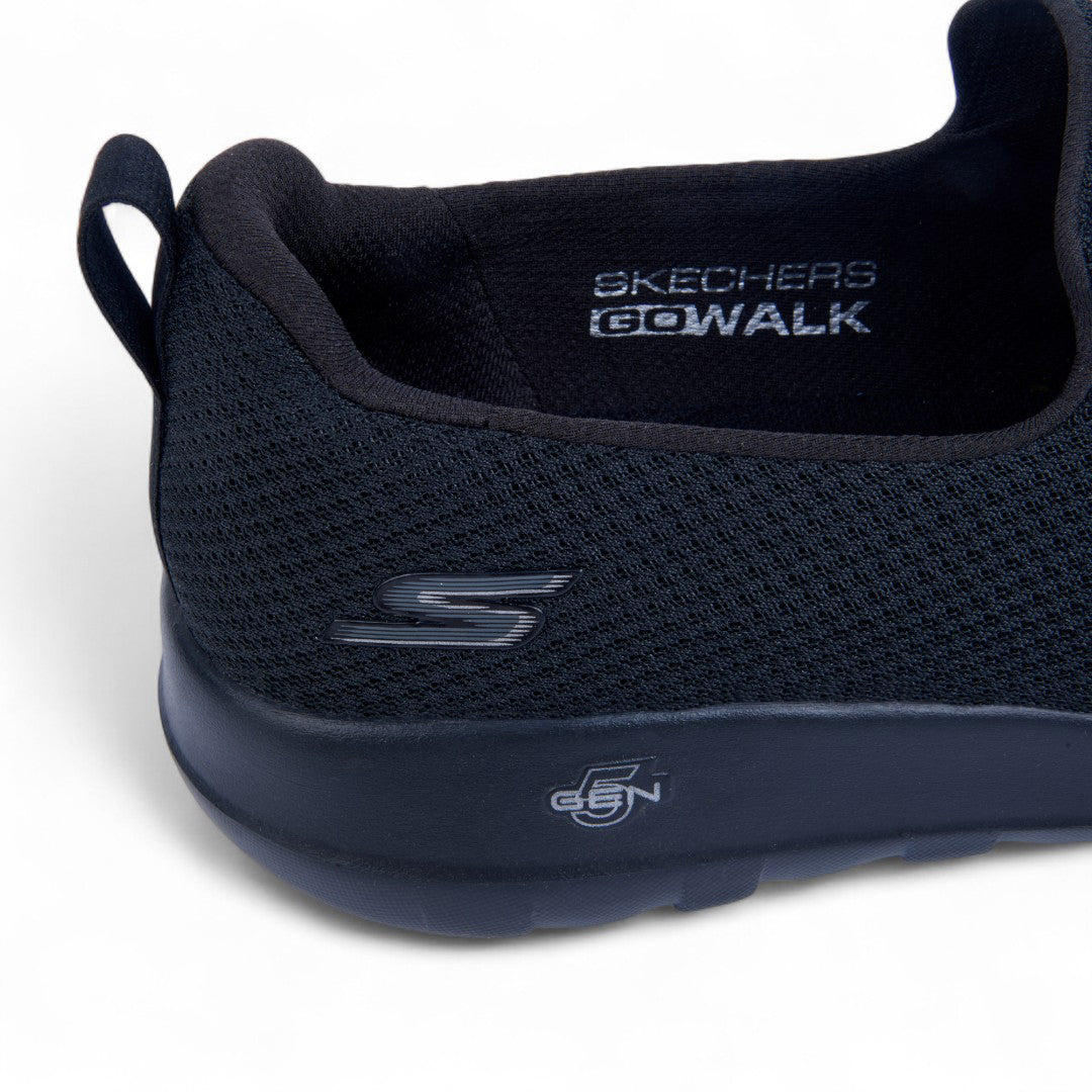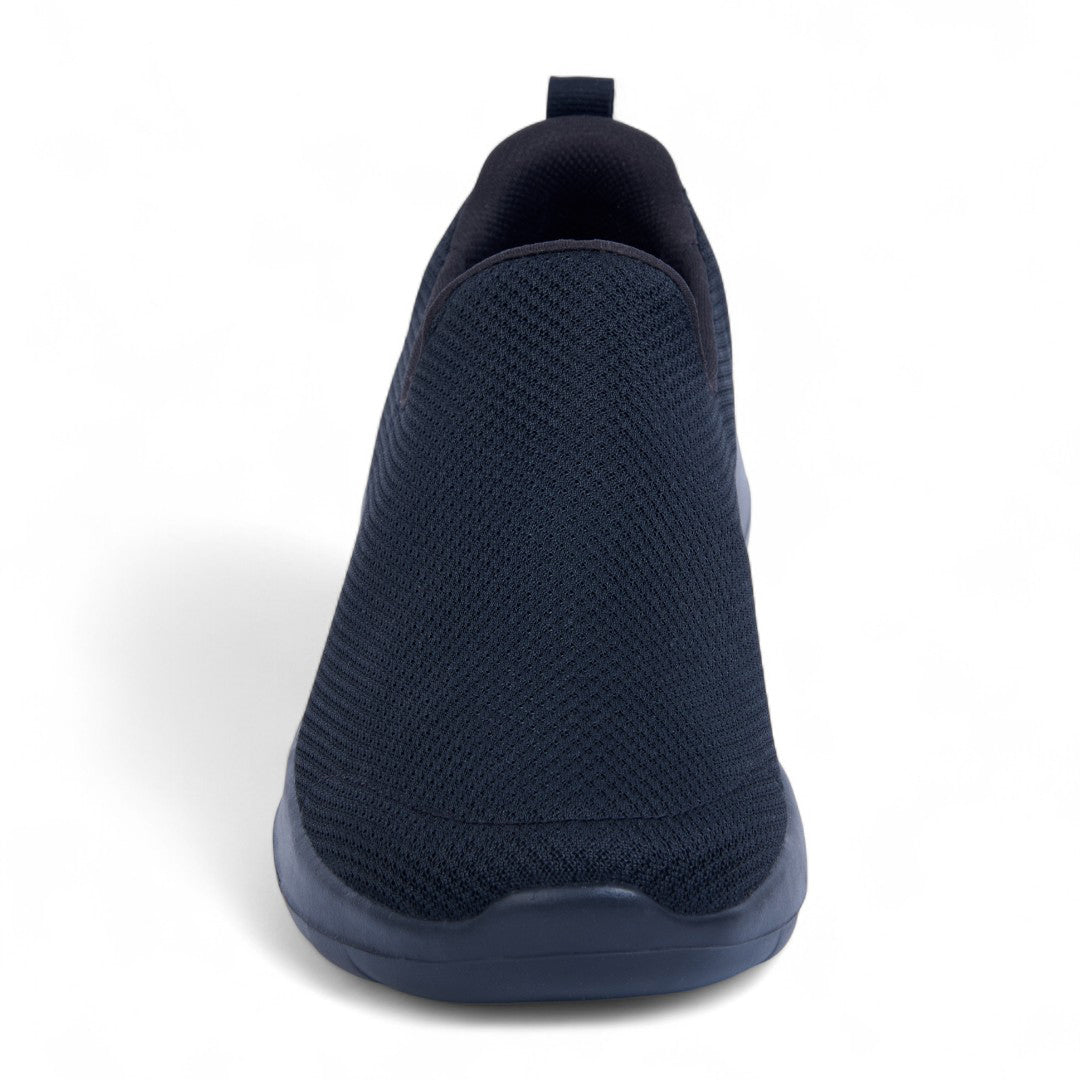 Tenis Skechers negro tipo slip-in para dama, confeccionados en malla textil transpirable que mantiene el pie fresco. Suela ultraligera con acabado antiderrapante que brinda seguridad en cada paso. Diseño práctico sin agujetas que ofrece máximo confort para uso diario, trabajo o caminatas prolongadas.