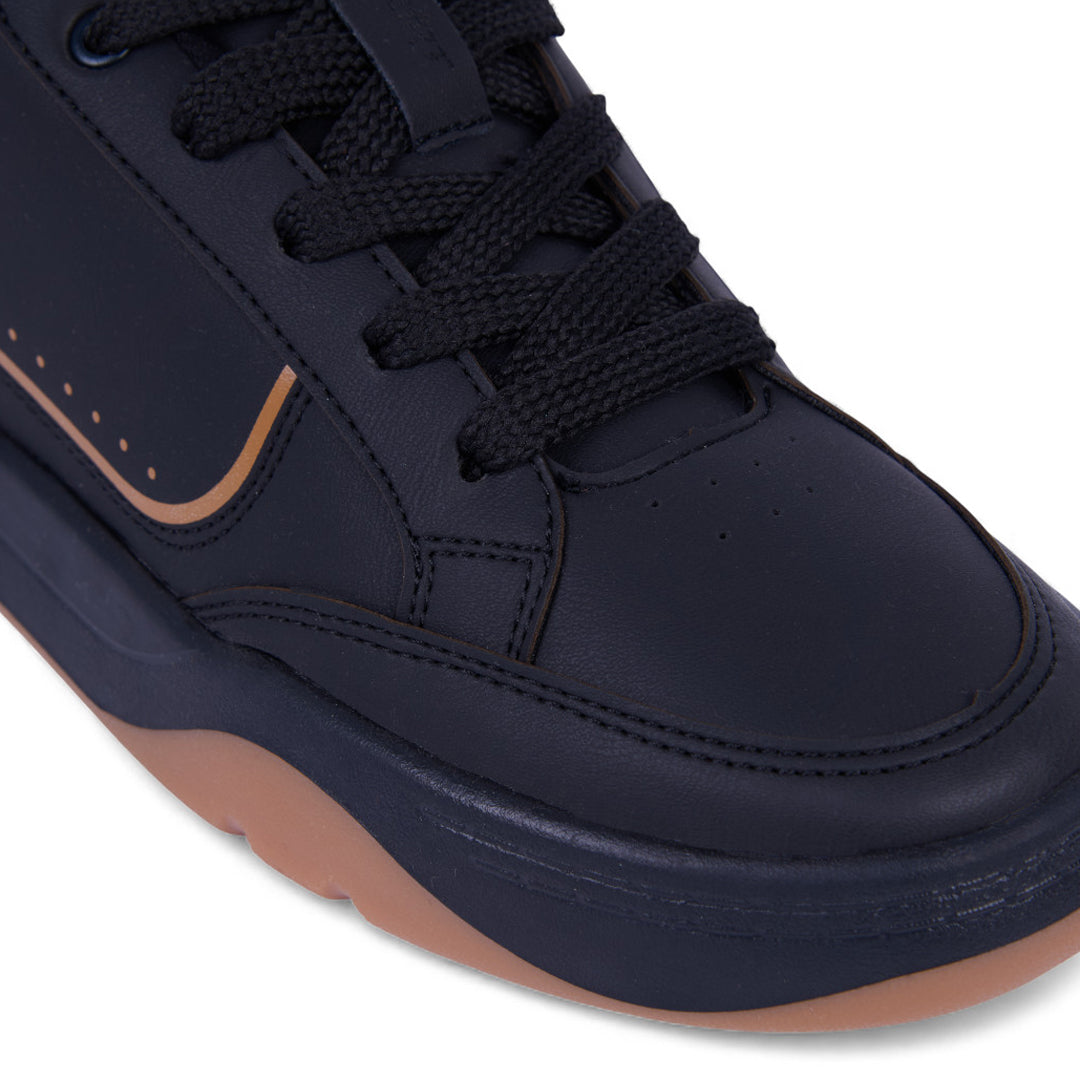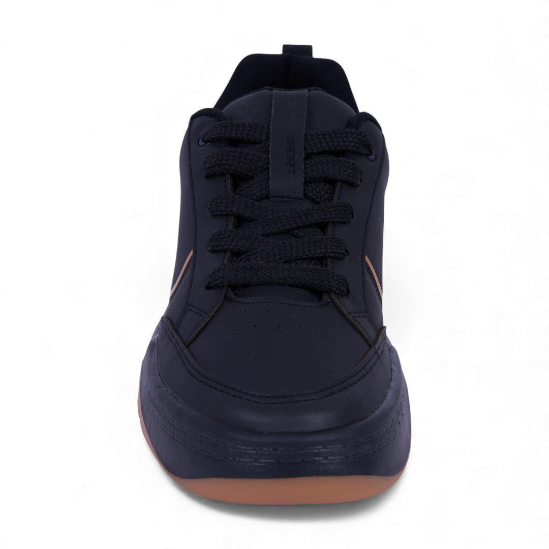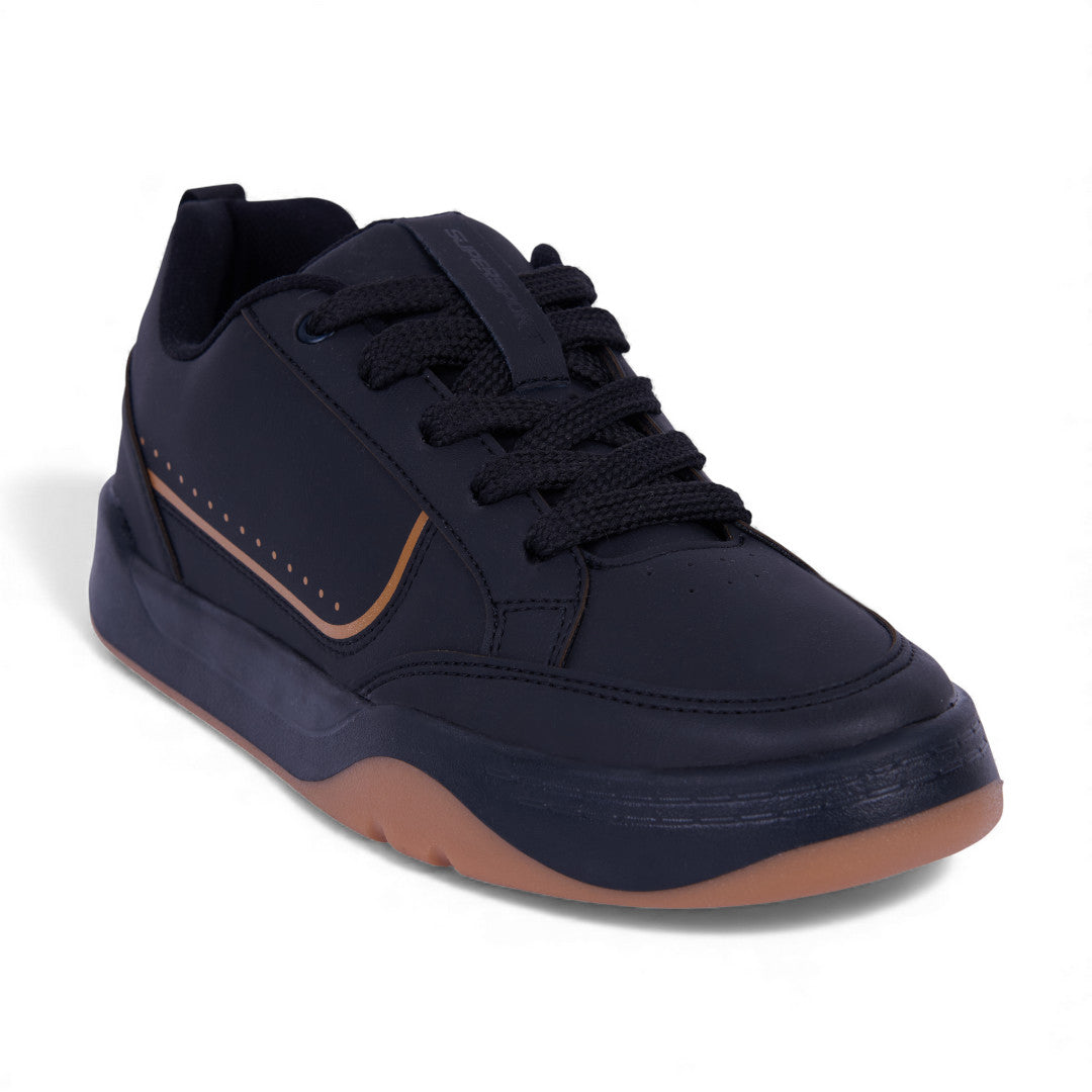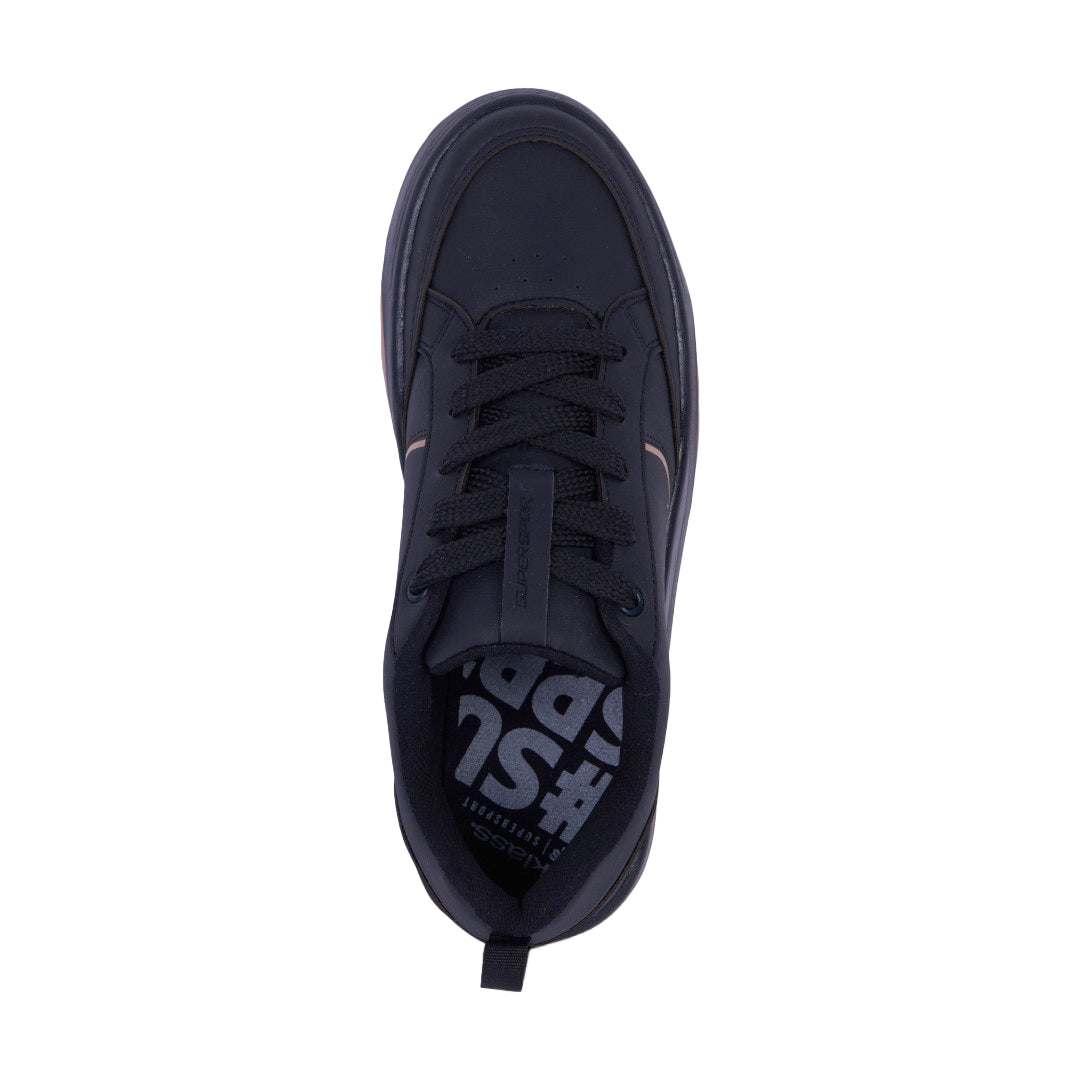 Tenis deportivo negro SuperSport con media suela y plantilla memory foam; ligeros, modernos y perfectos para entrenar o uso diario.