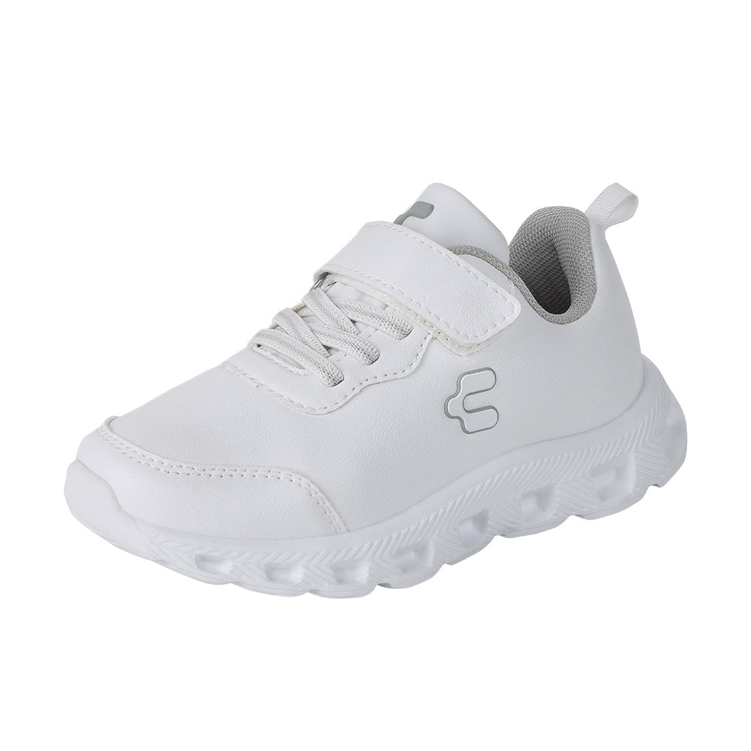 Tenis marca Charly color blanco con logo de la marca en parte frontal cinta ajustable y contactel; con suela antiderrapante ligera. Material: Sintético.