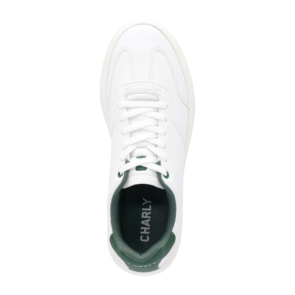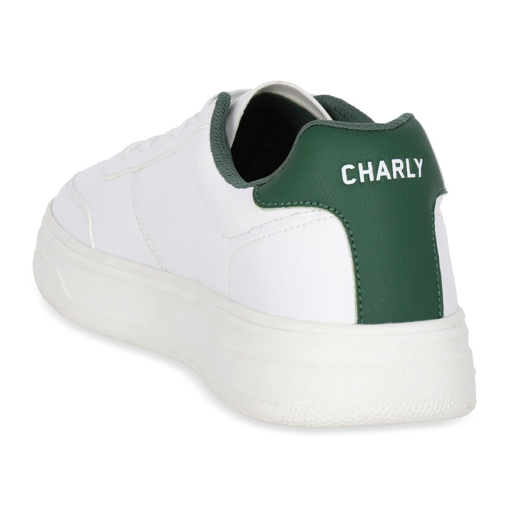 Tenis marca Charly color blanco con logo de la marca en parte frontal y cinta ajustable; con suela antiderrapante ligera. Material: Sintético.