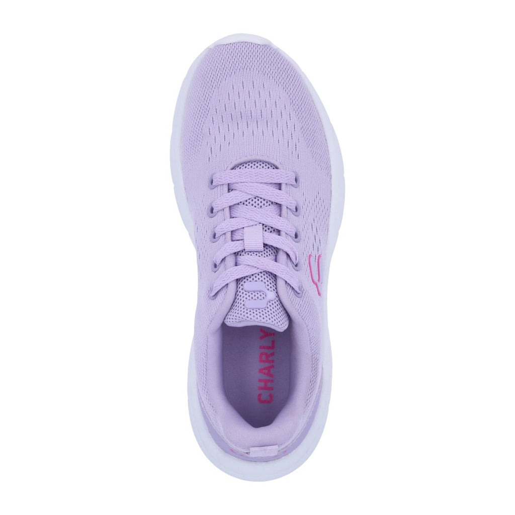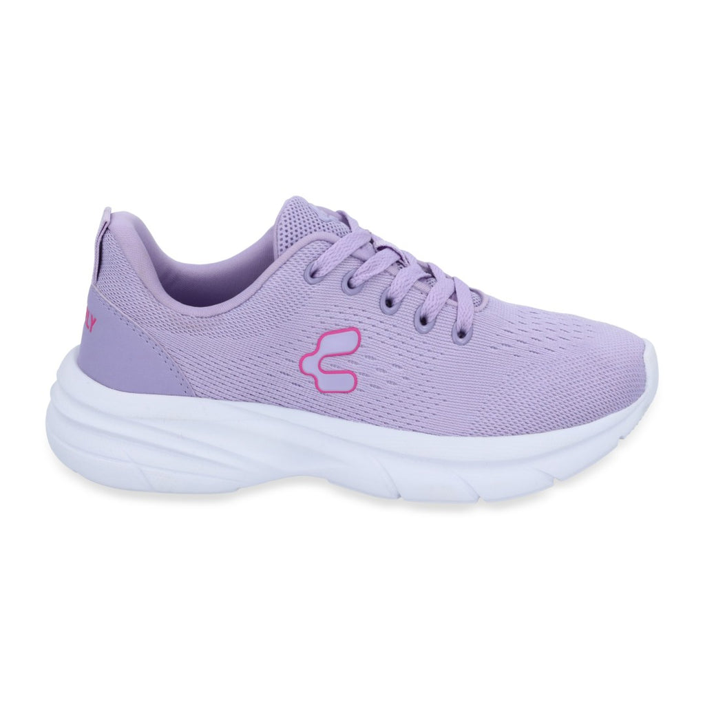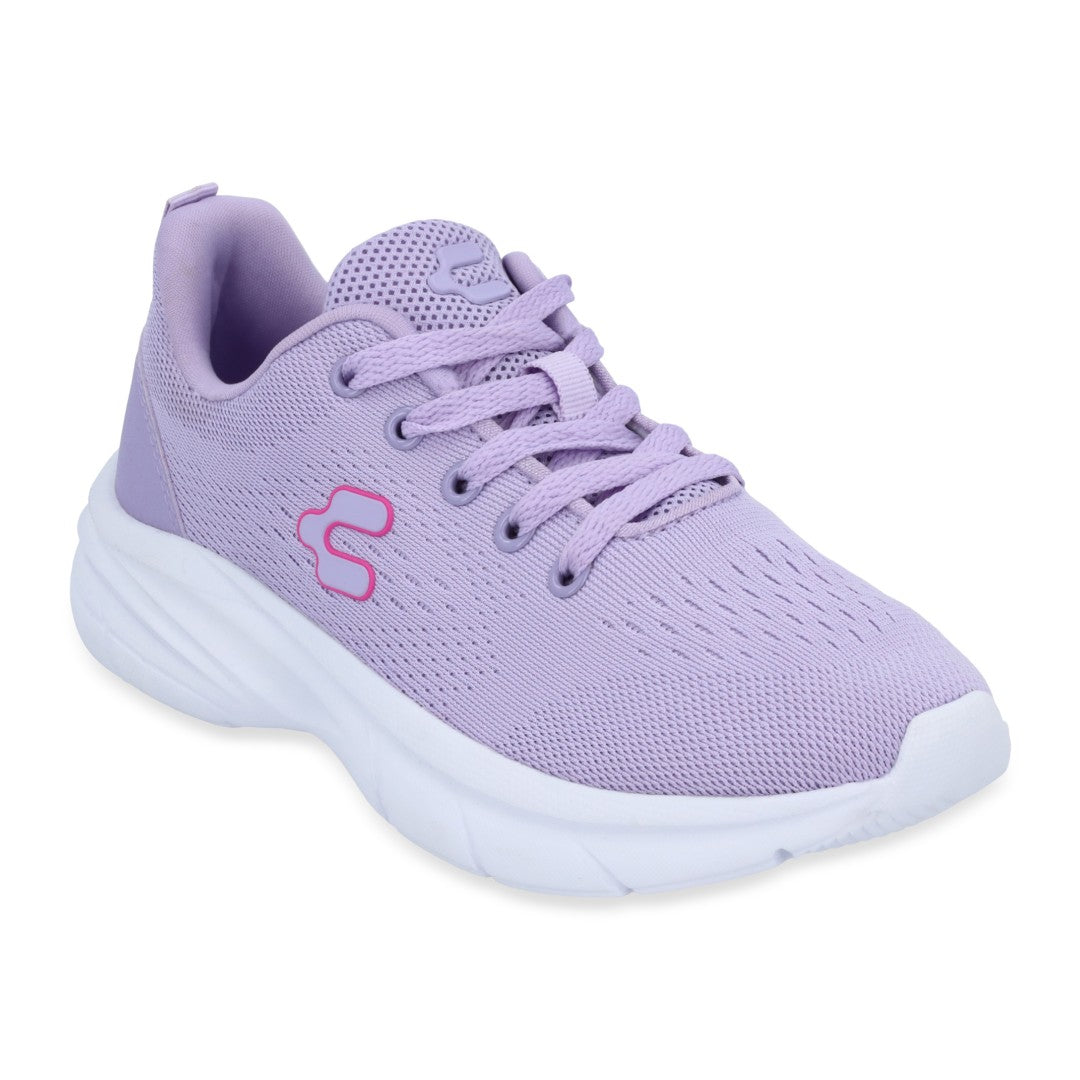 Tenis Charly de color lila con malla transpirable y cinta ajustable con jalador posterior; detalle de logo de la marca en lateral y en lengüeta con suela ligera antiderrapante.
