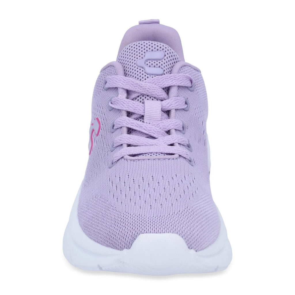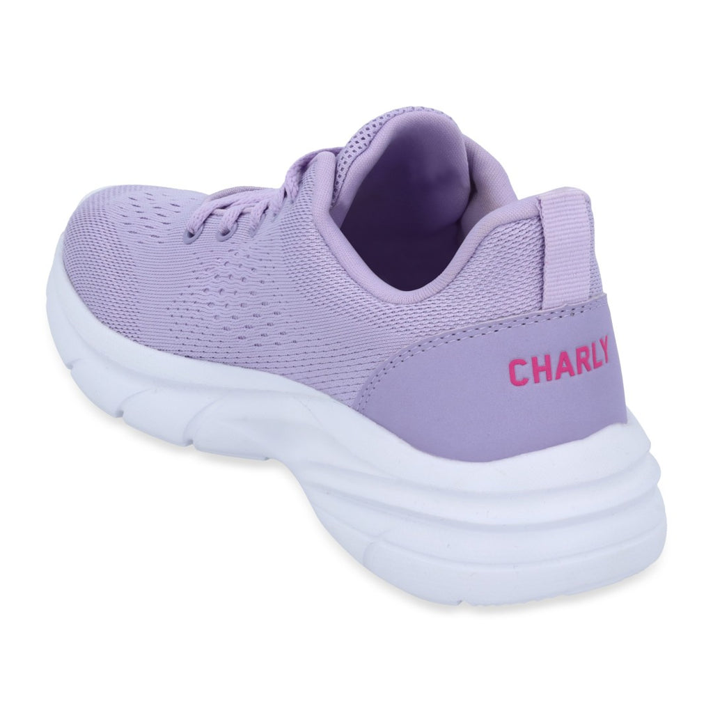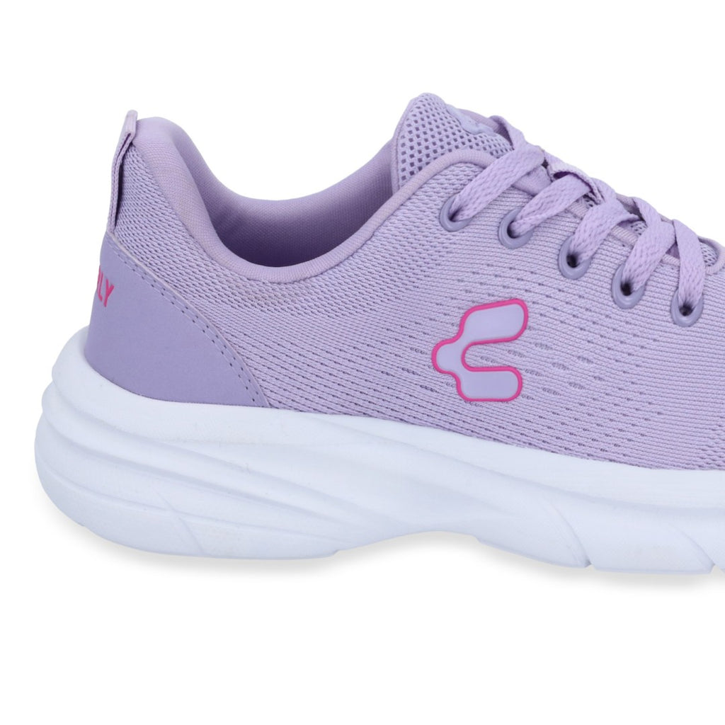 Tenis Charly de color lila con malla transpirable y cinta ajustable con jalador posterior; detalle de logo de la marca en lateral y en lengüeta con suela ligera antiderrapante.