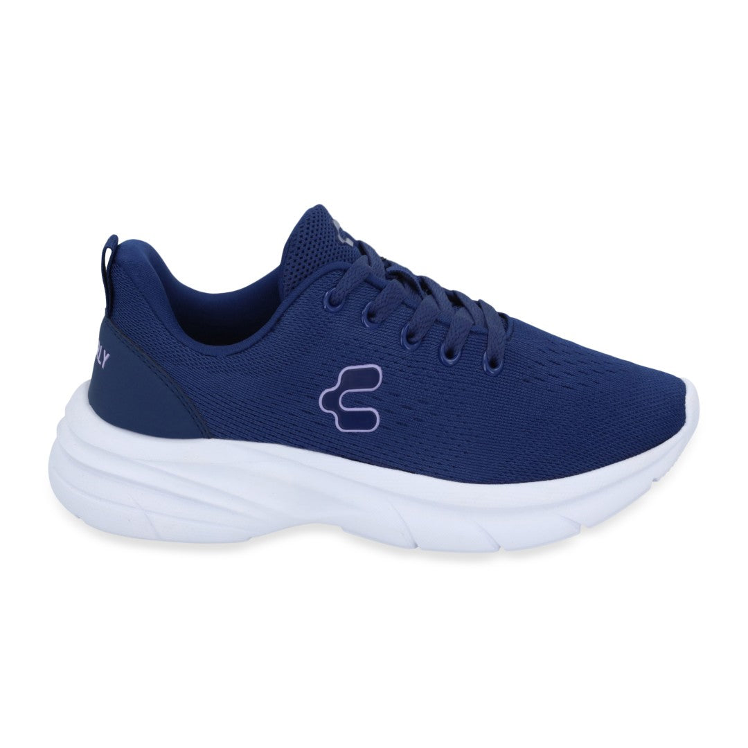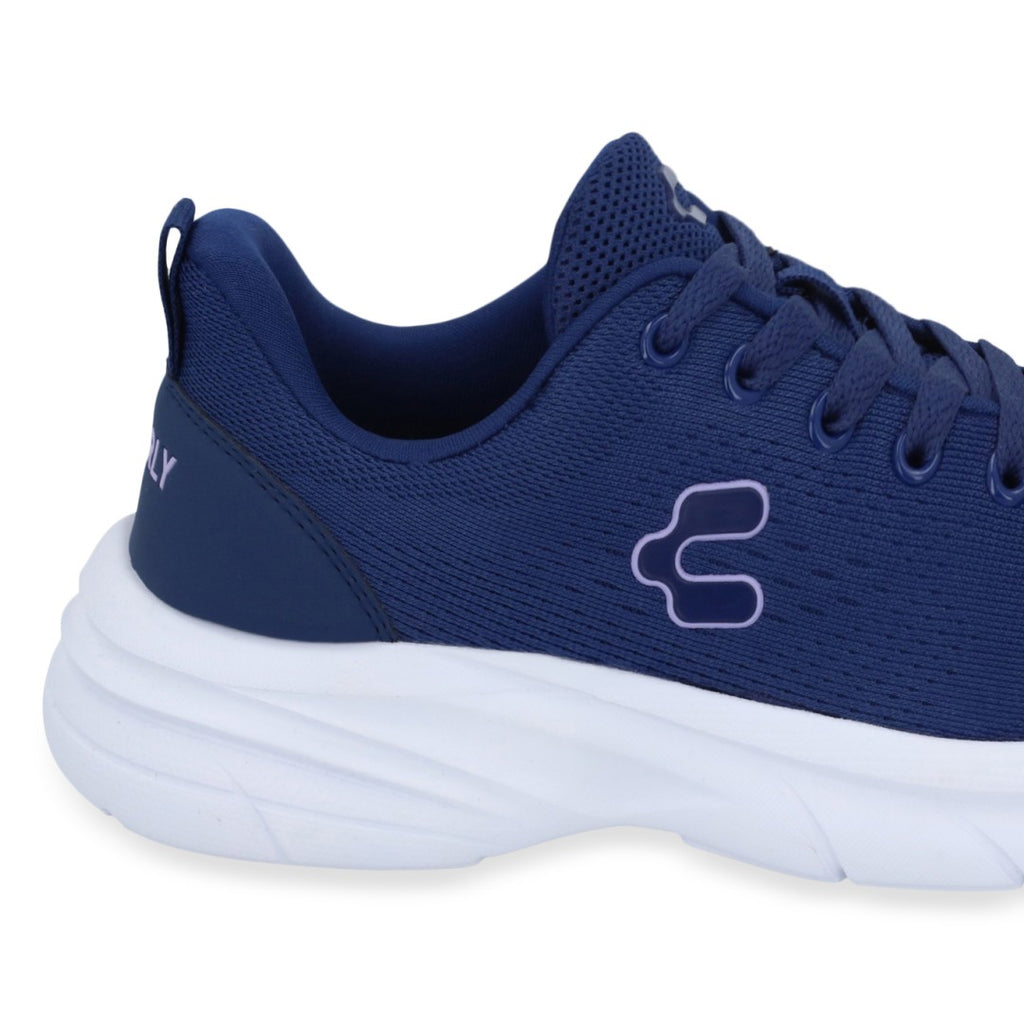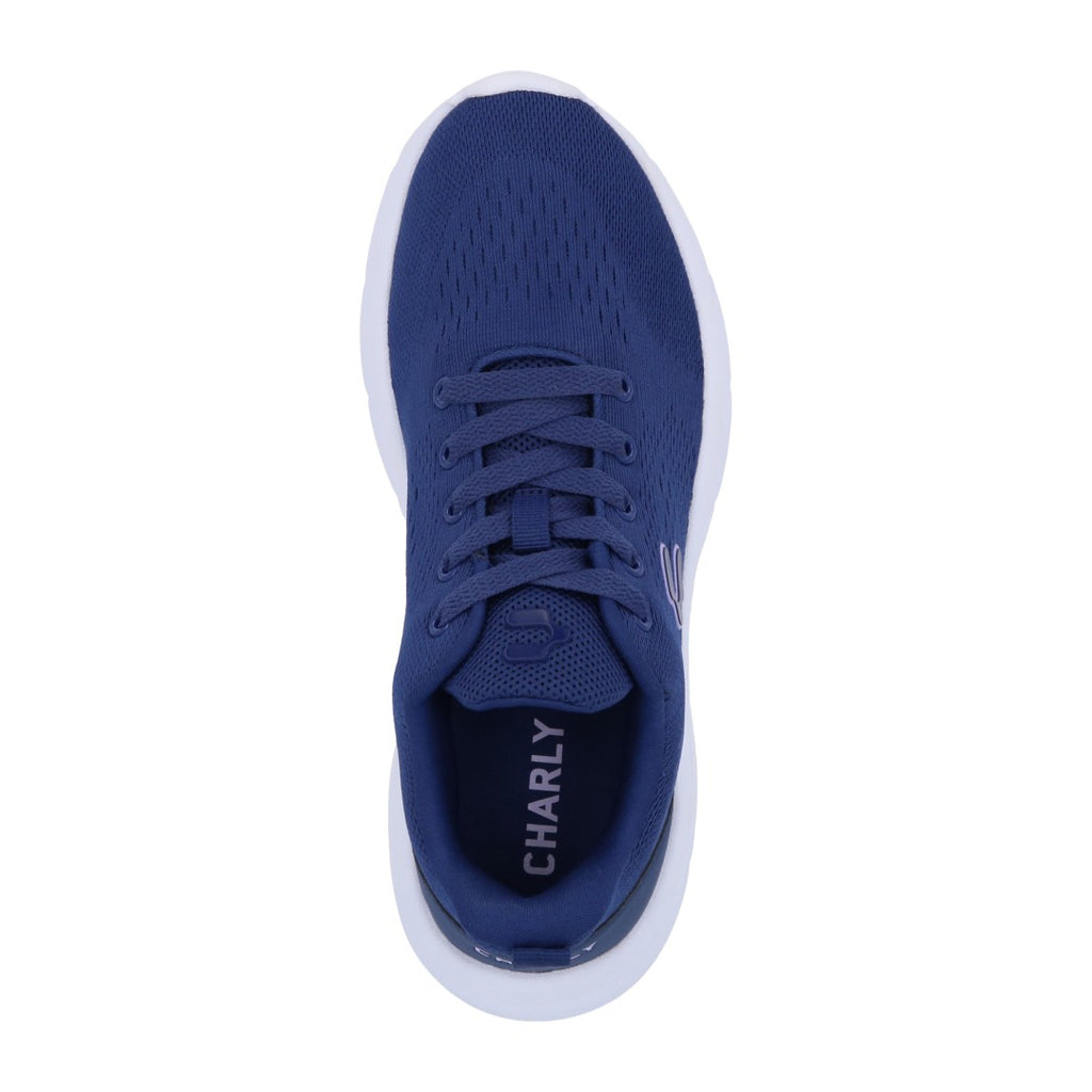 Tenis Charly de color marino con malla transpirable y cinta ajustable con jalador posterior; detalle de logo de la marca en lateral y en lengüeta con suela ligera antiderrapante.