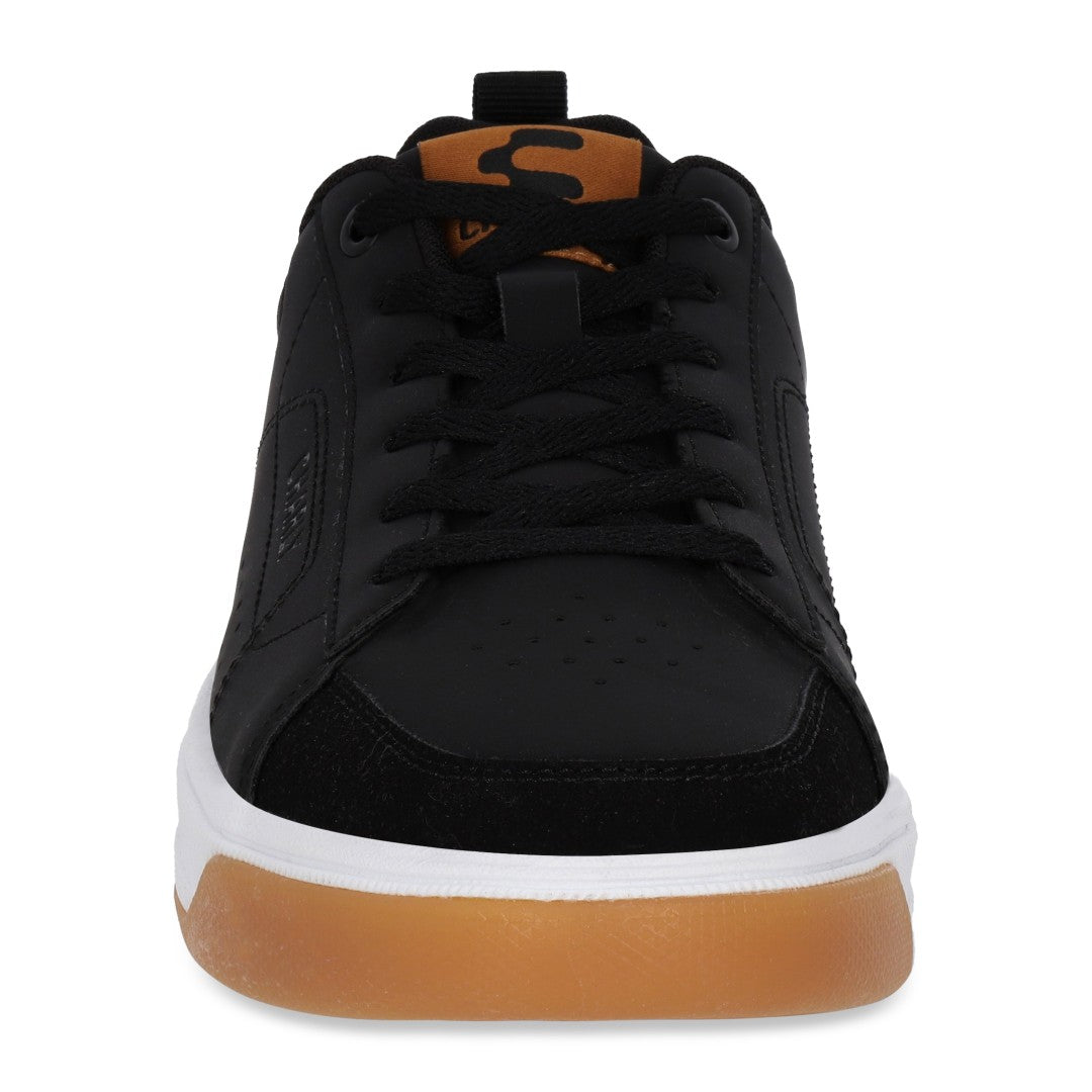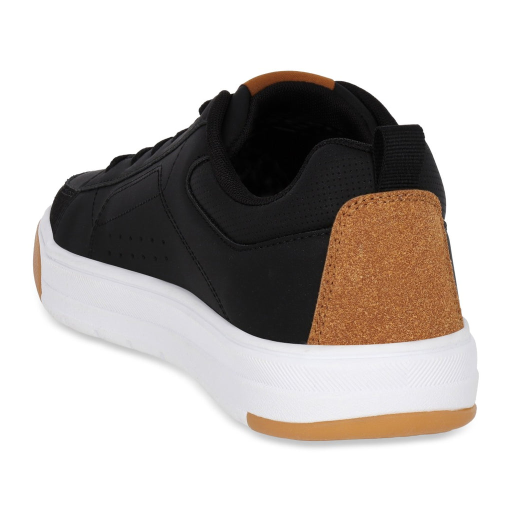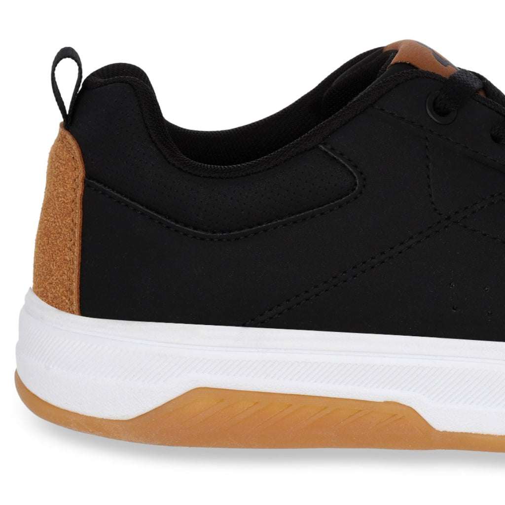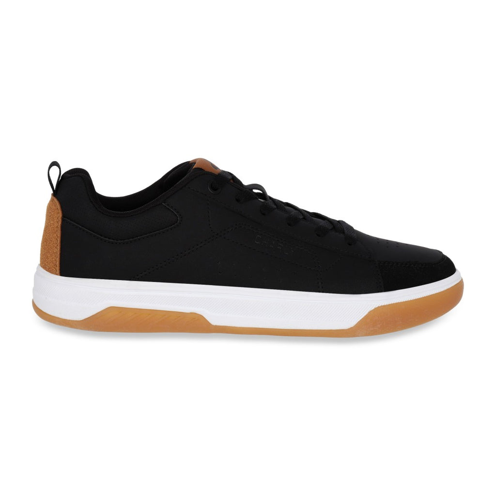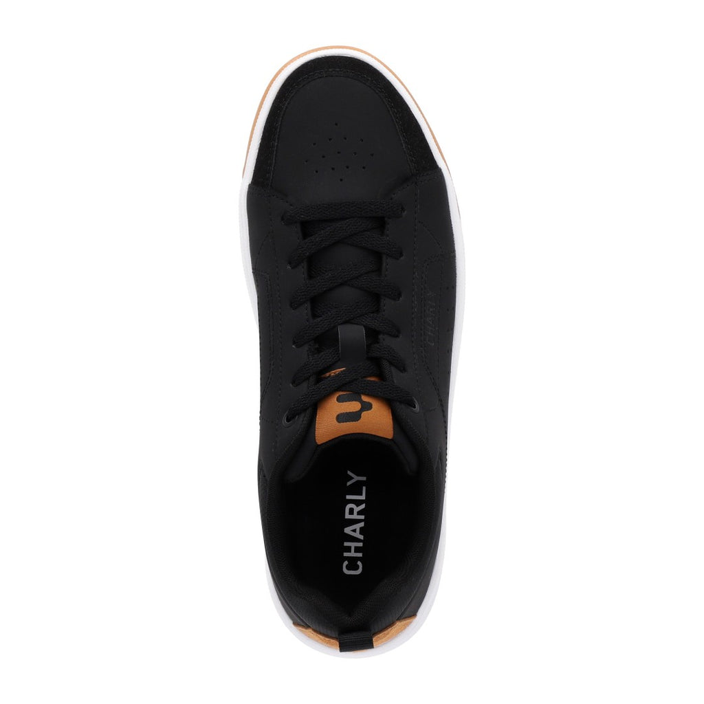 Tenis marca Charly negro con logo de la marca en parte frontal y cinta ajustable; con suela antiderrapante y patín al contraste. Material: Sintético.