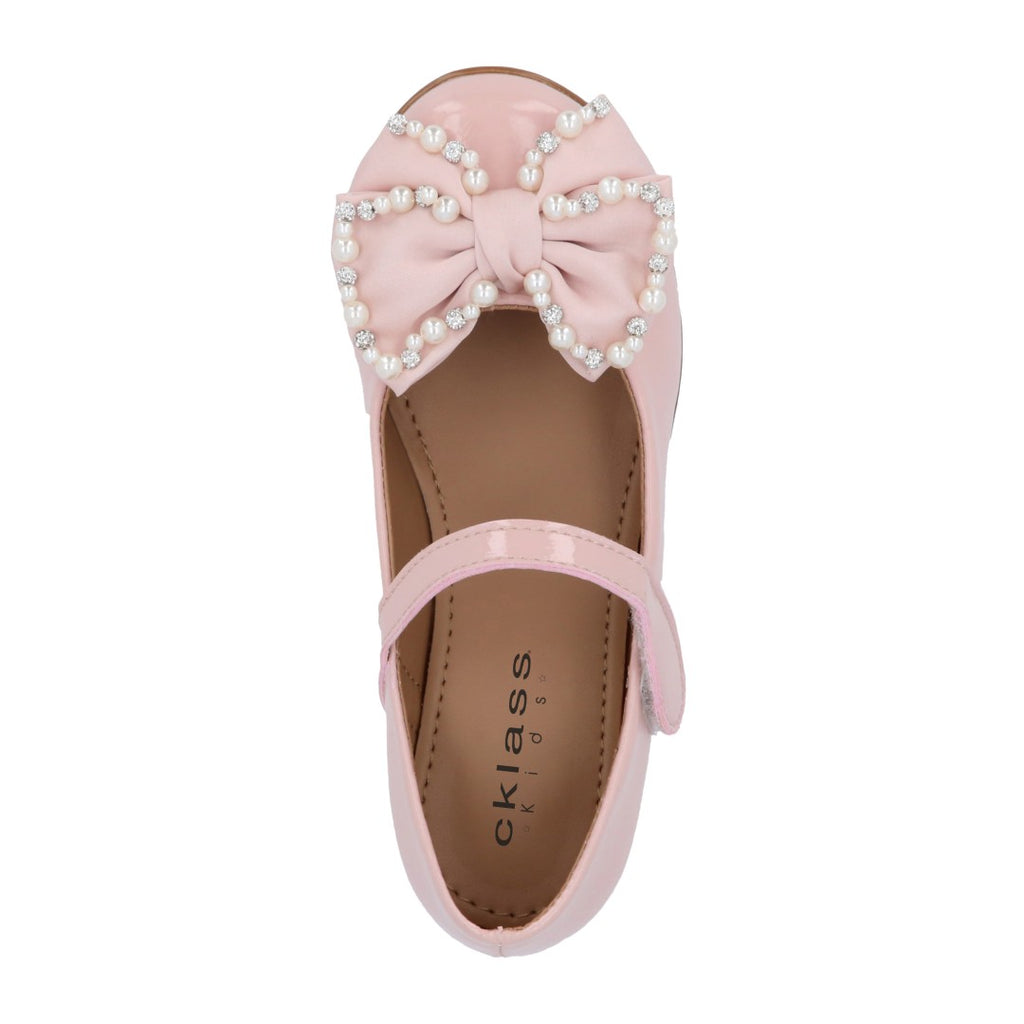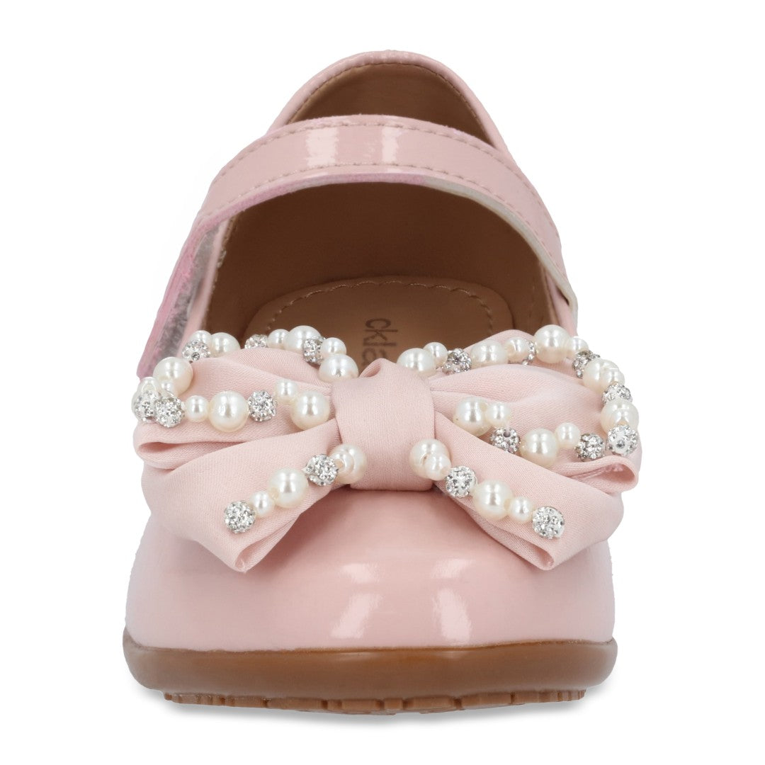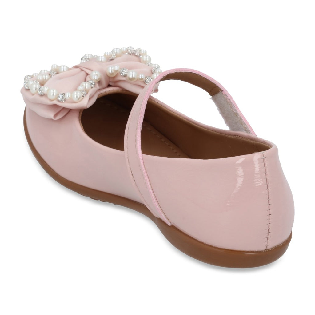 Balerina casual color rosa, detalle de moño con perlas y látigo en empeine con contactel. Plantilla: Piel. Material: Sintético.