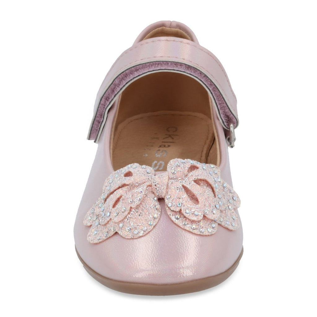 Balerina casual color rosa, detalle de moño, látigo con contactel. Plantilla: Piel. Material: Sintético.