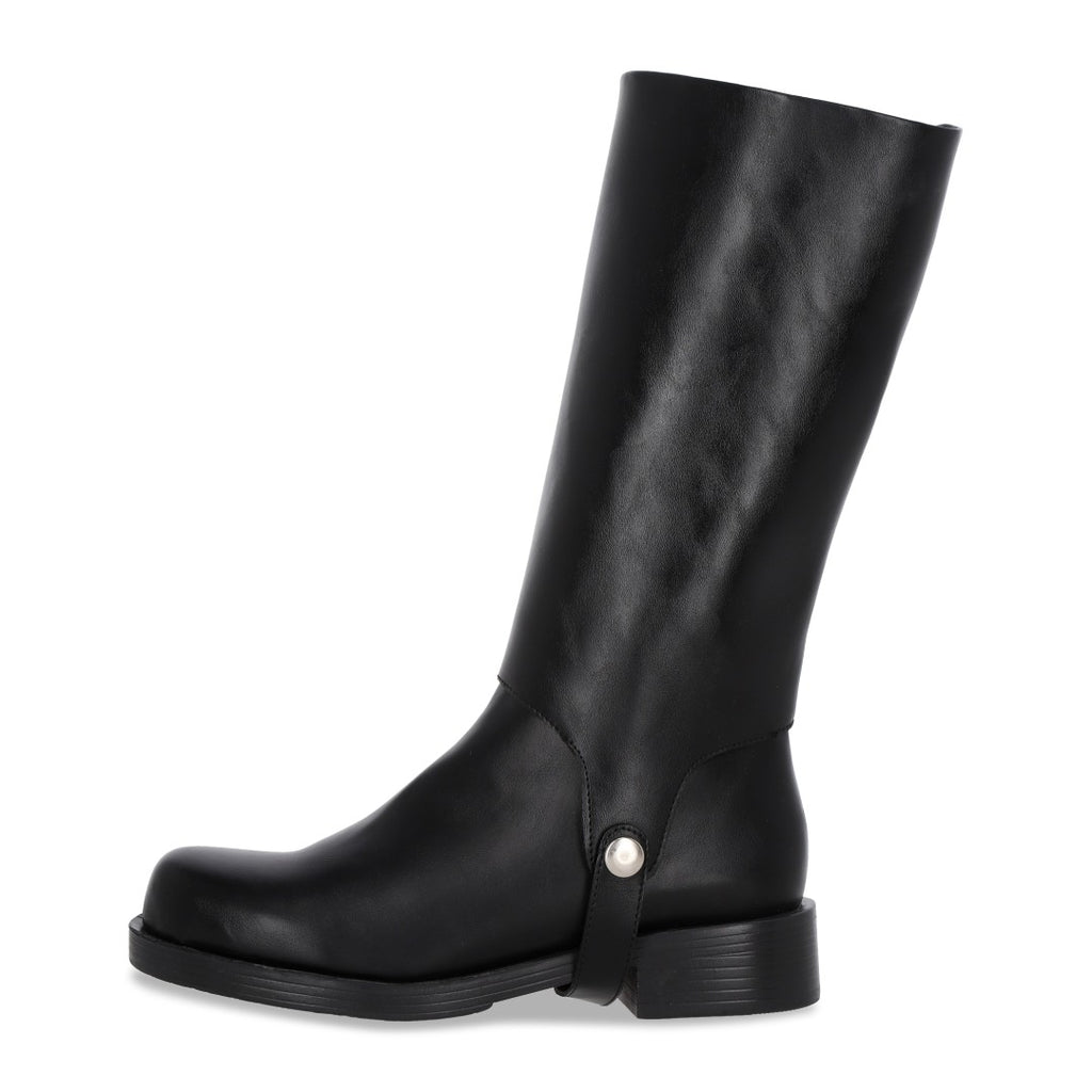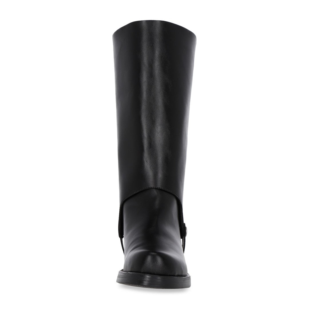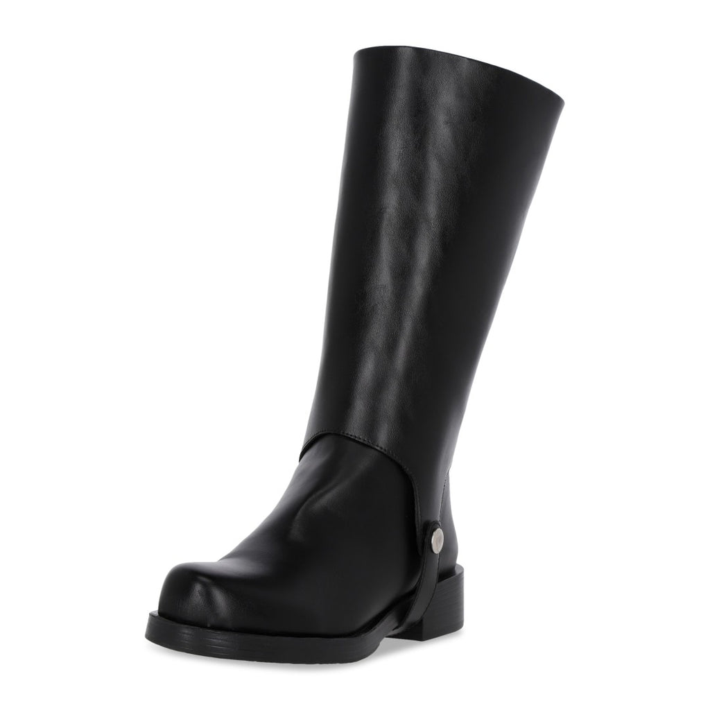 Bota larga de piso con tubo desmontable que se hace botín color negro. Material: Sintético.