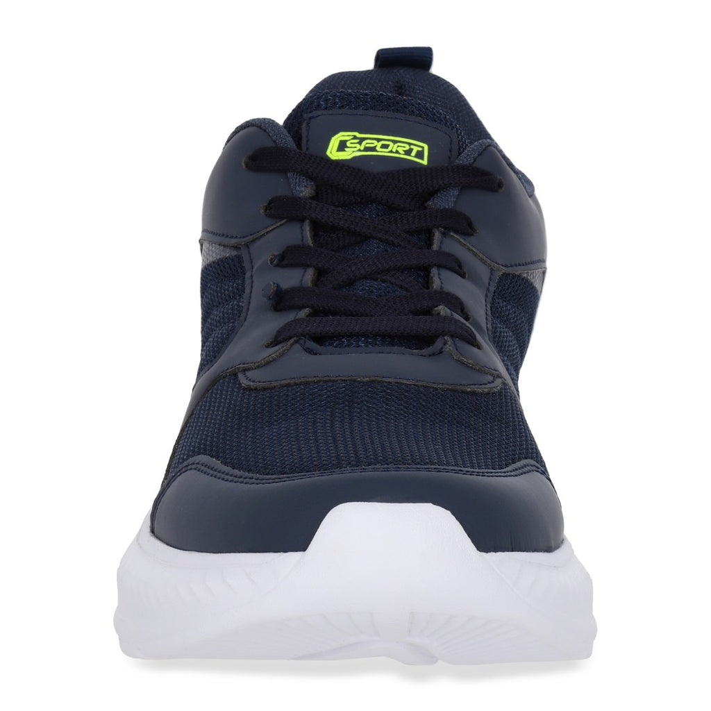 Dúo tenis de piso con contraste, suela ultraligera y cintas, plantilla textil color blanco y marino. Material: Textil.
