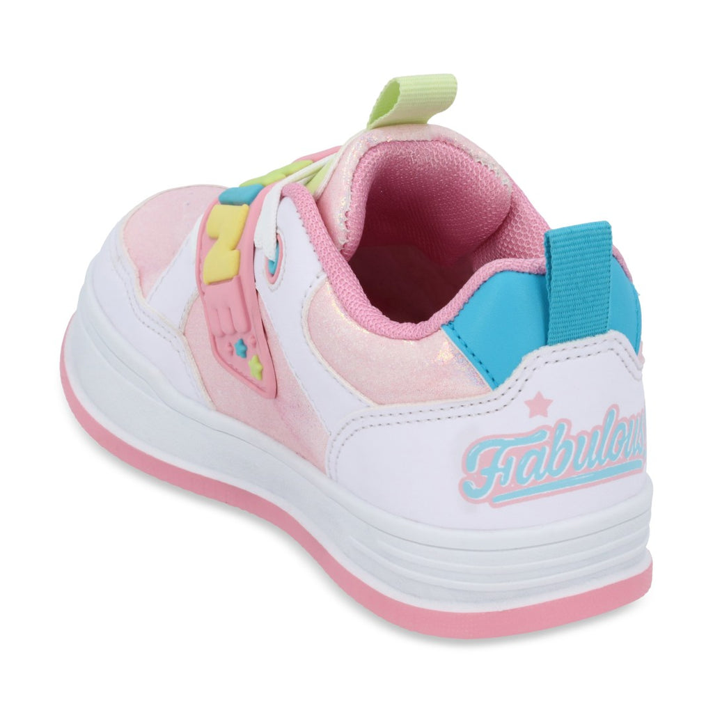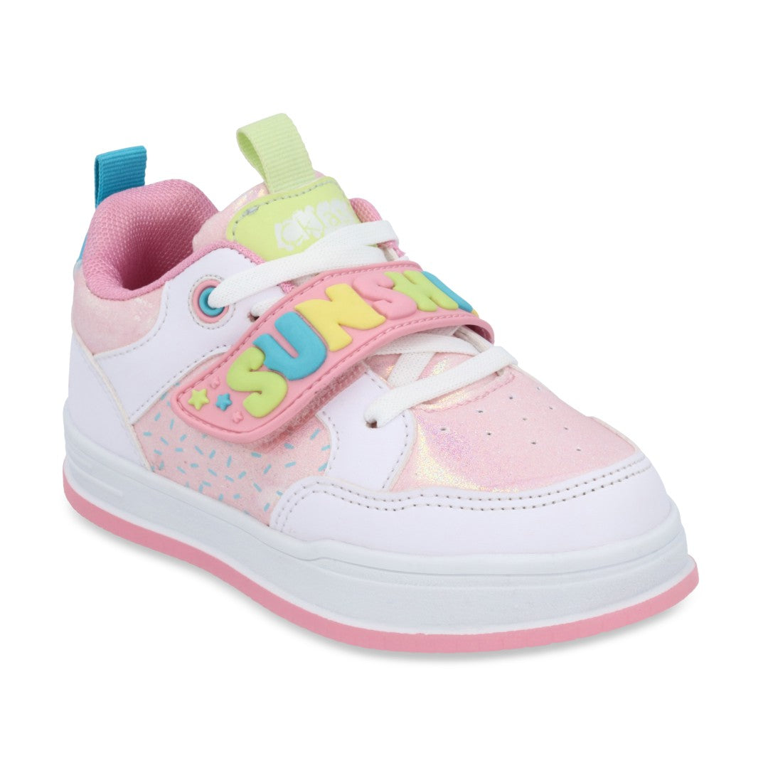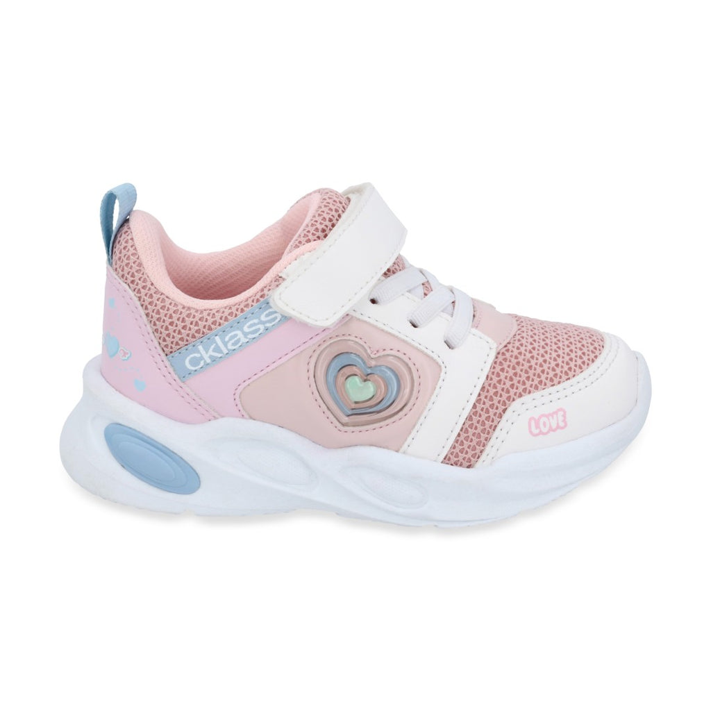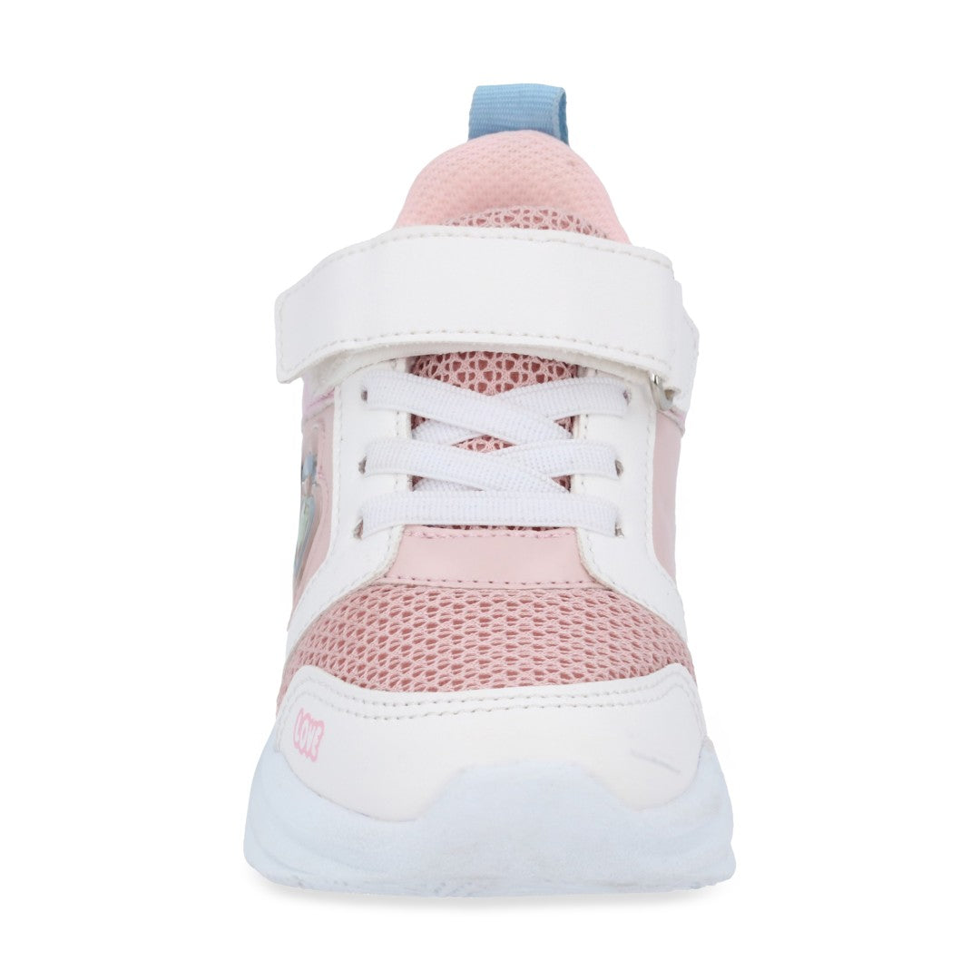 Dúo tenis deportivo color rosa, con contactel y cintas elásticas, detalle de corazón. Plantilla: Textil. Material: Sintético/Textil. Tenis casual color multicolor, contactel y agujetas, detalle en látigo y estampado. Material: Sintético.