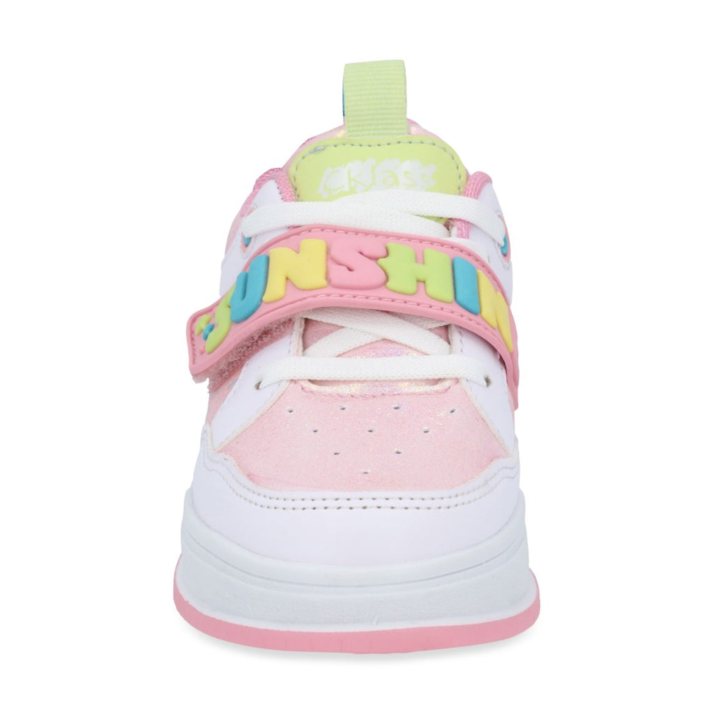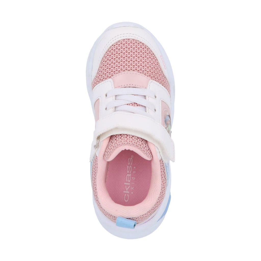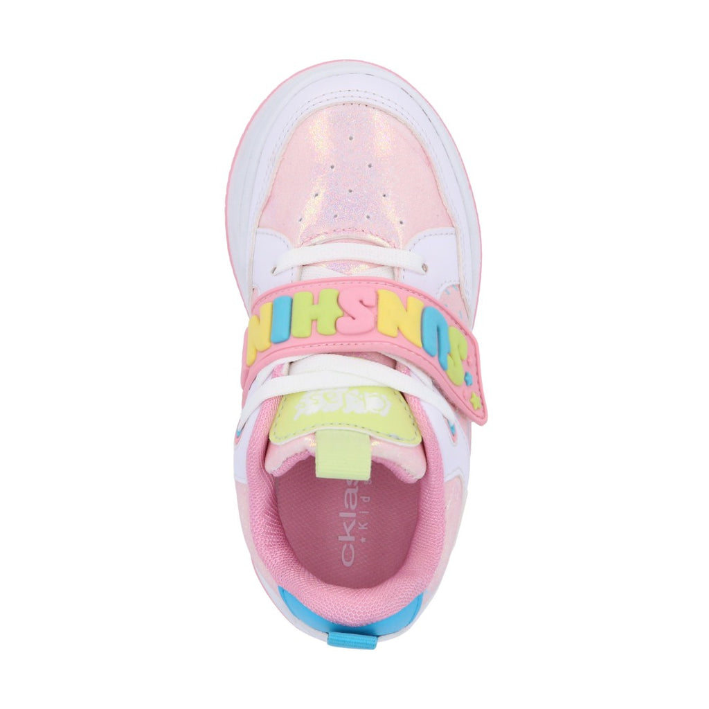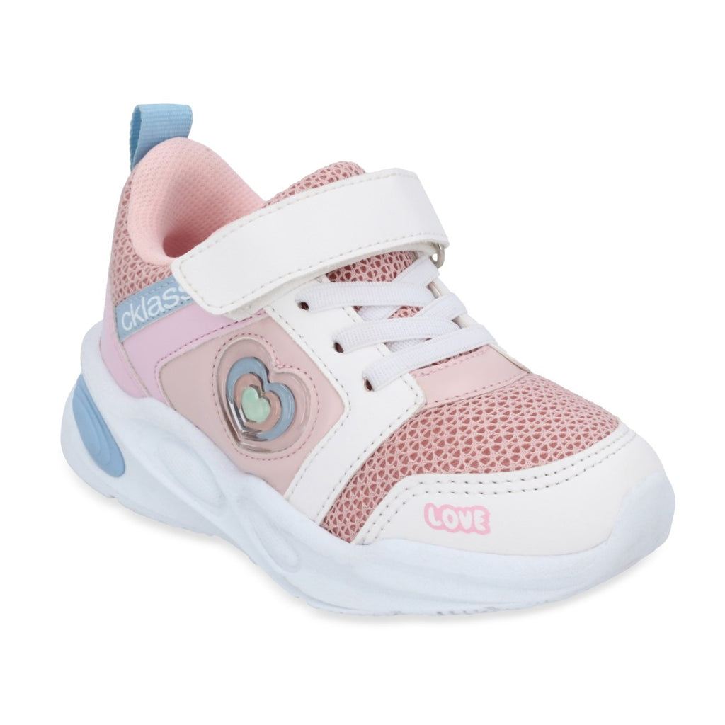 Dúo tenis deportivo color rosa, con contactel y cintas elásticas, detalle de corazón. Plantilla: Textil. Material: Sintético/Textil. Tenis casual color multicolor, contactel y agujetas, detalle en látigo y estampado. Material: Sintético.