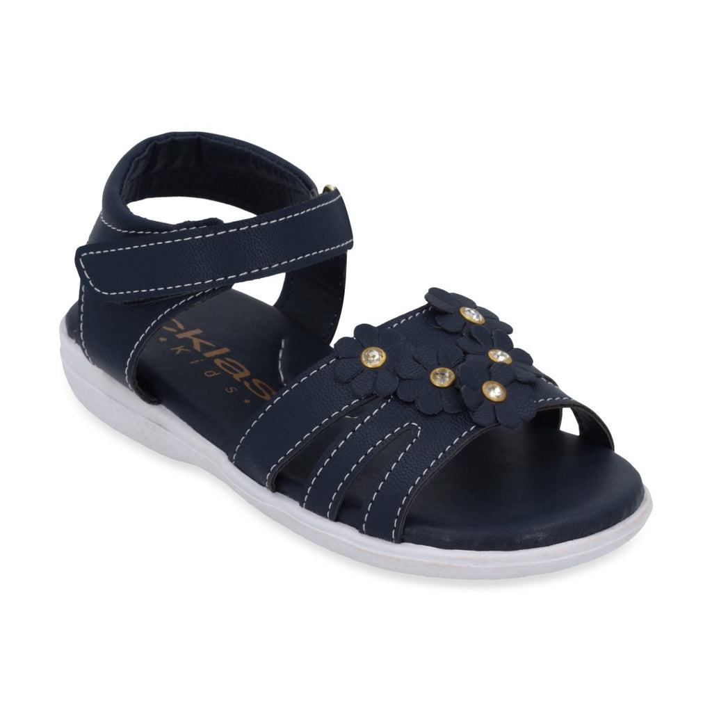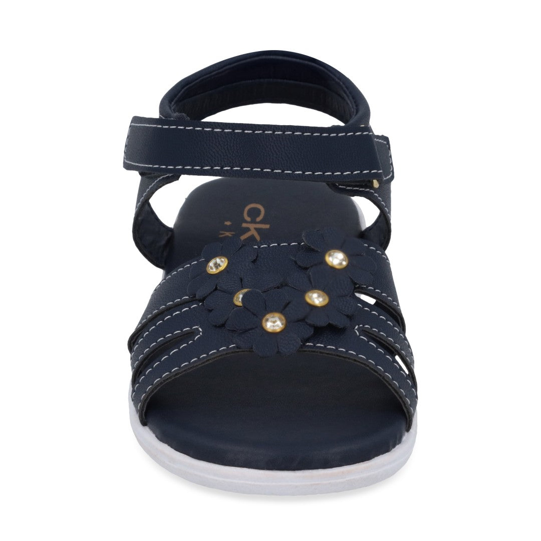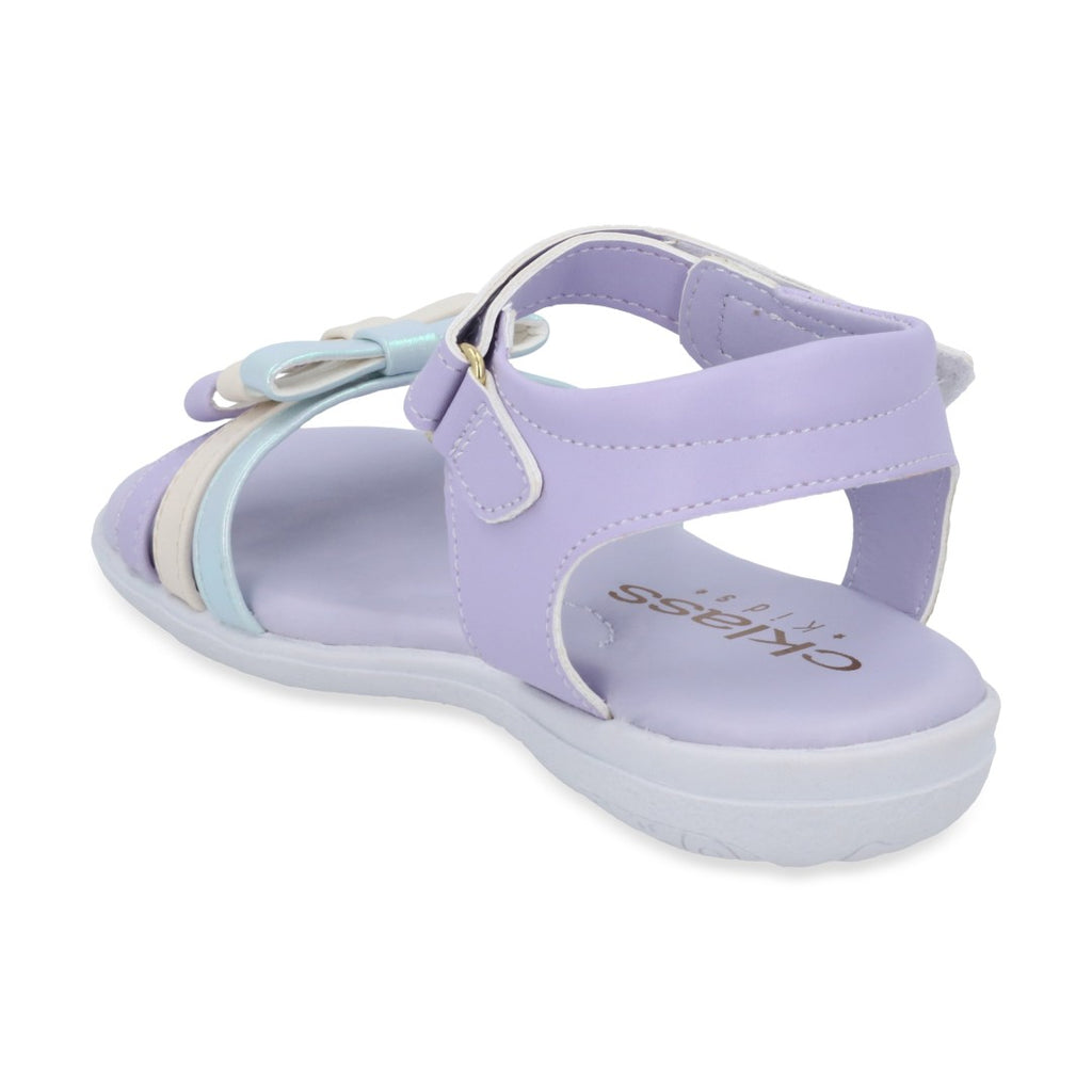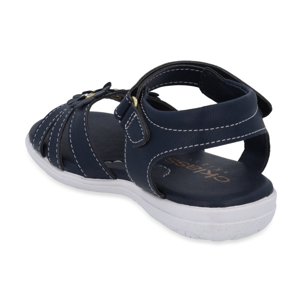 Dúo sandalia casual de piso color lila, detalle de moños, con contactel en pulsera. Sandalia casual de piso color marino, detalle de flores, con contactel en pulsera. Plantilla: Sintético. Material: Sintético.