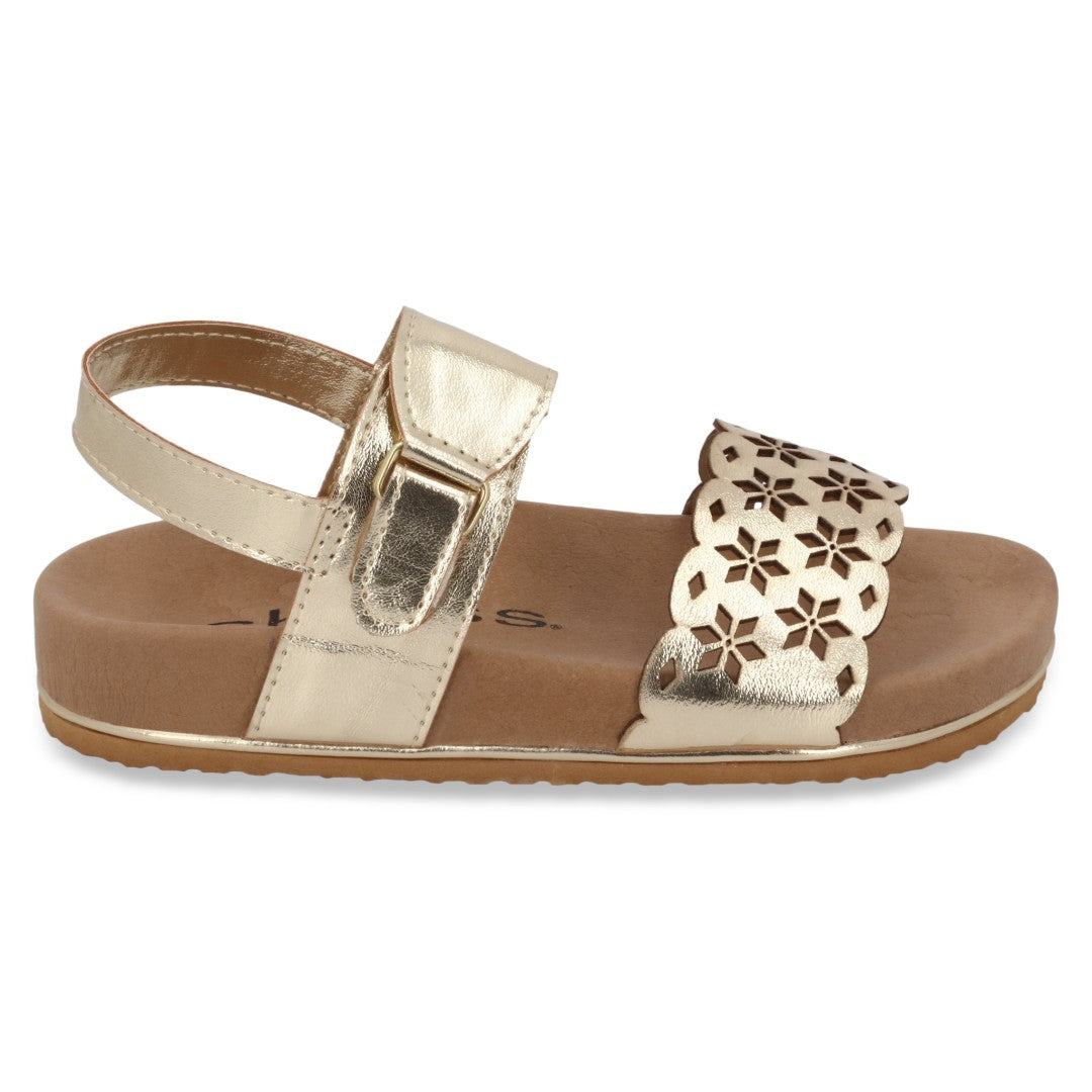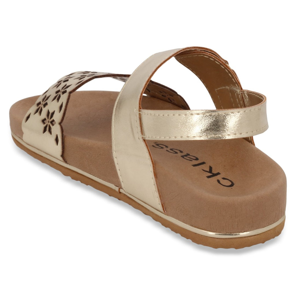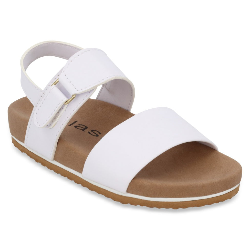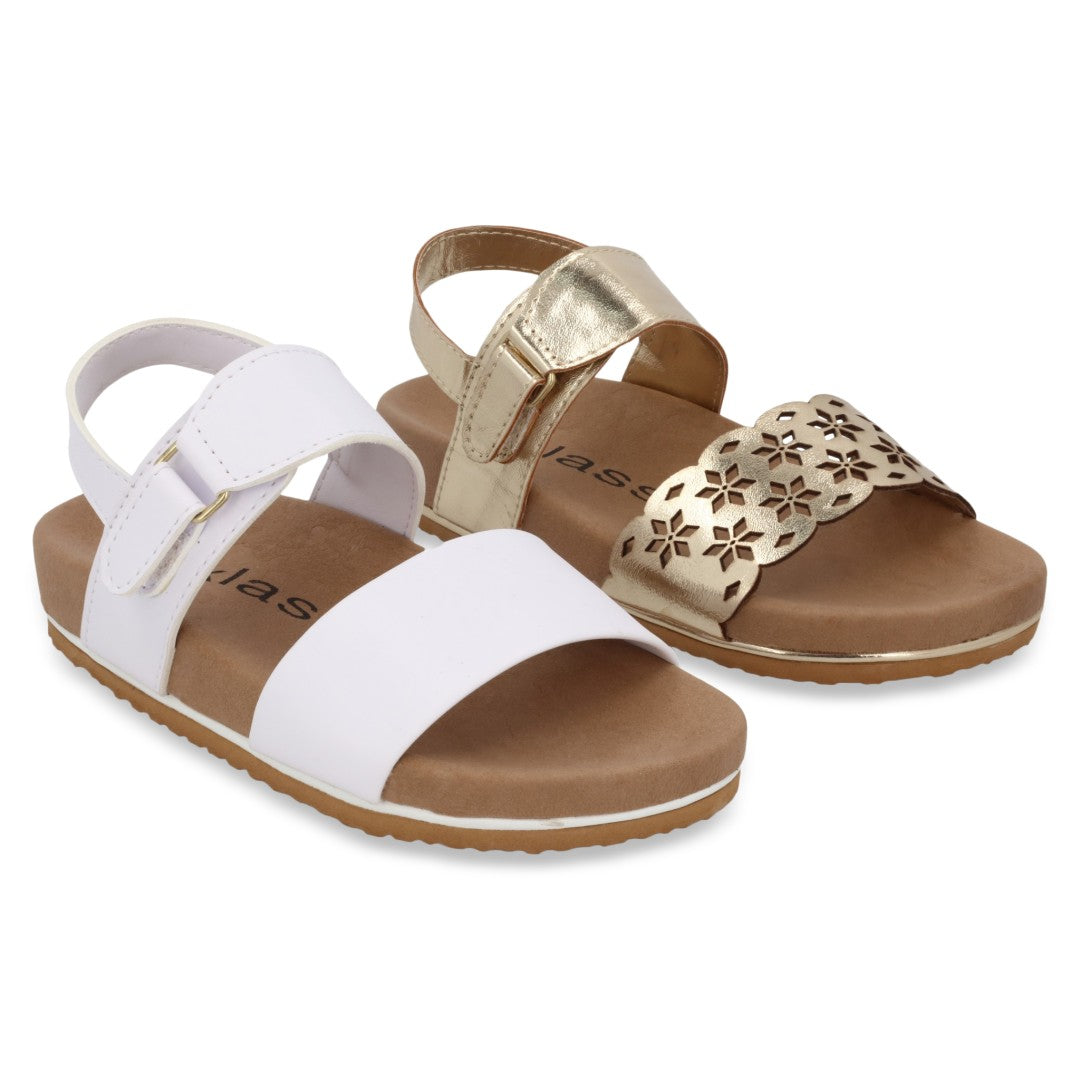 Dúo sandalia casual con contactel, plantilla sintética, color blanco. Material: Sintético. Sandalia casual con detalle de láser y contactel, plantilla sintética, color oro. Material: Sintético.