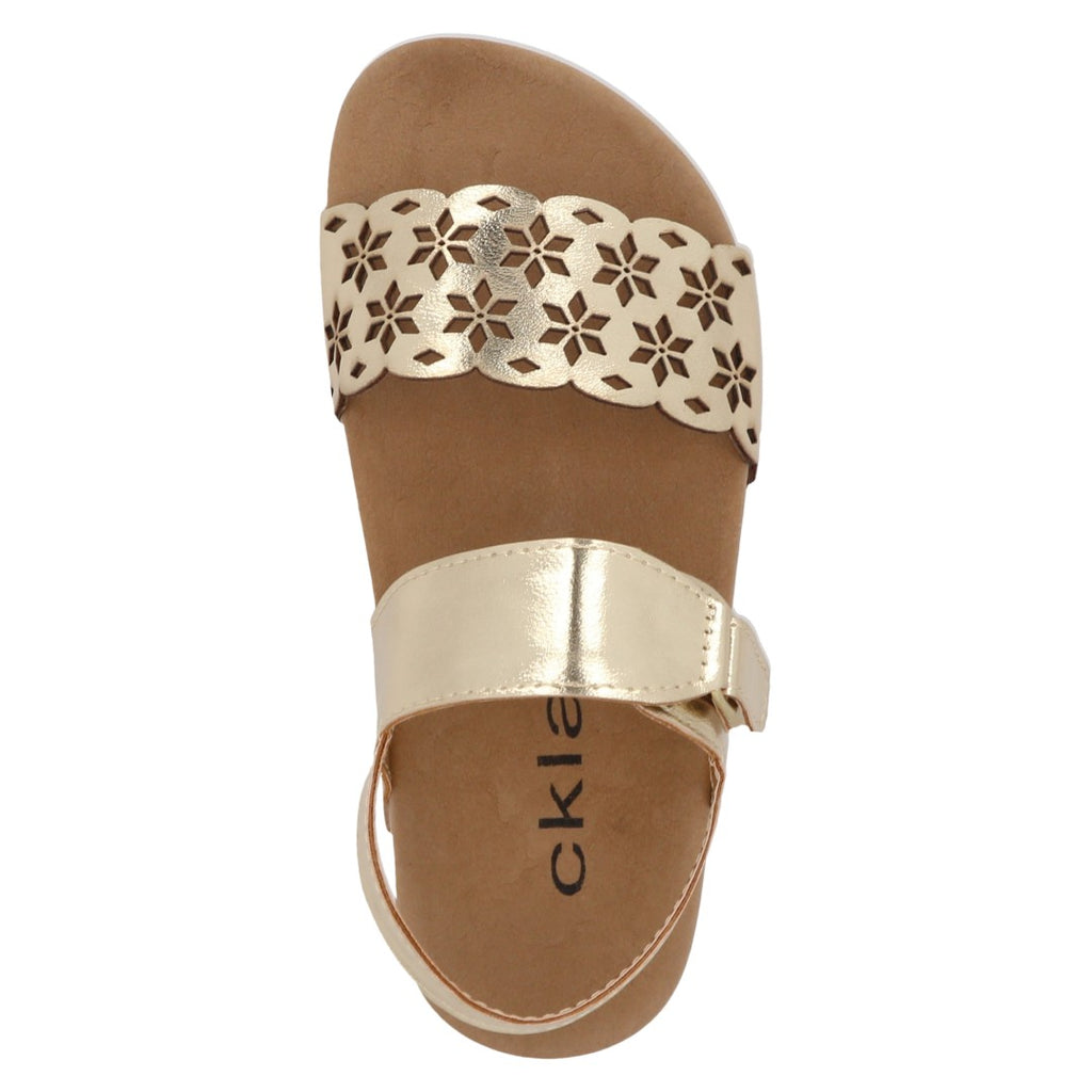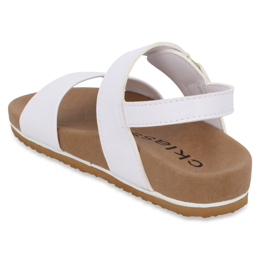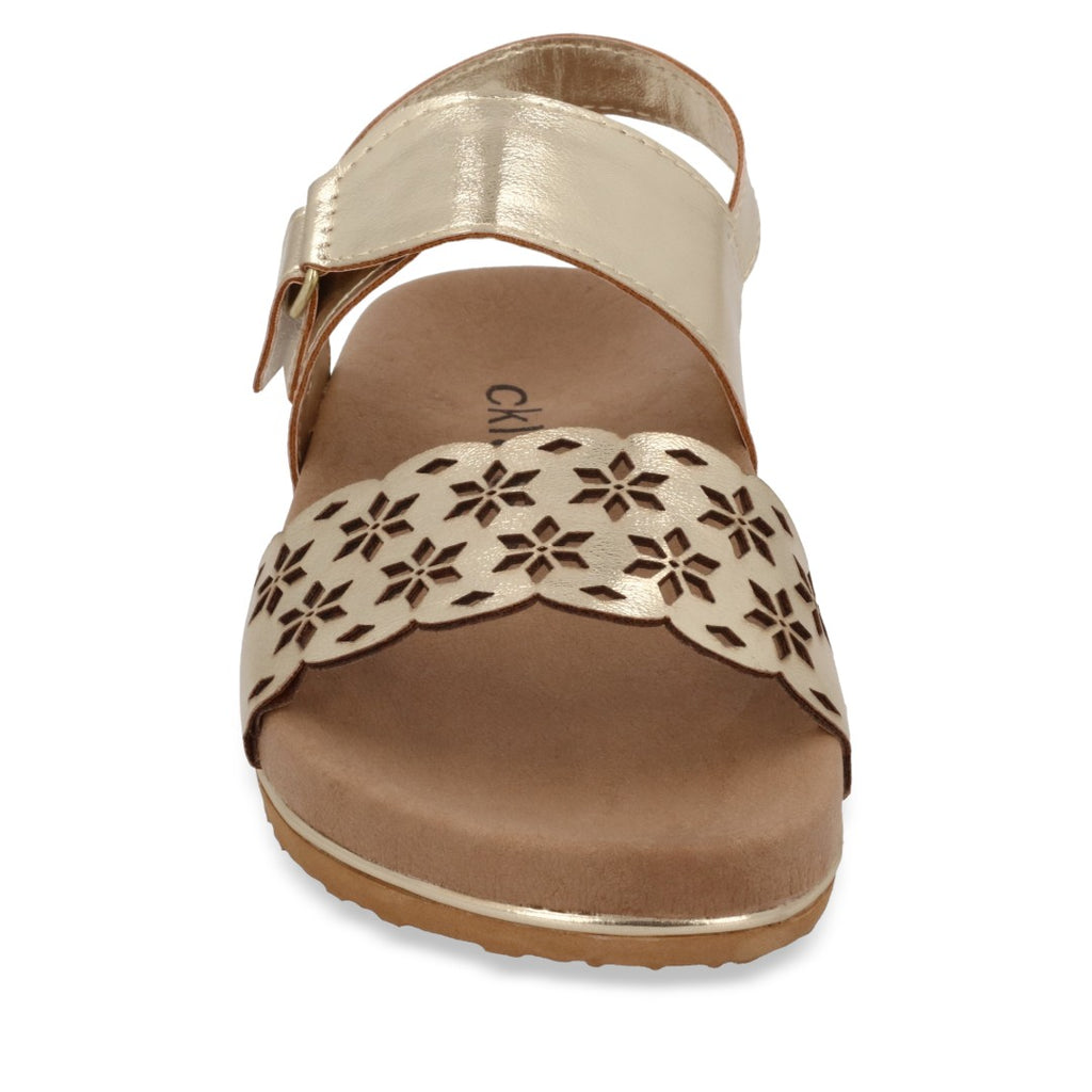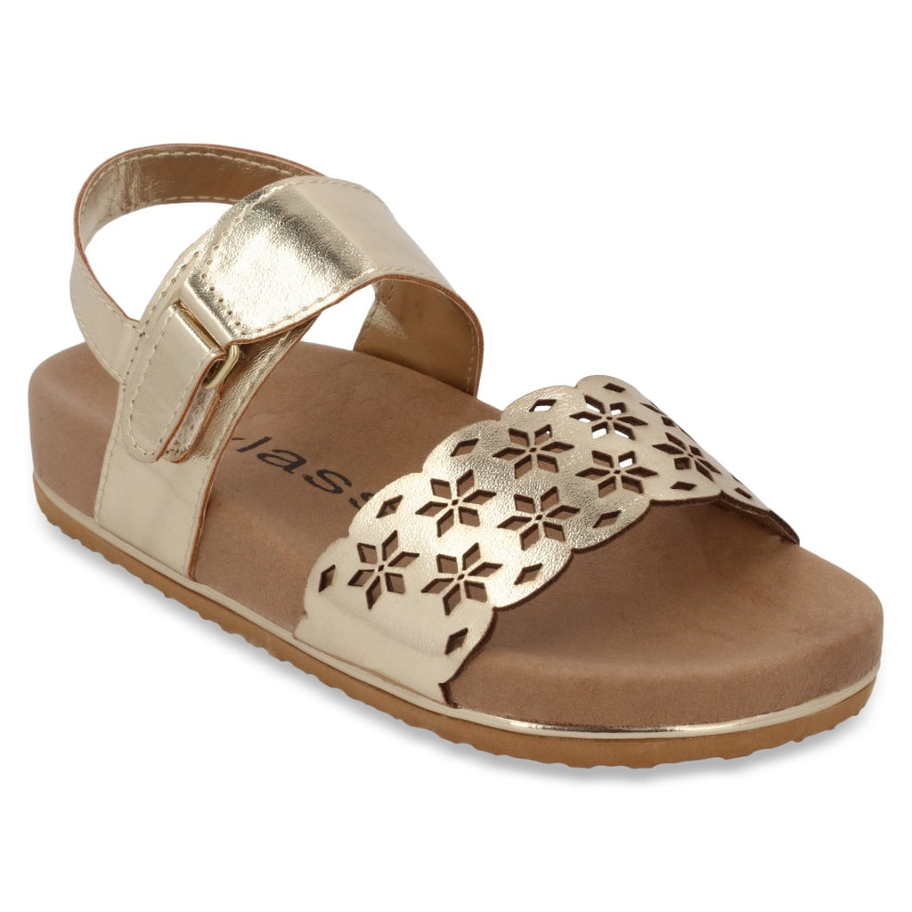 Dúo sandalia casual con contactel, plantilla sintética, color blanco. Material: Sintético. Sandalia casual con detalle de láser y contactel, plantilla sintética, color oro. Material: Sintético.