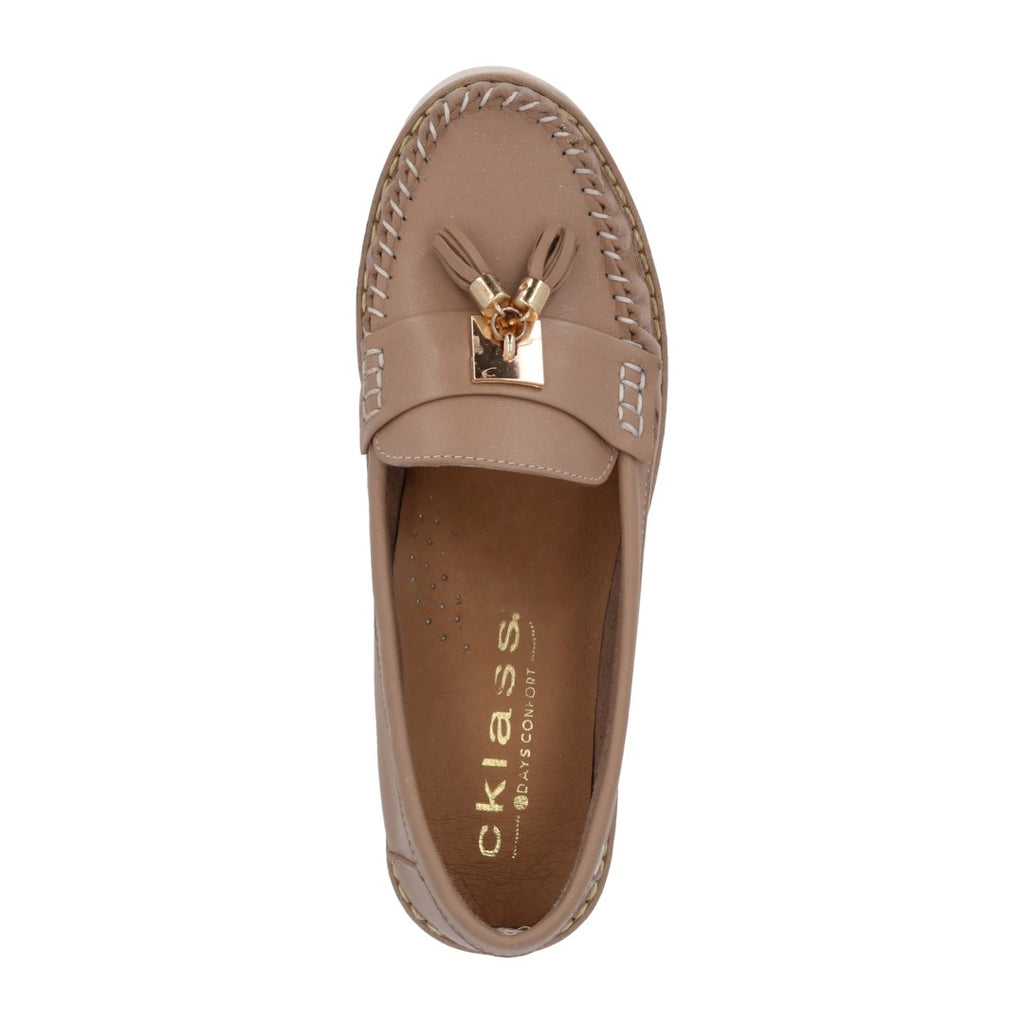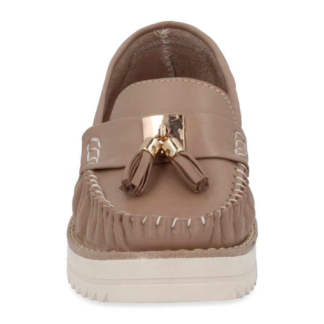 MOCASÍN CASUAL BEIGE CON HERRAJE Y BORLAS 03330