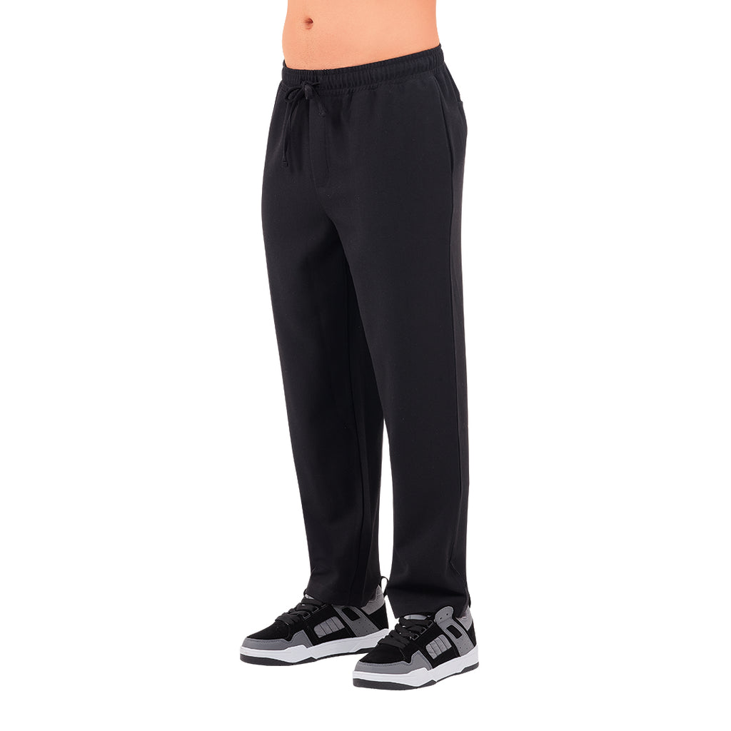 Pantalón negro con cintura elástica y jareta ajustable, con bolsillos en costados.