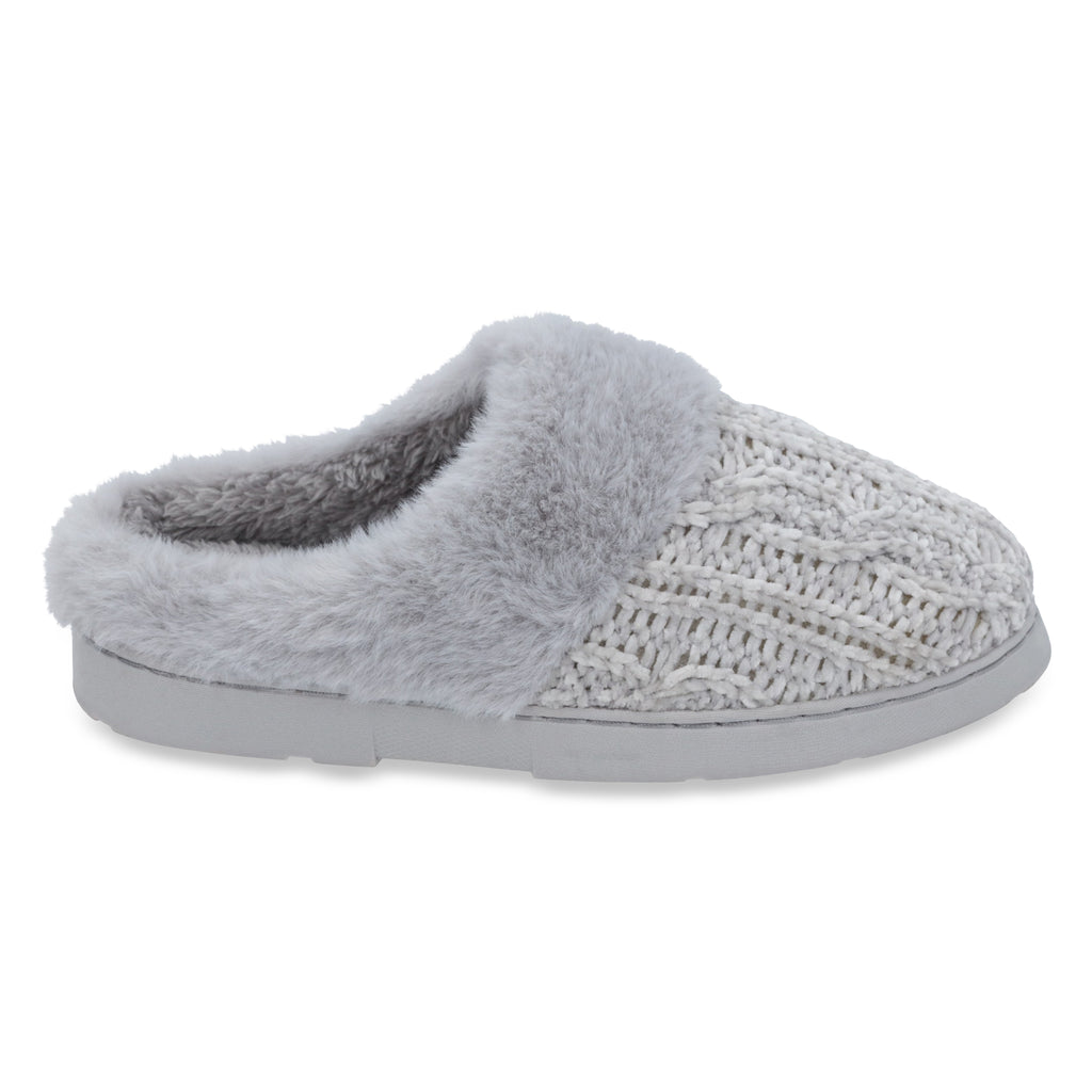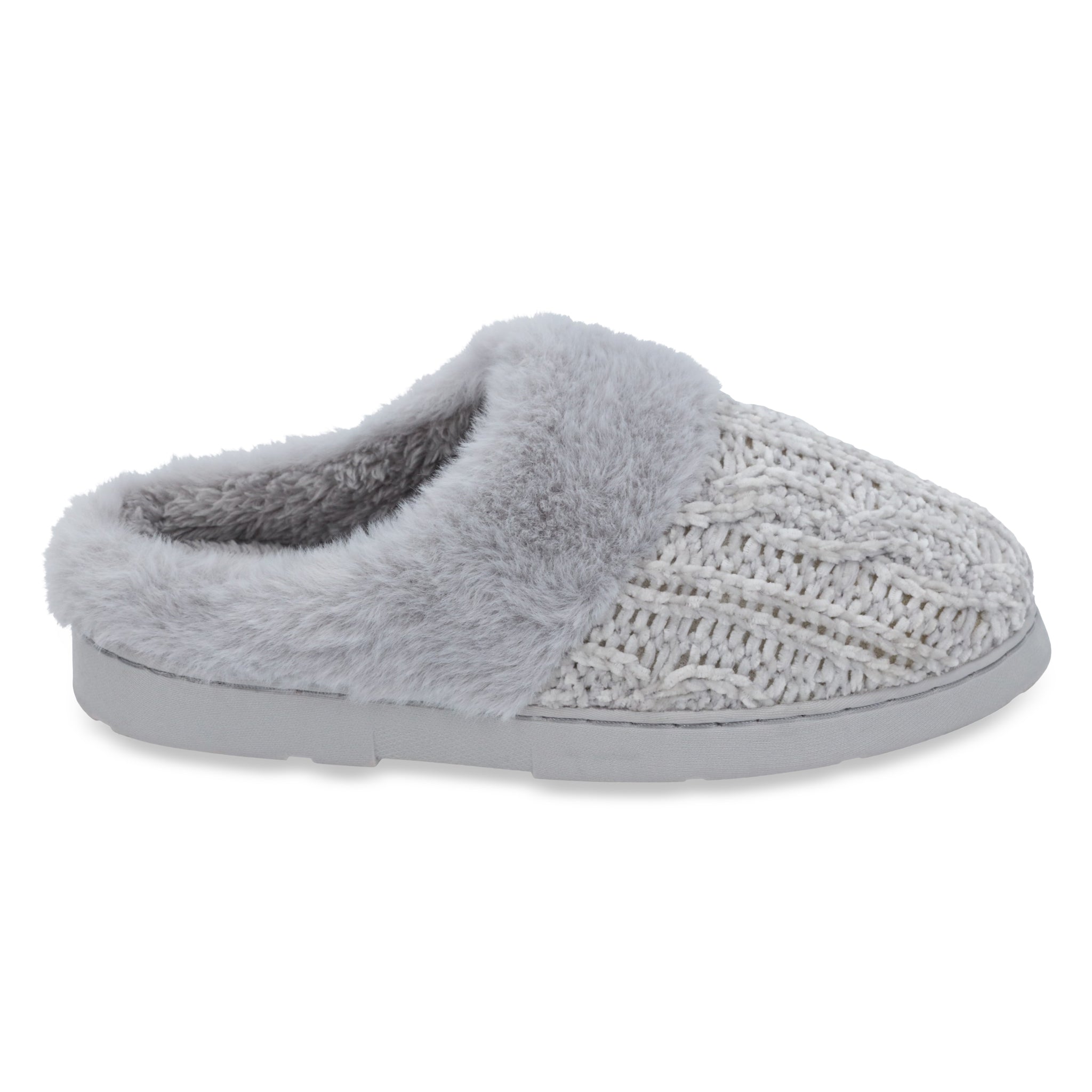 Pantufla de piso color gris, corte textil tejido, plantilla textil. Material: 100% Textil.