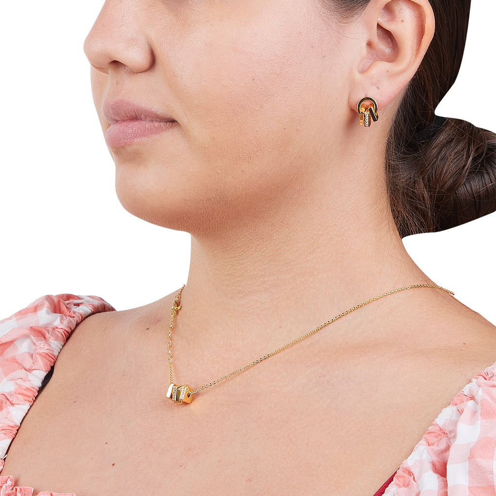Set de collar y aretes tamaño estándar, baño de oro 8K.