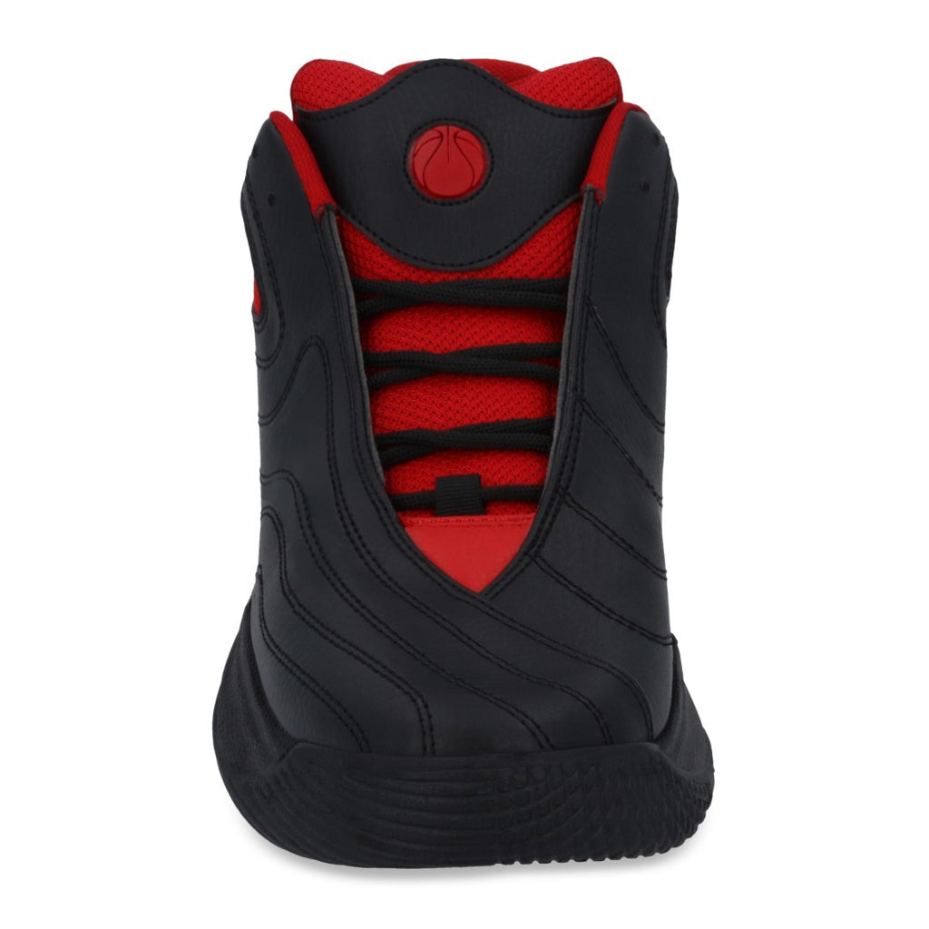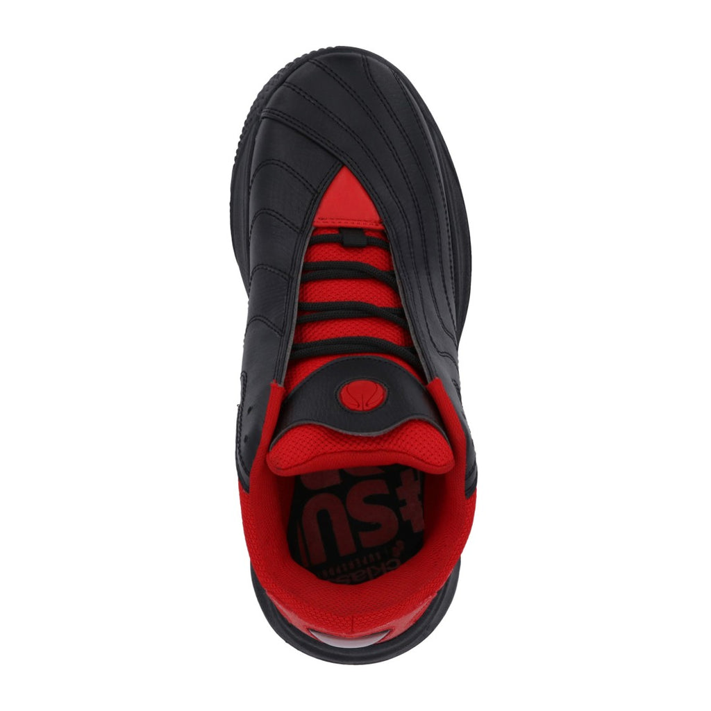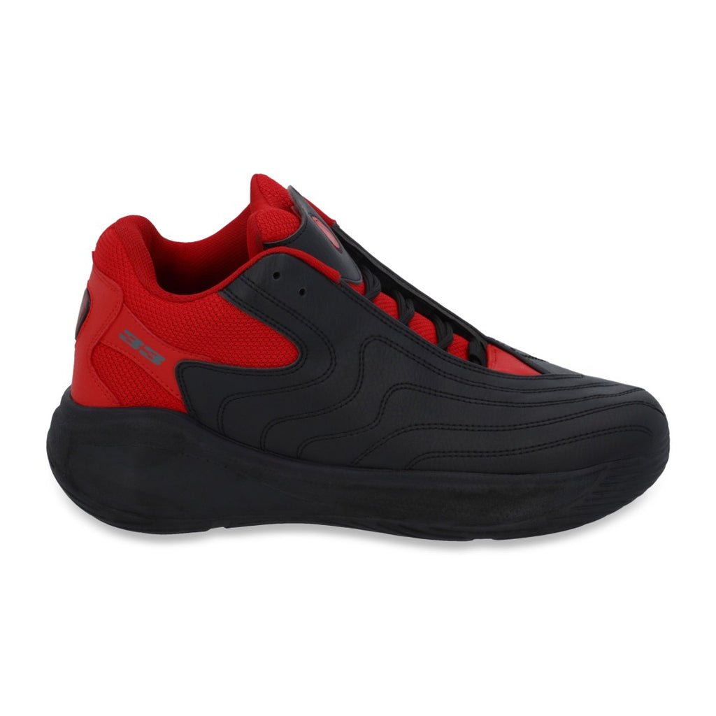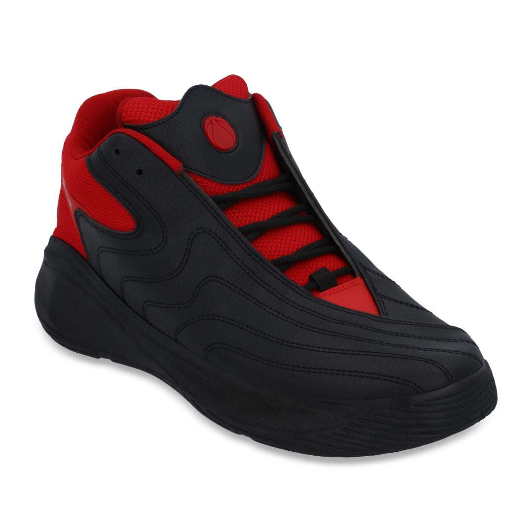 Tenis deportivo de basketball sintético multicolor con suela negra.