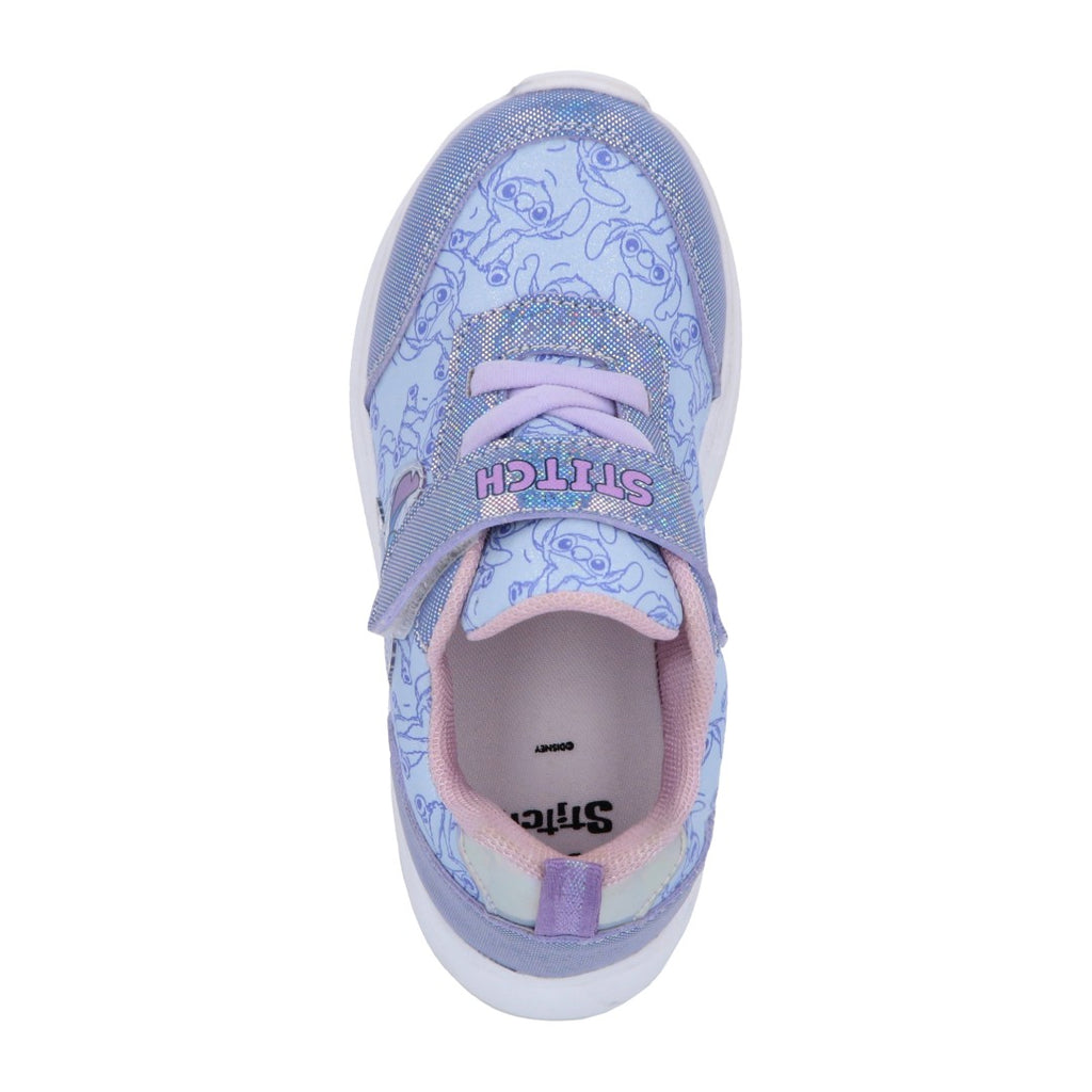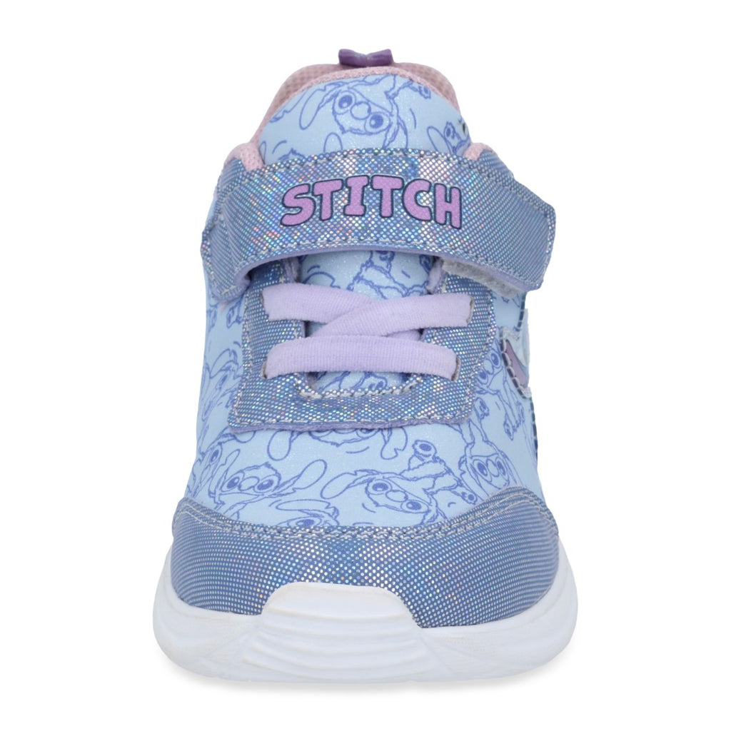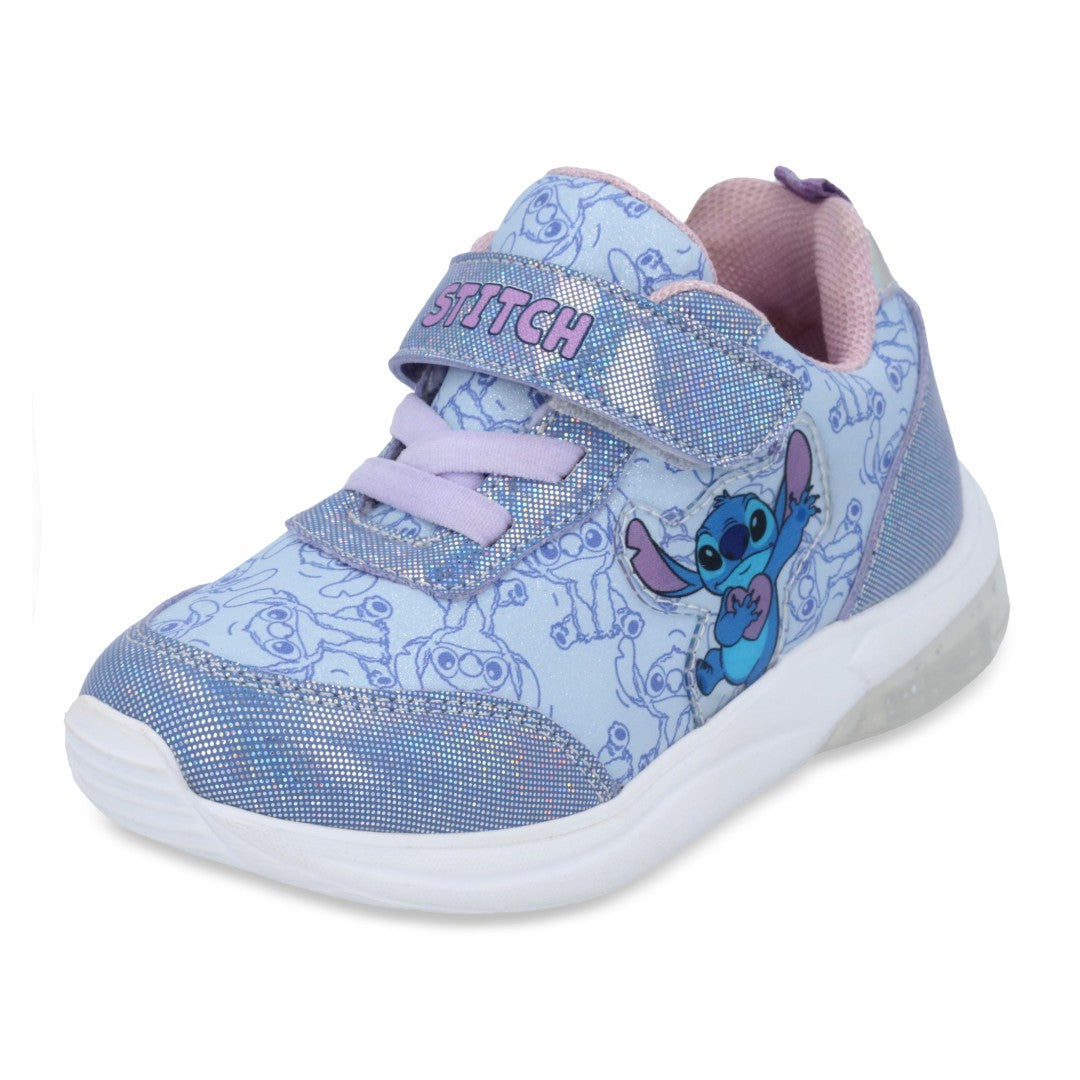 Tenis deportivo color azul, con estampado de STITCH, detalles brillosos, cintas elásticas y contactel, calzado con luces. Plantilla: Textil. Material: Sintético.