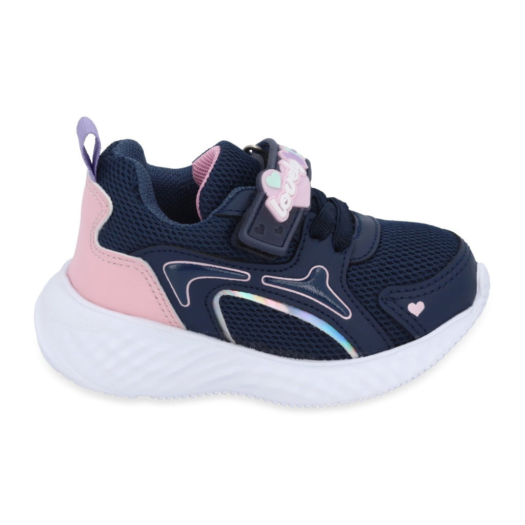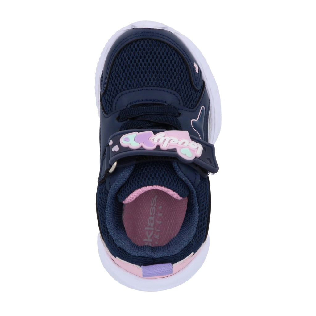 Tenis deportivo color marino, con contactel y cintas elásticas, detalle lateral y en látigo. Plantilla: Textil. Material: Sintético/Textil.
