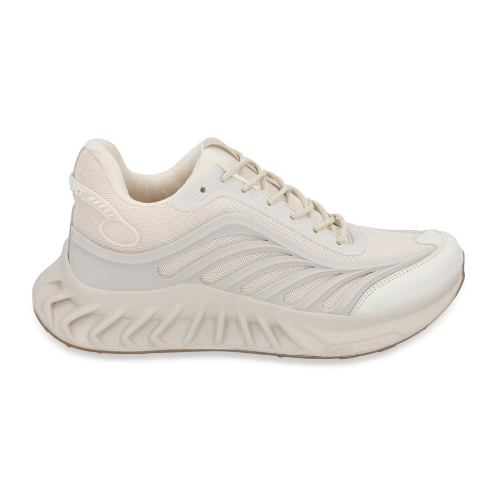 Tenis deportivo textil color beige con suela beige y plantilla memory foam.