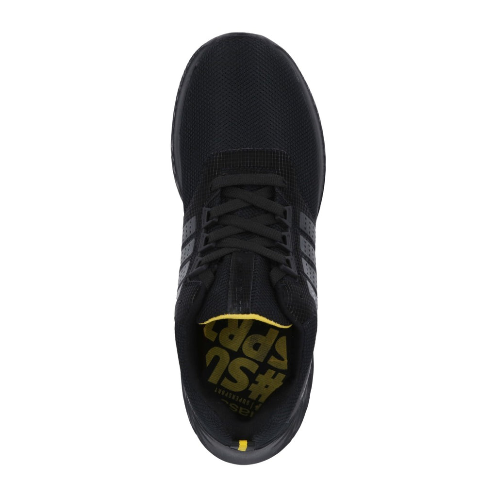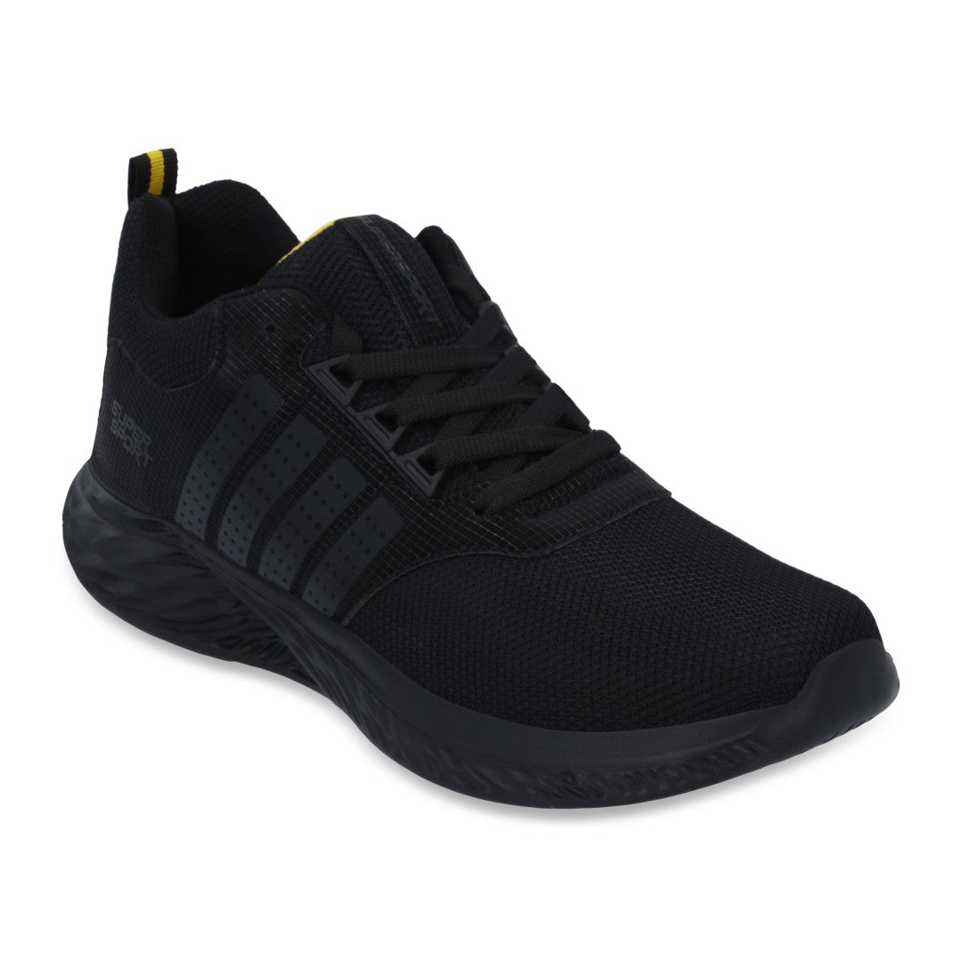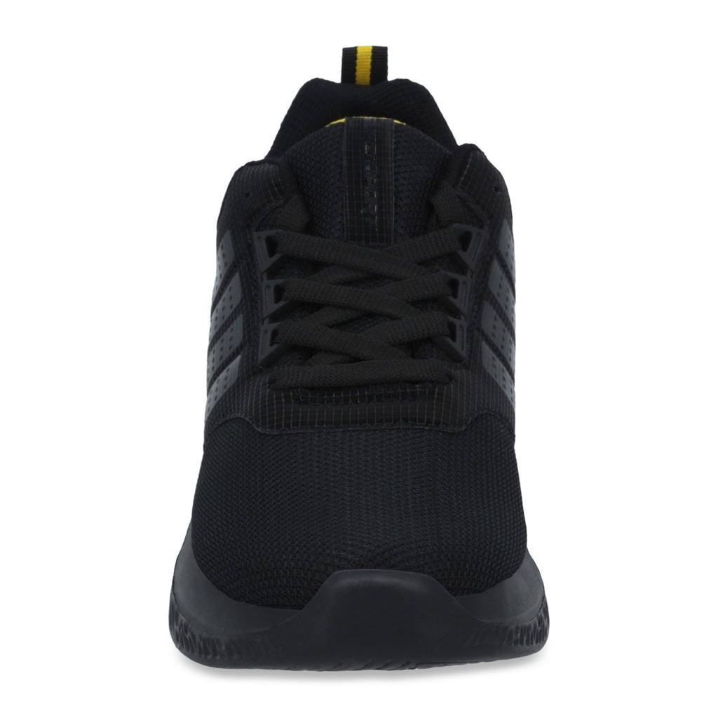 Tenis deportivo textil color negro con suela negra y plantilla memory foam.
