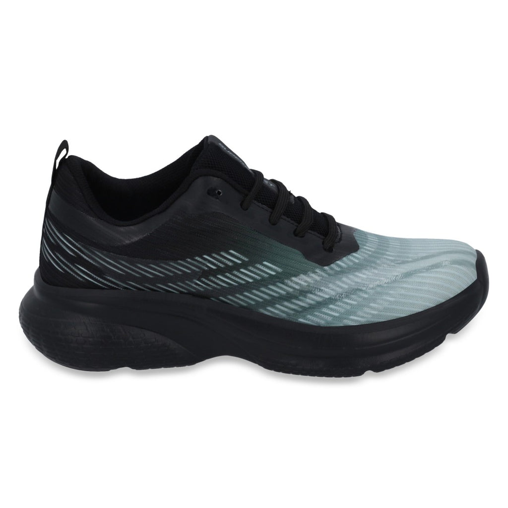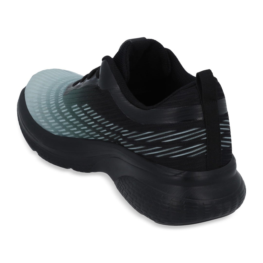 Tenis deportivo textil color negro, suela negra y plantilla memory foam.