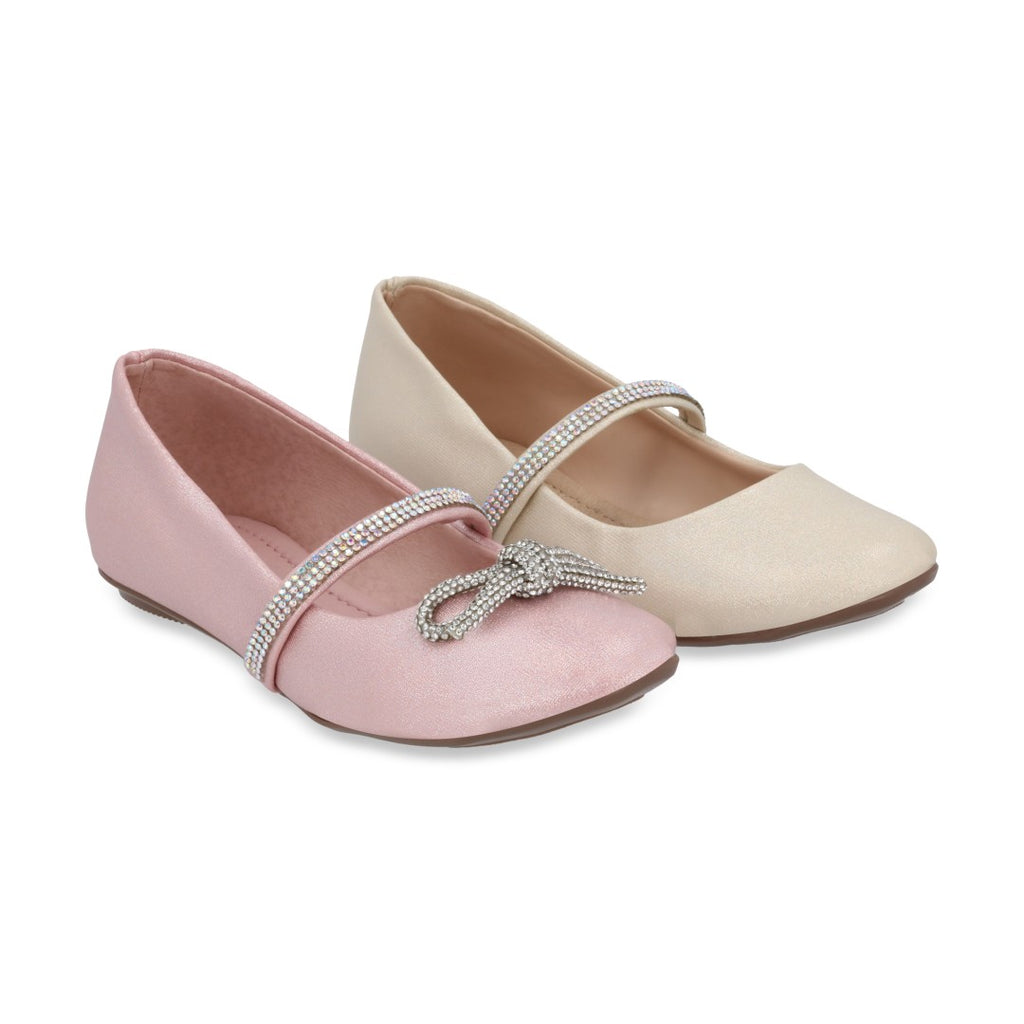 DÚO 044 BALERINA CASUAL ROSA Y HUESO CON ADORNO