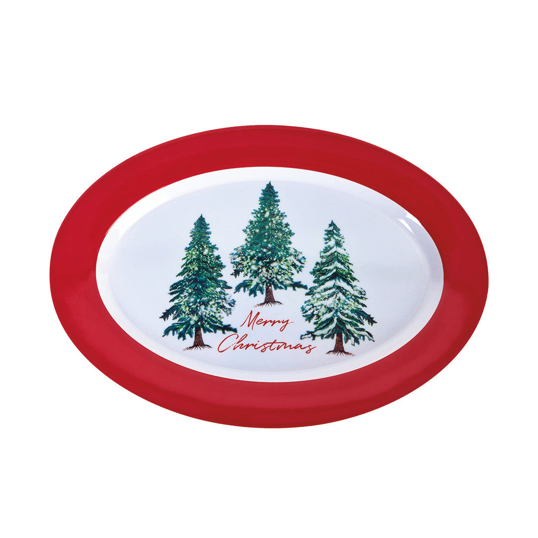 Plato para botanas con diseño navideño multicolor de 35 x 25.5 cm. Ideal para reuniones familiares o fiestas, combinando practicidad y decoración festiva.