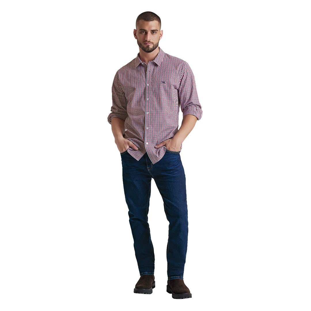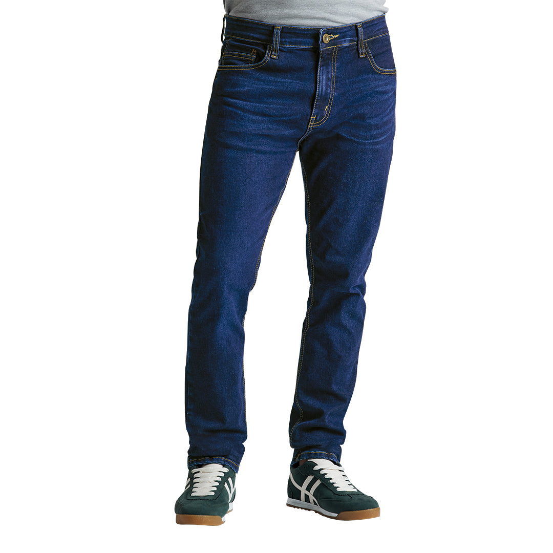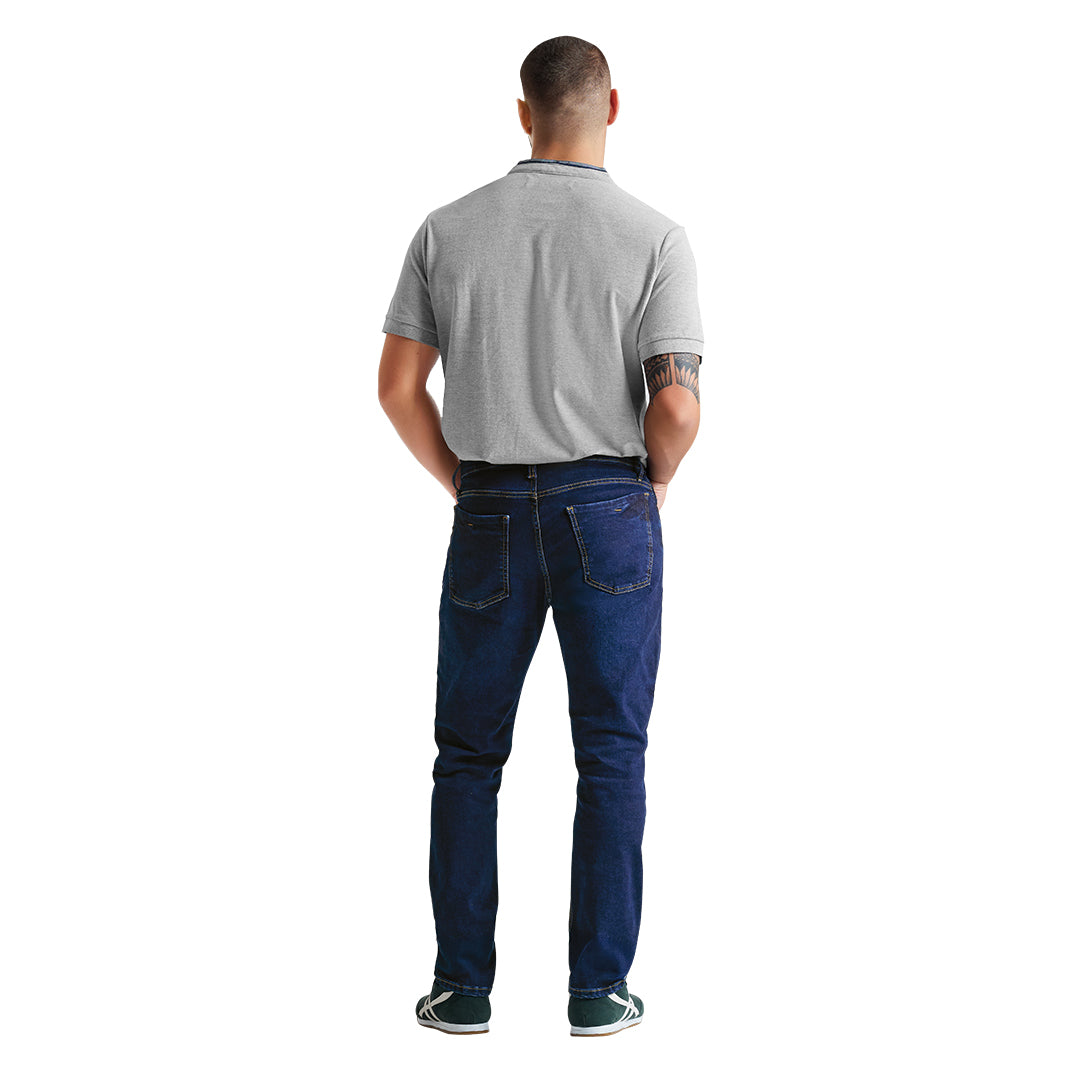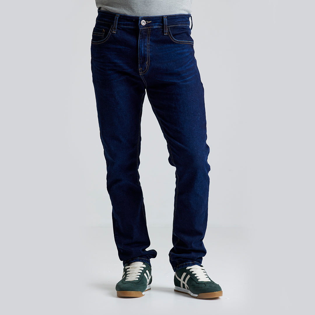 Jeans de mezclilla con corte skinny de 5 bolsas, confeccionado en mezclilla con lavado oscuro y sutil desgaste. Su diseño ajustado realza la silueta mientras ofrece comodidad y libertad de movimiento gracias a su mezcla de algodón, poliéster y elastano. Ideal para looks casuales o de noche.