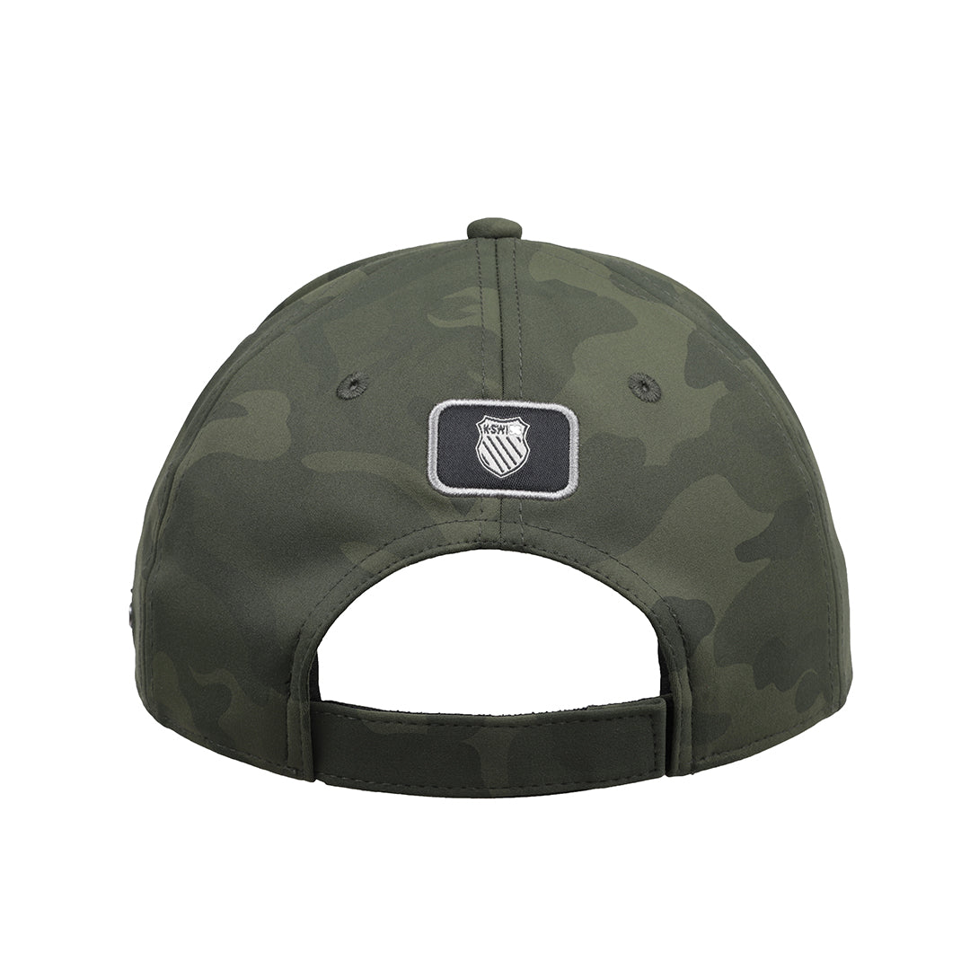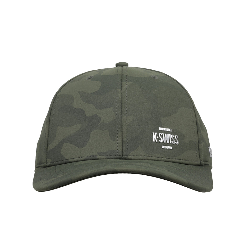 Gorra K-Swiss color verde militar, ajustable y con logotipo frontal de la marca. Ideal como accesorio casual hombre, combina estilo urbano con comodidad.